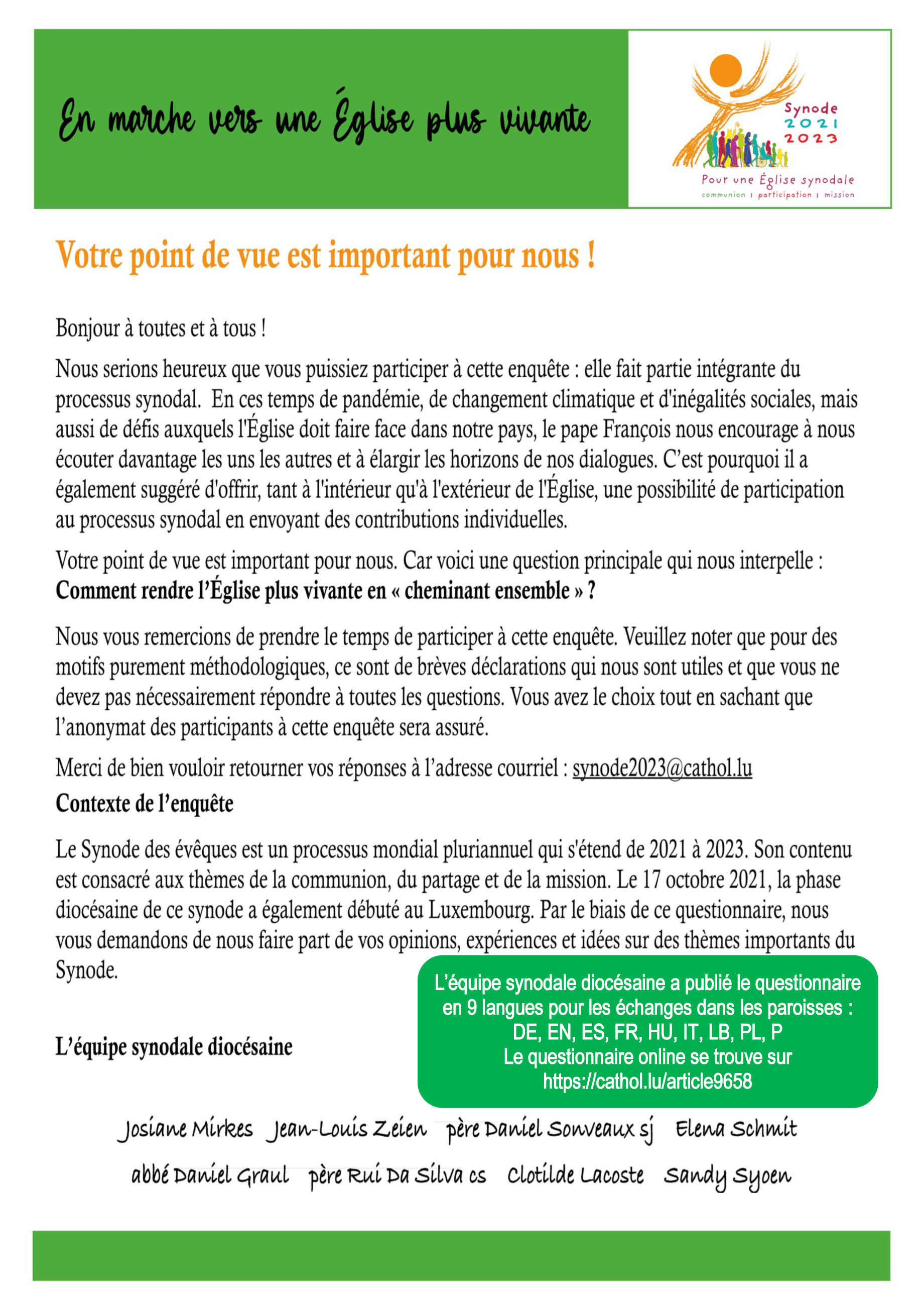 Synode en Eglise : Participez! 04/2022