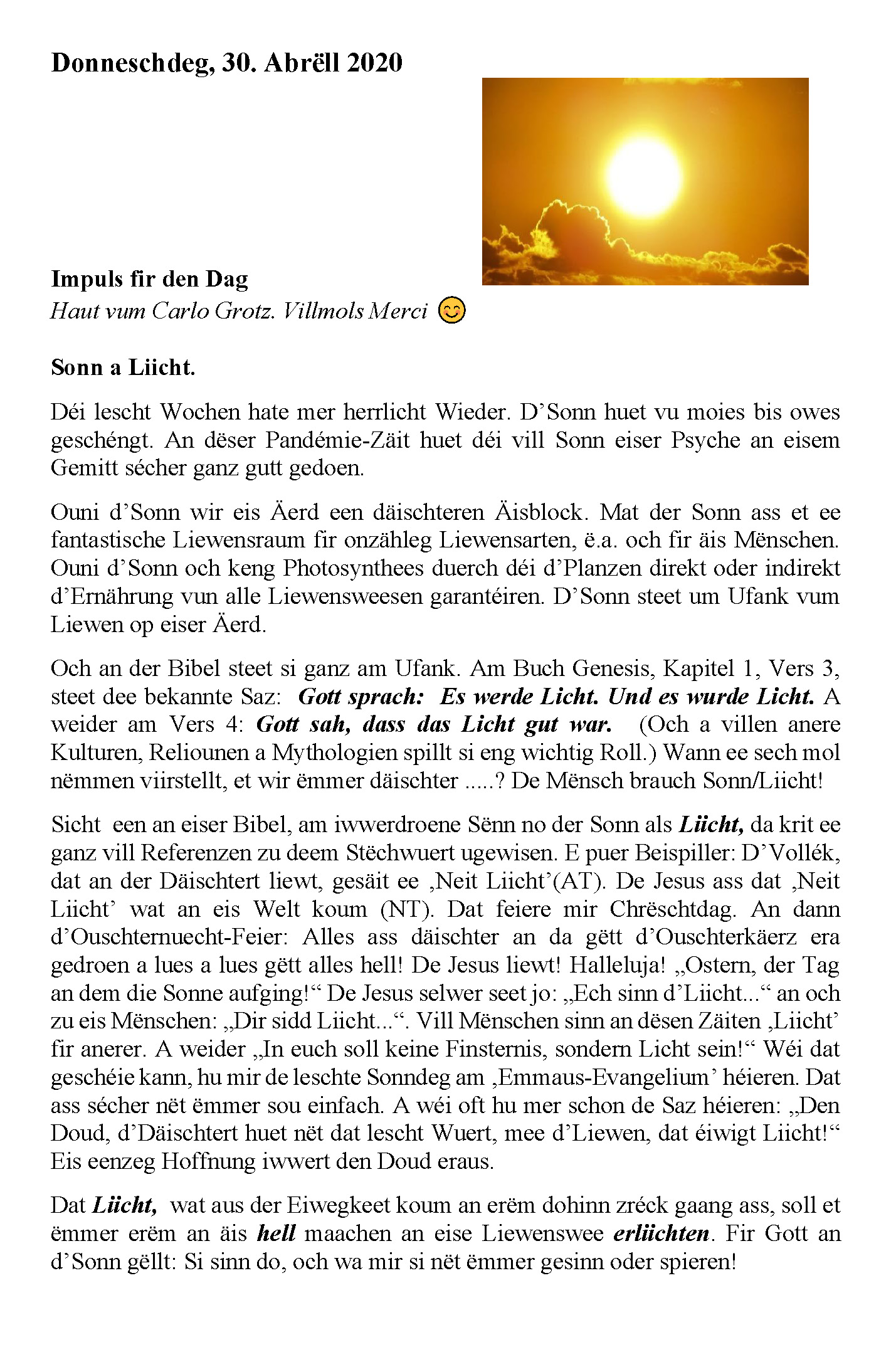 30.04.2020 - Gedanken fir den Dag