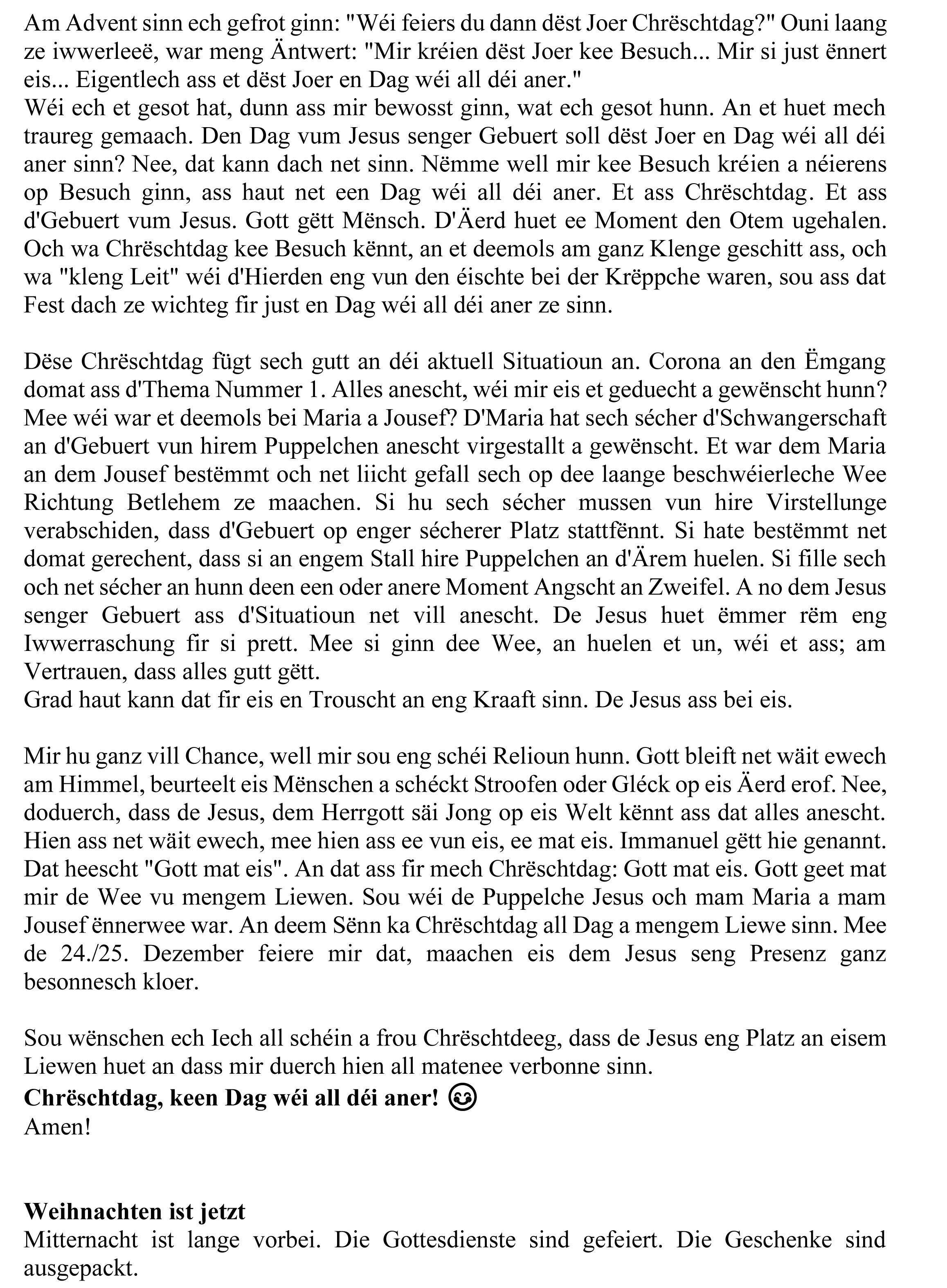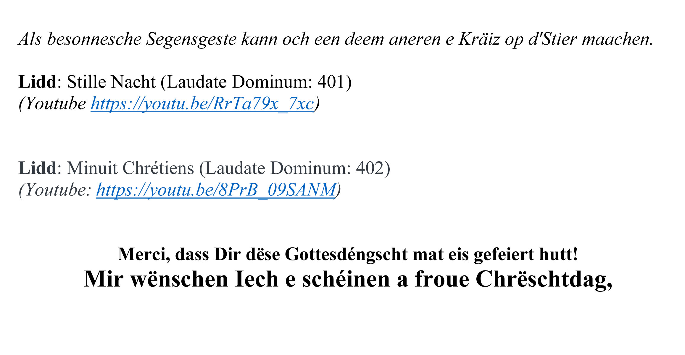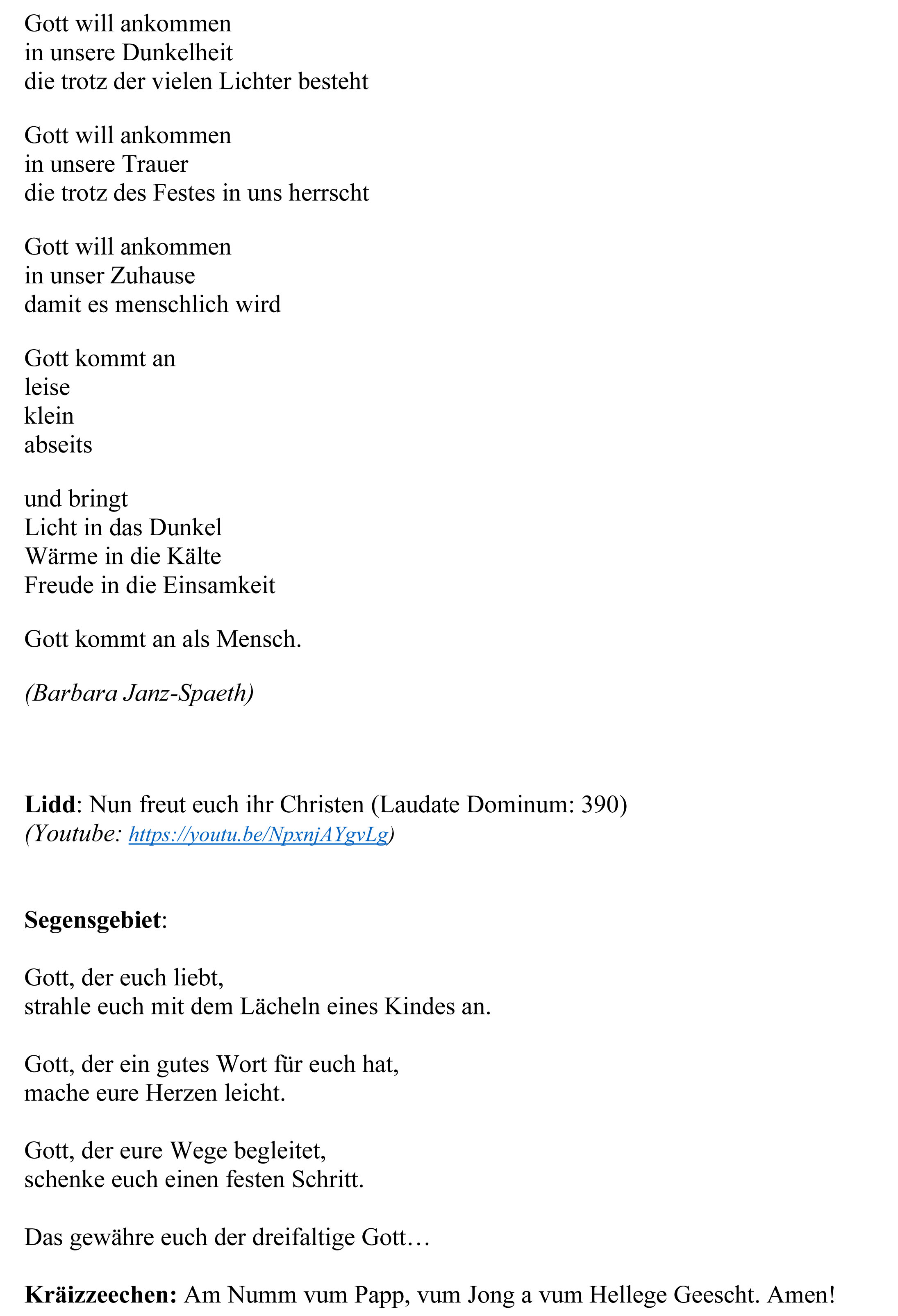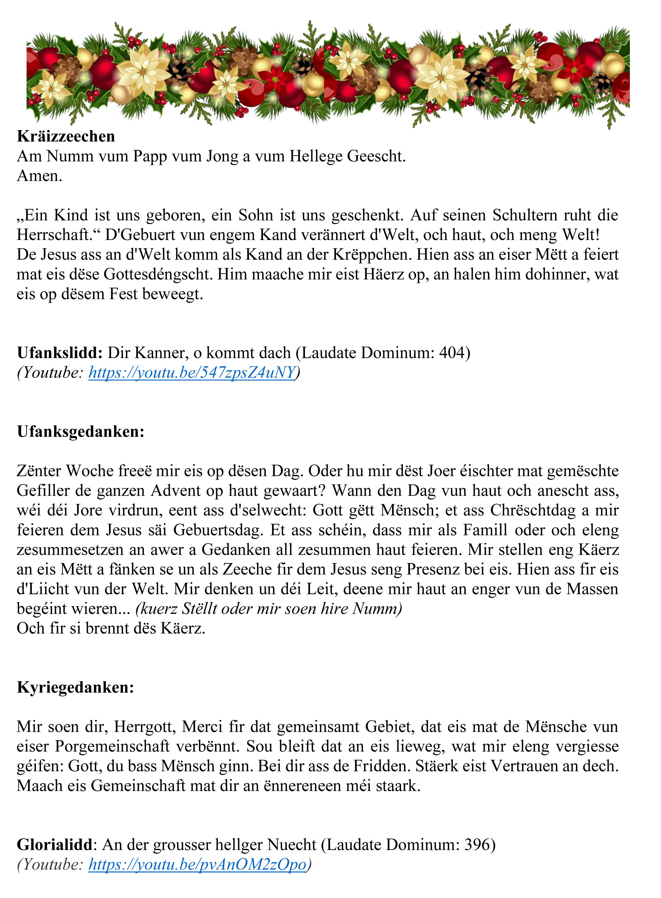 Gottesdéngscht doheem- Chrëschtdag 2020