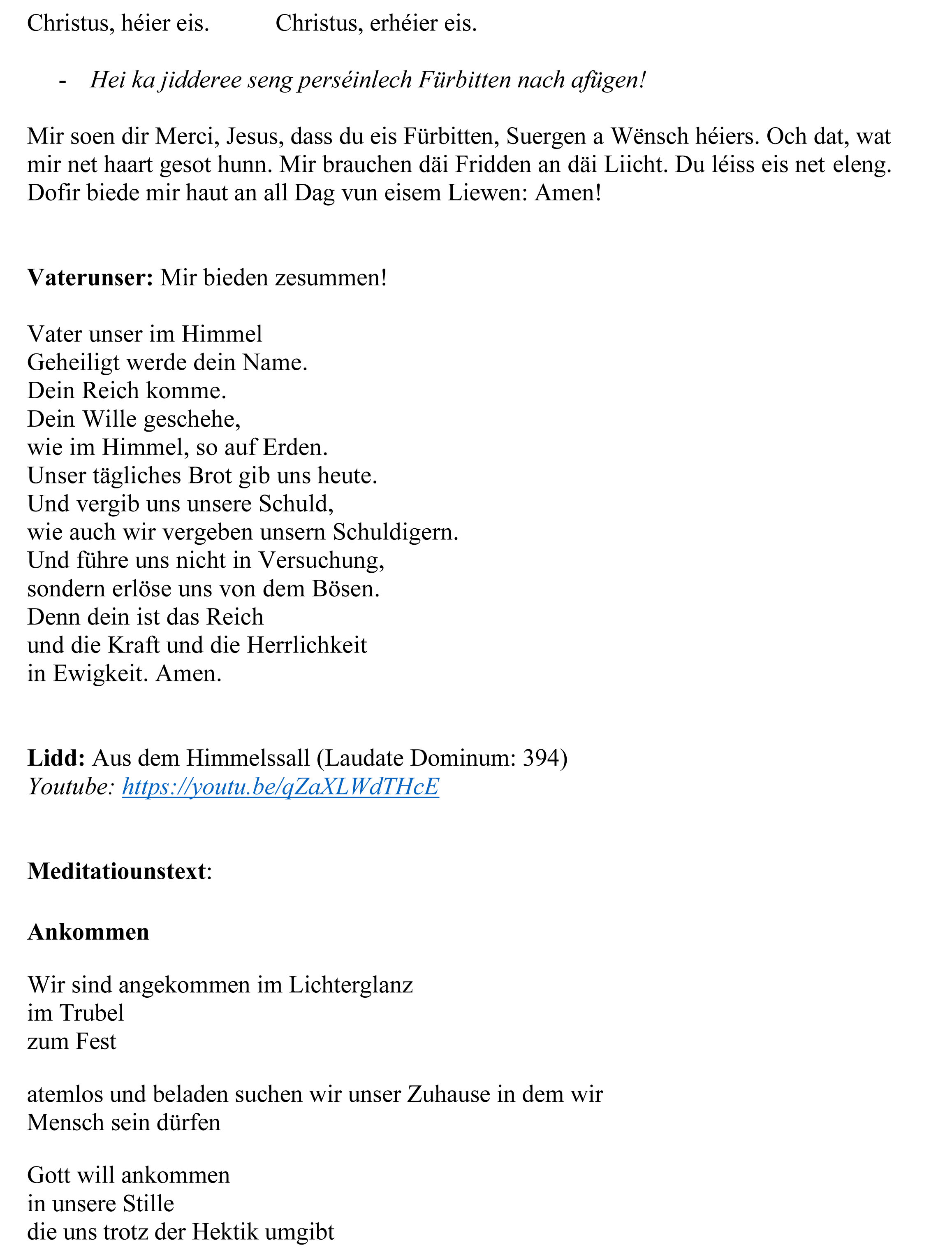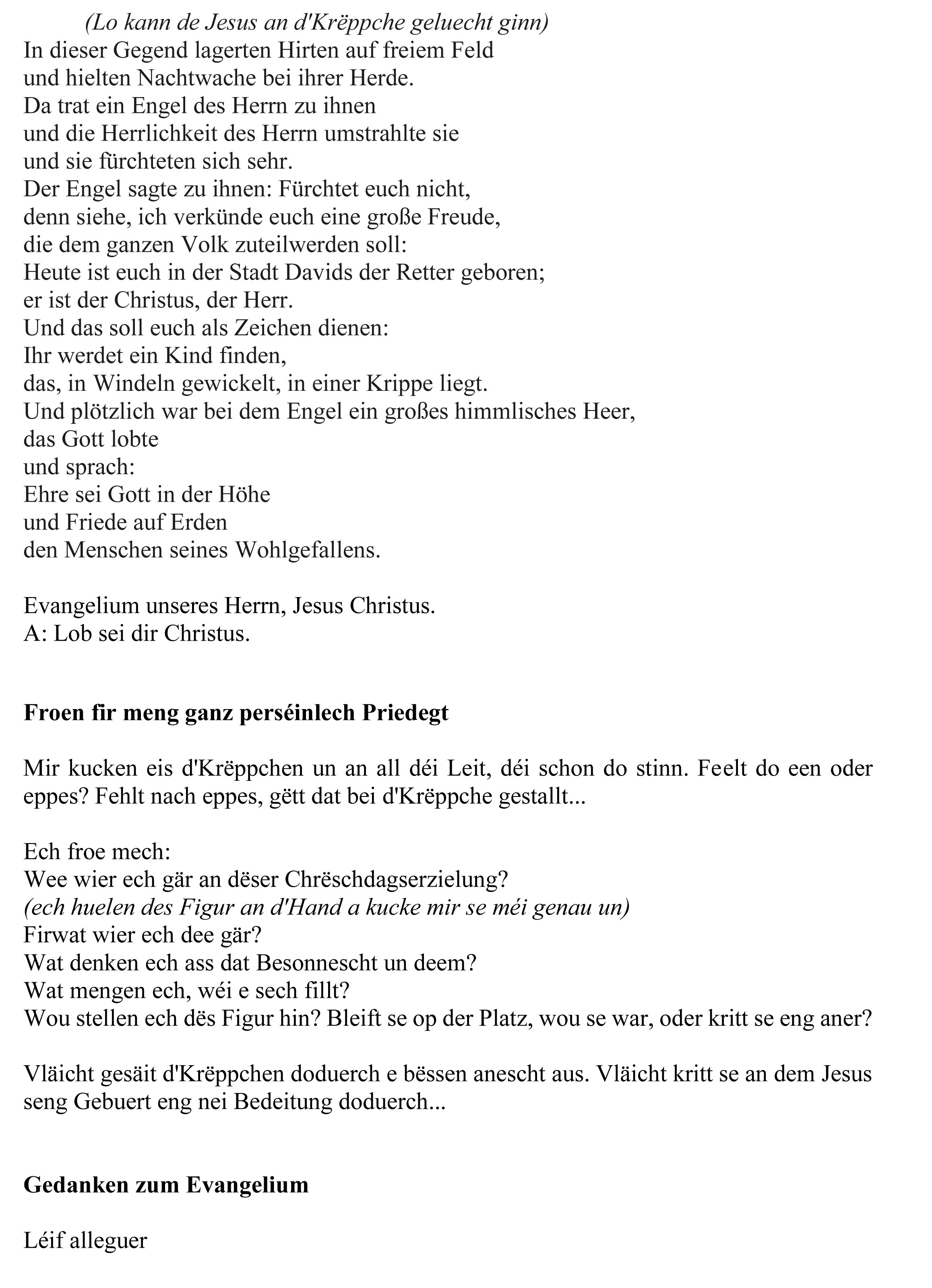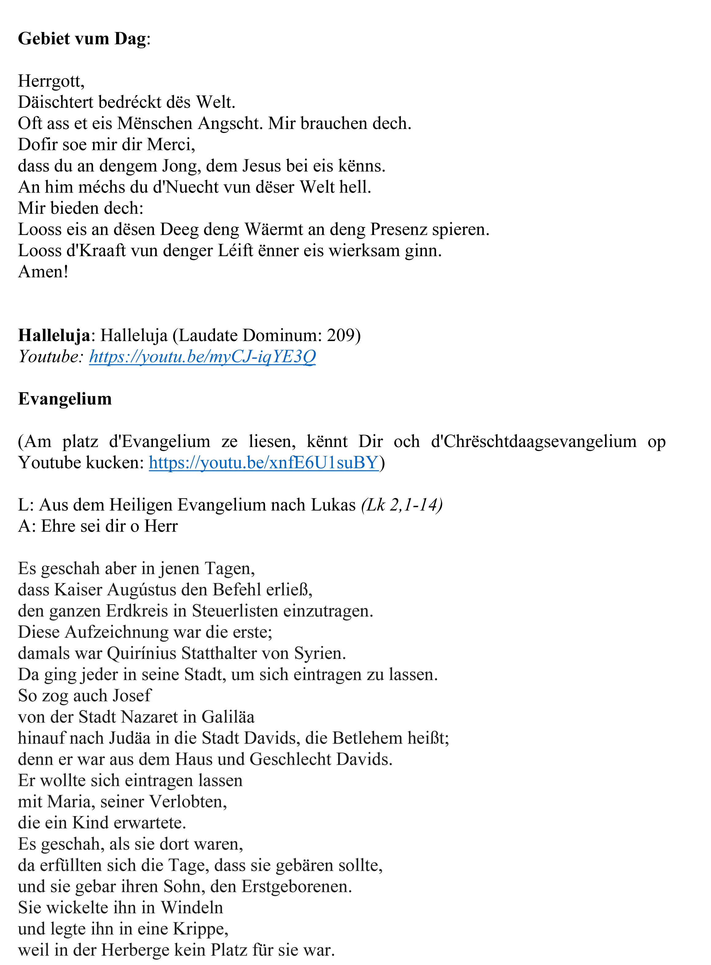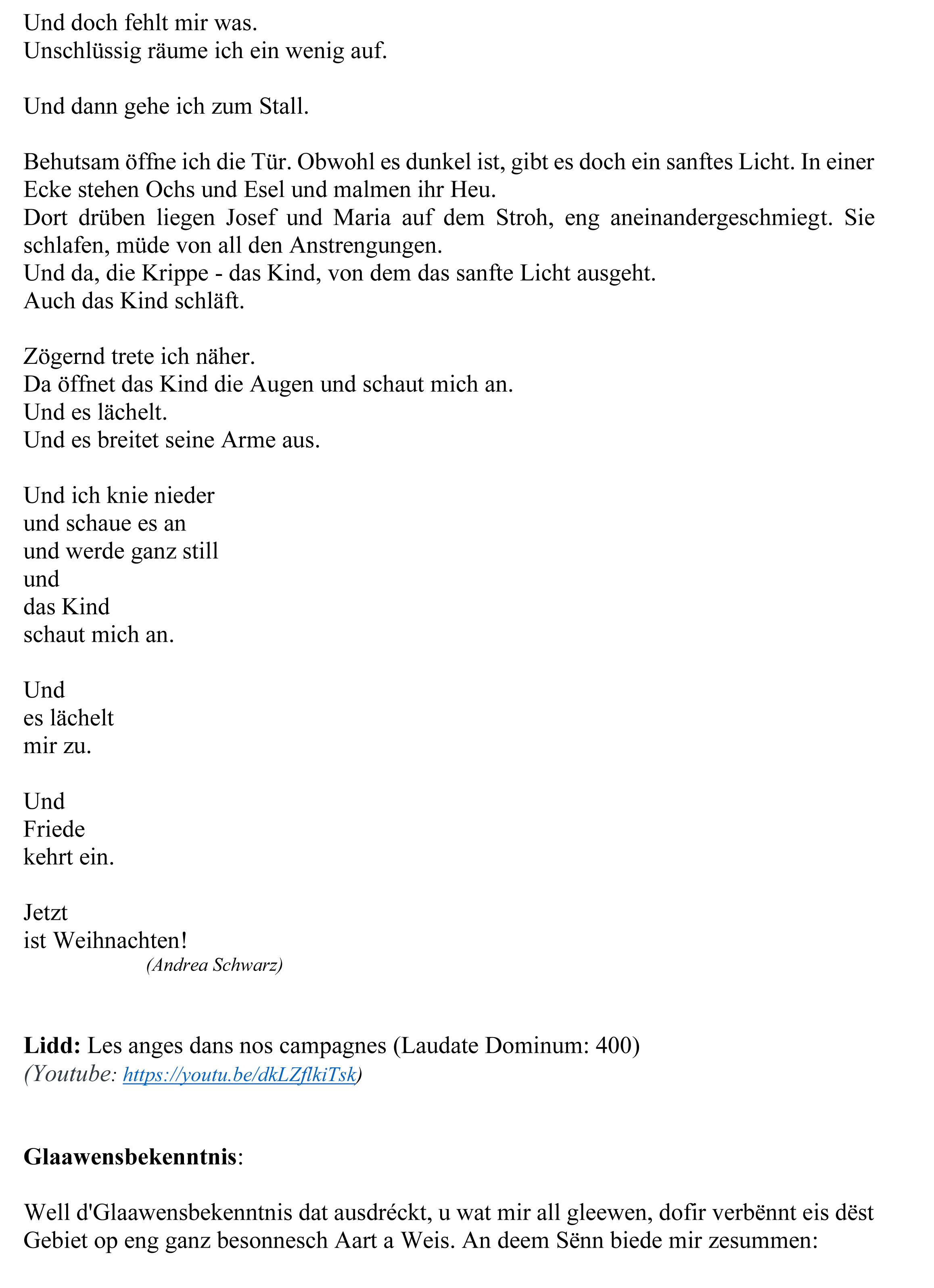Gottesdéngscht doheem- Chrëschtdag 2020