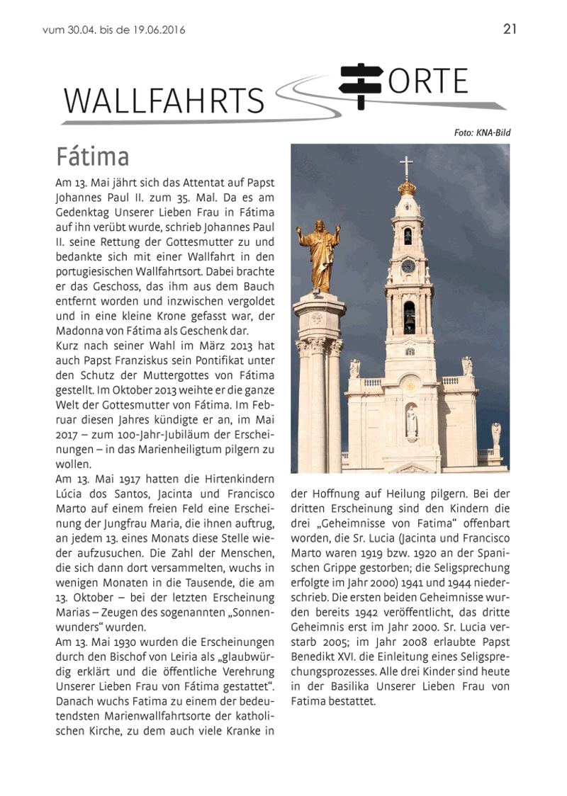 → Wallfahrtsorte - Fátima
