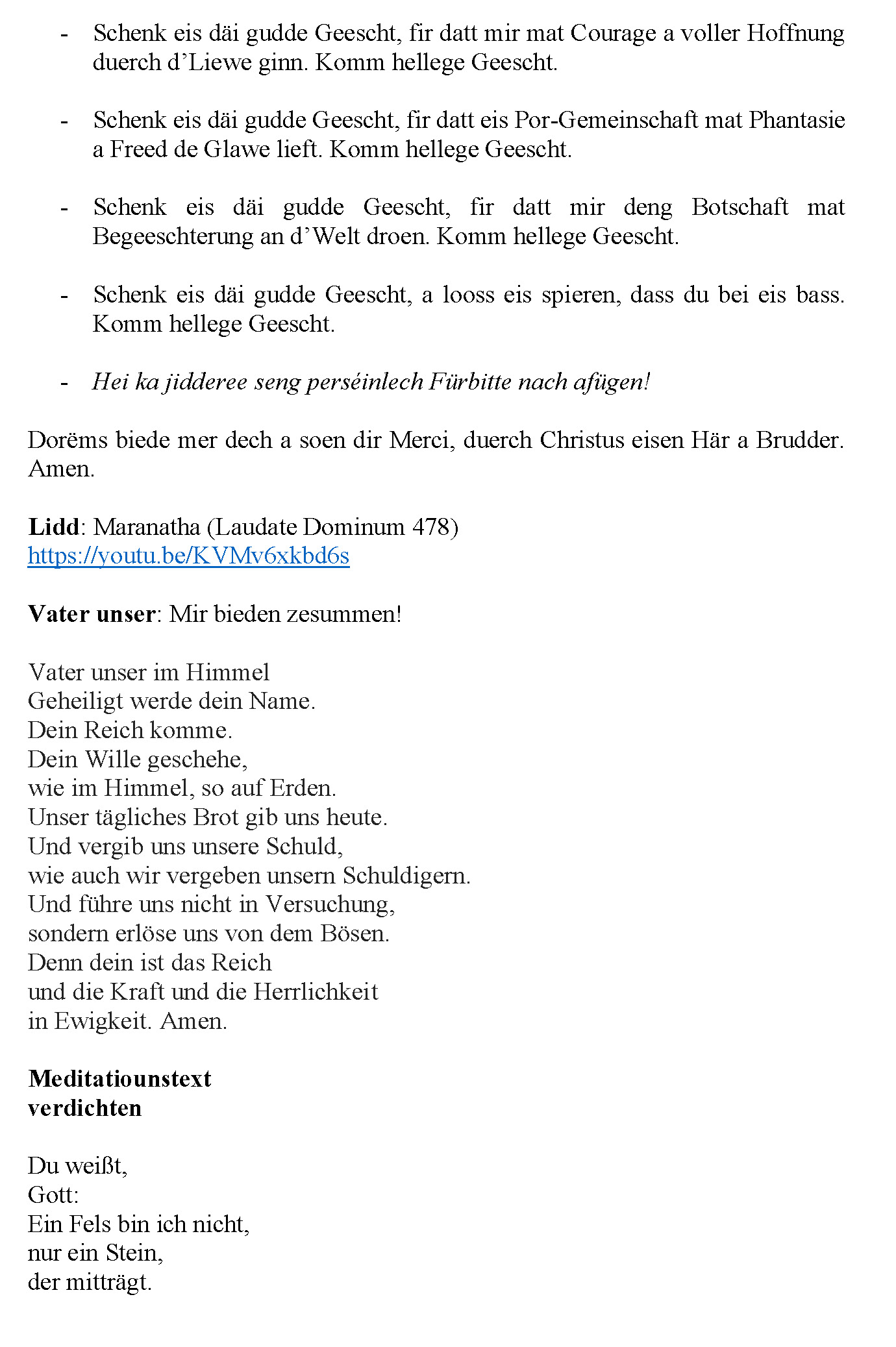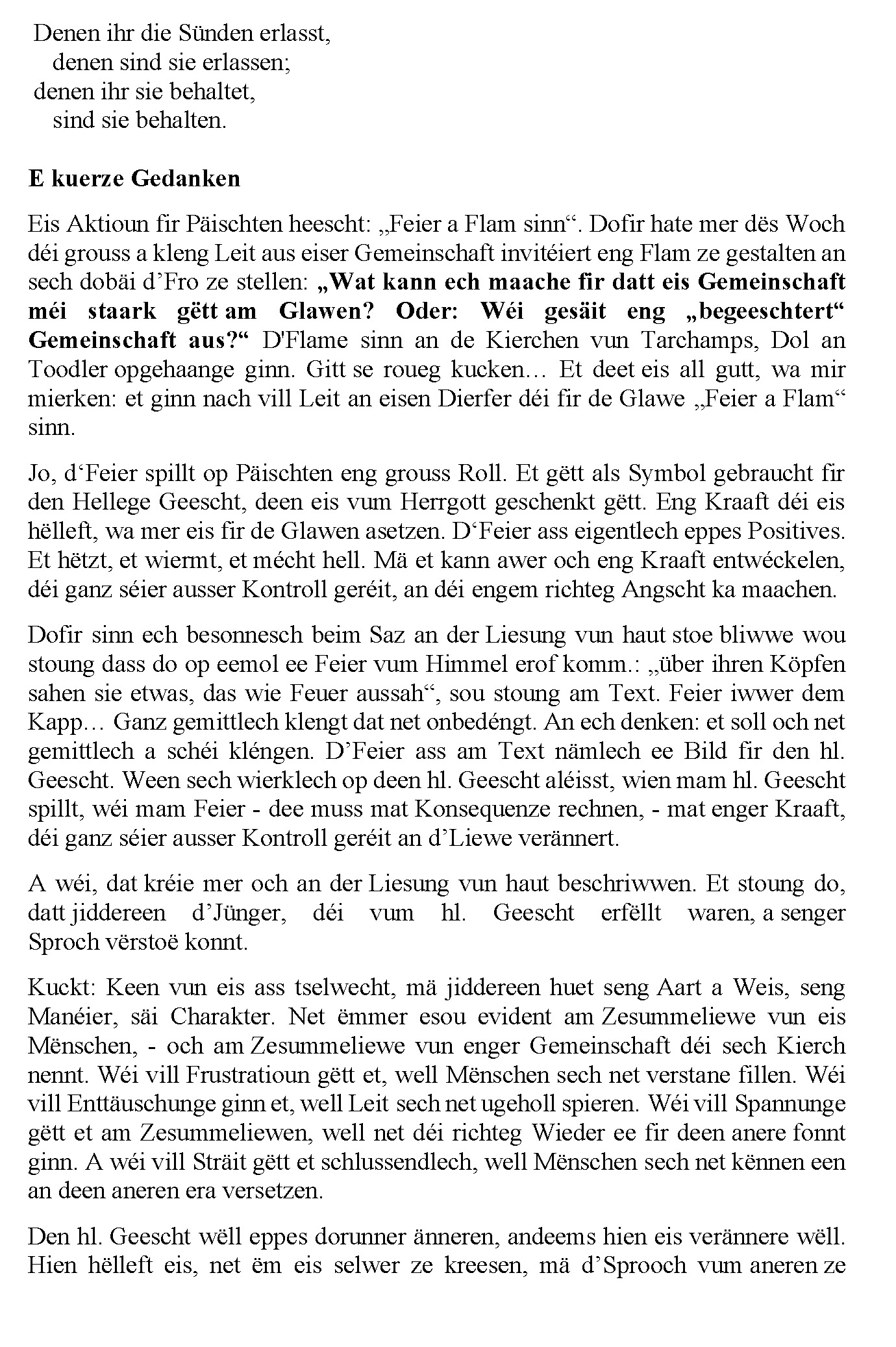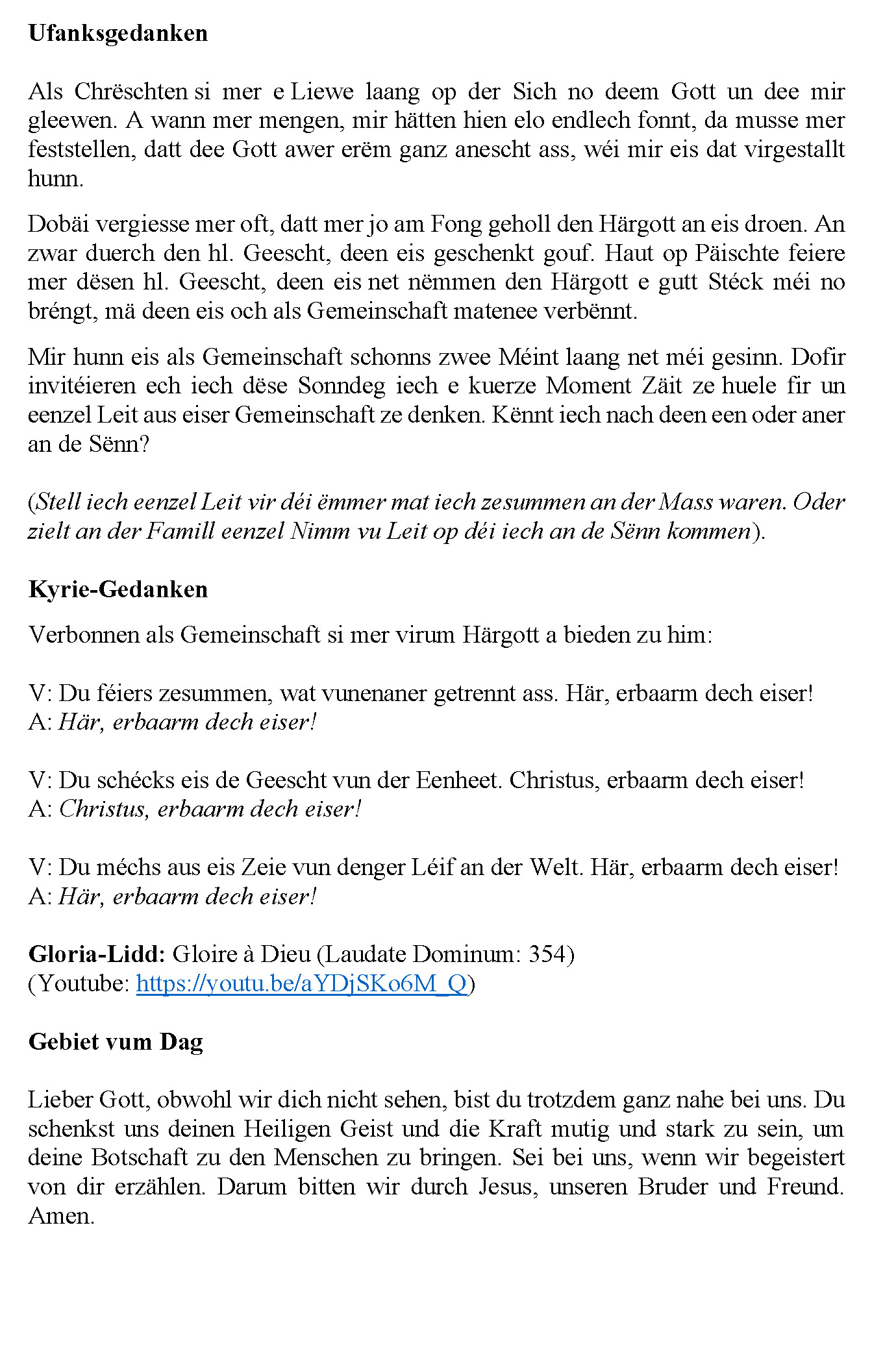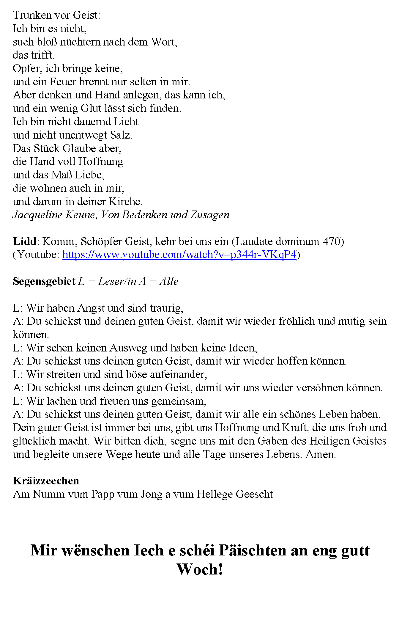 30.05.2020 - Gottesdéngscht Doheem - Päischten