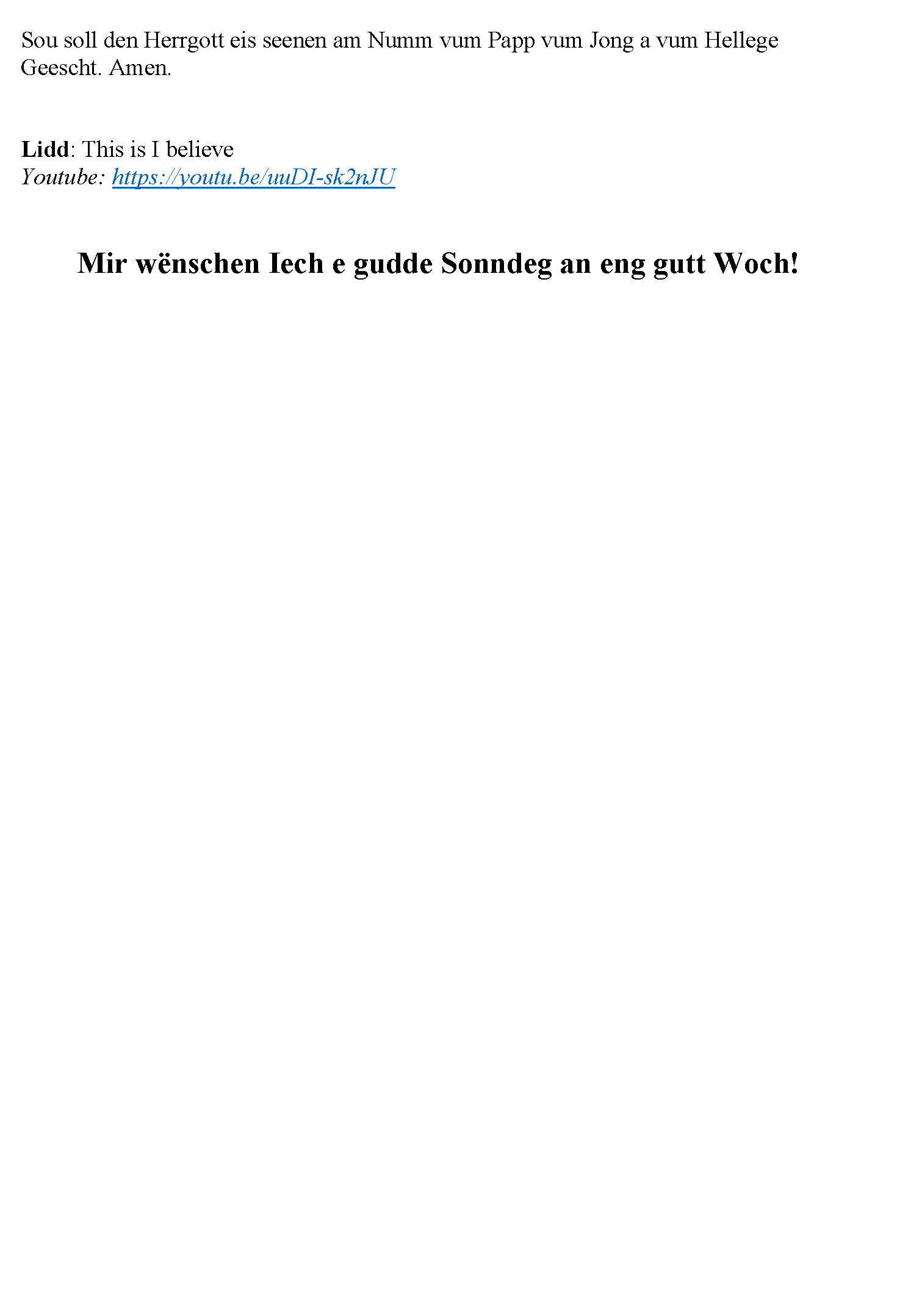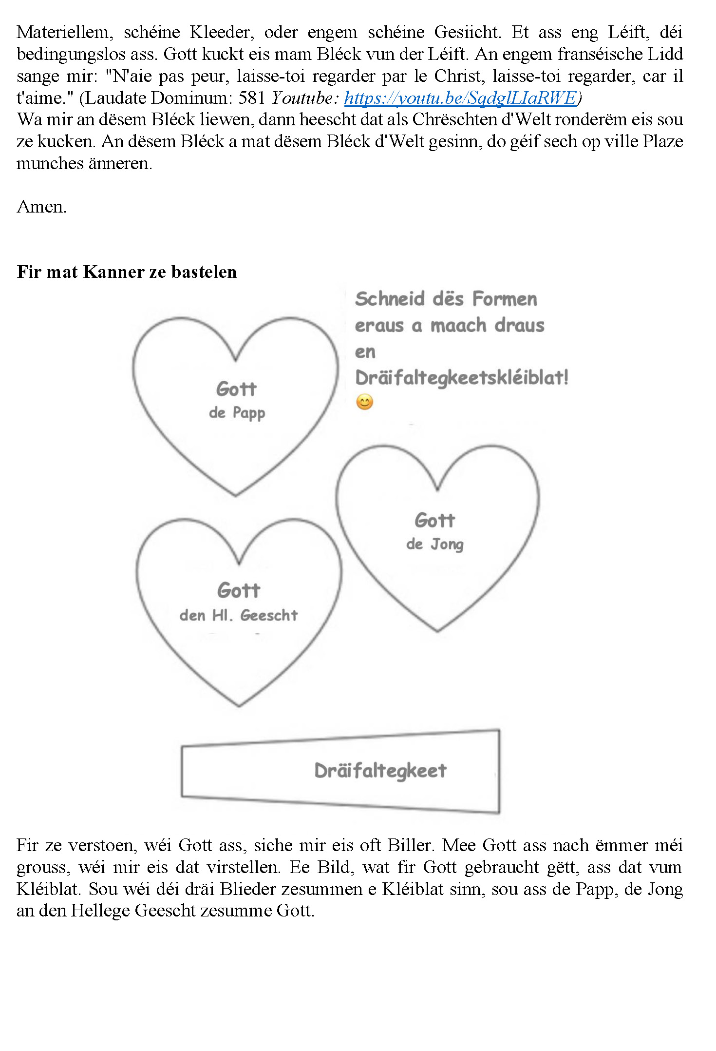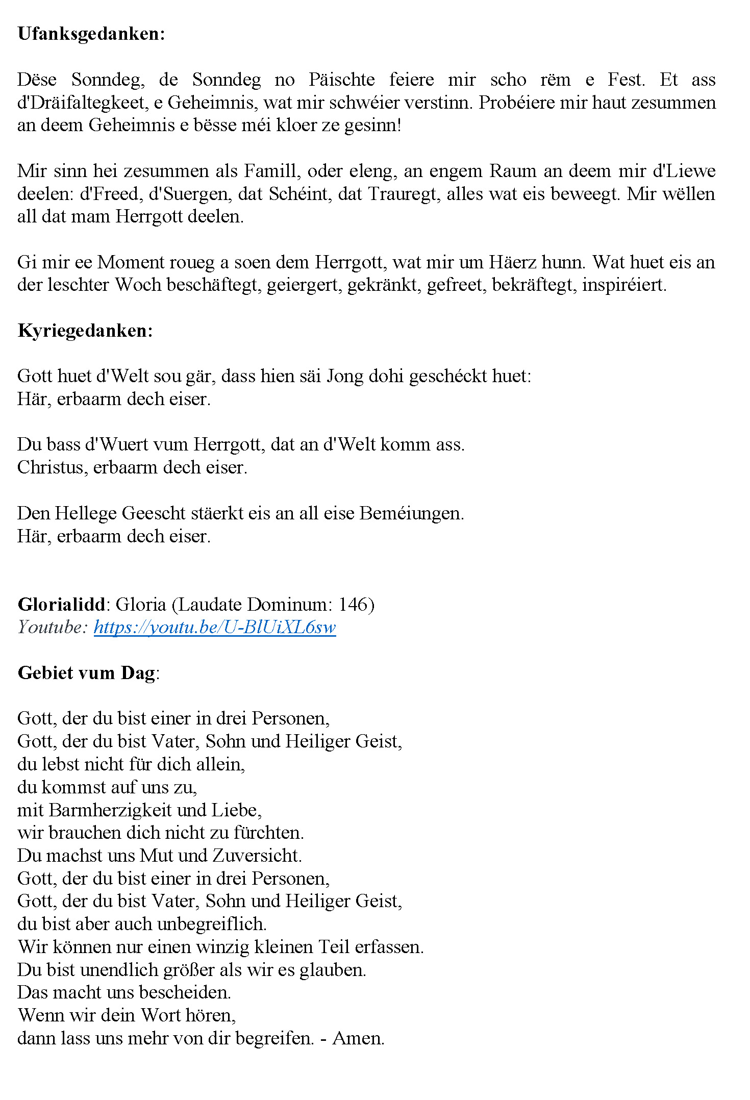 07.06.2020 - Gottesdéngscht Doheem - Dräifaltegkeetssonndeg