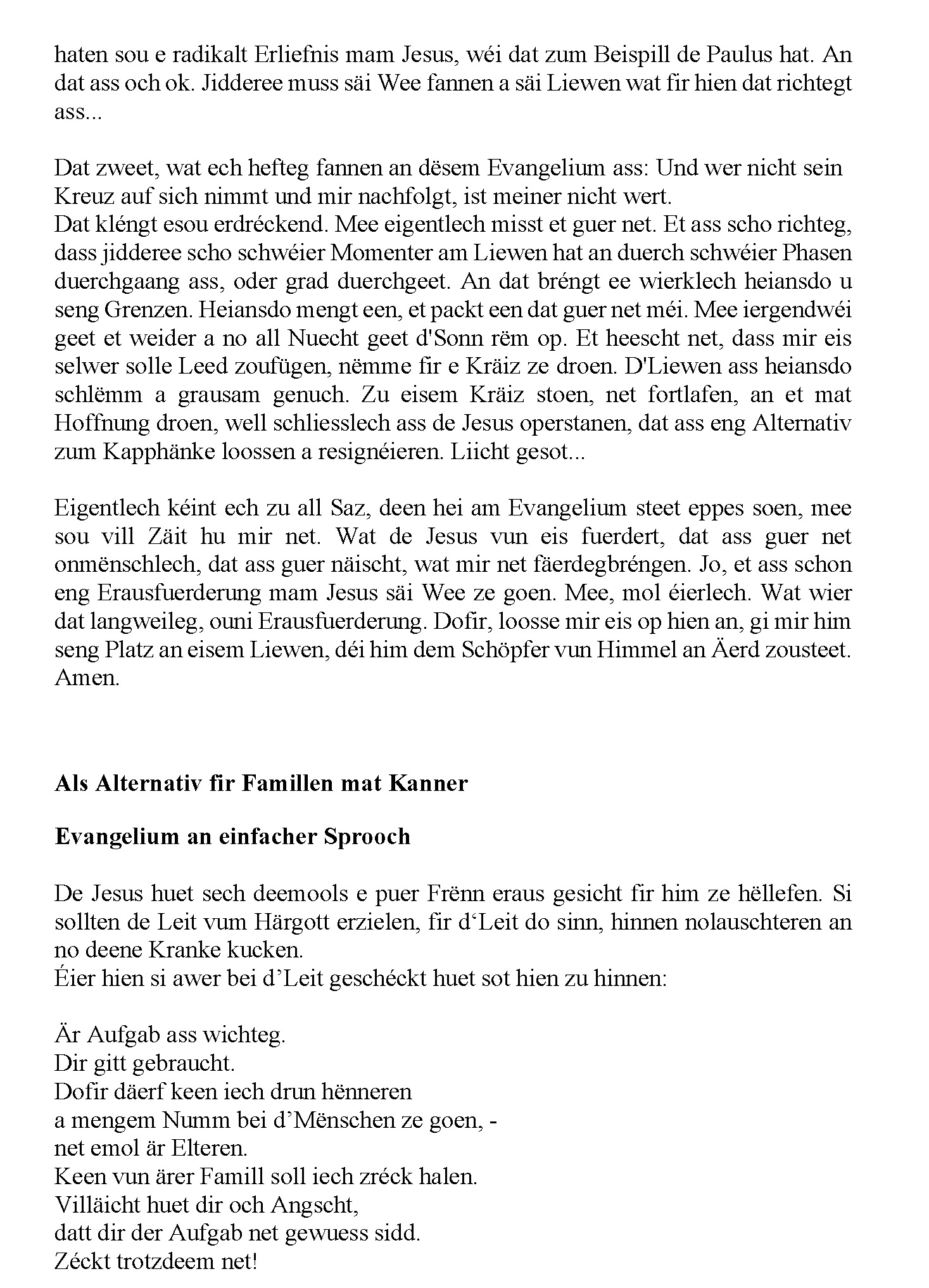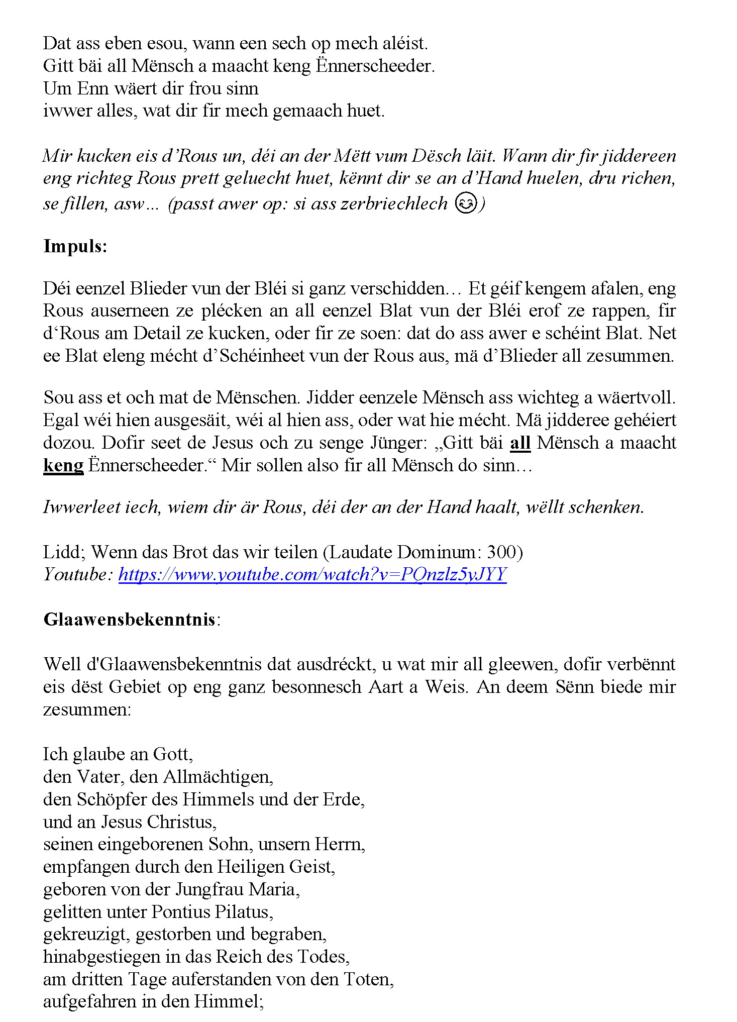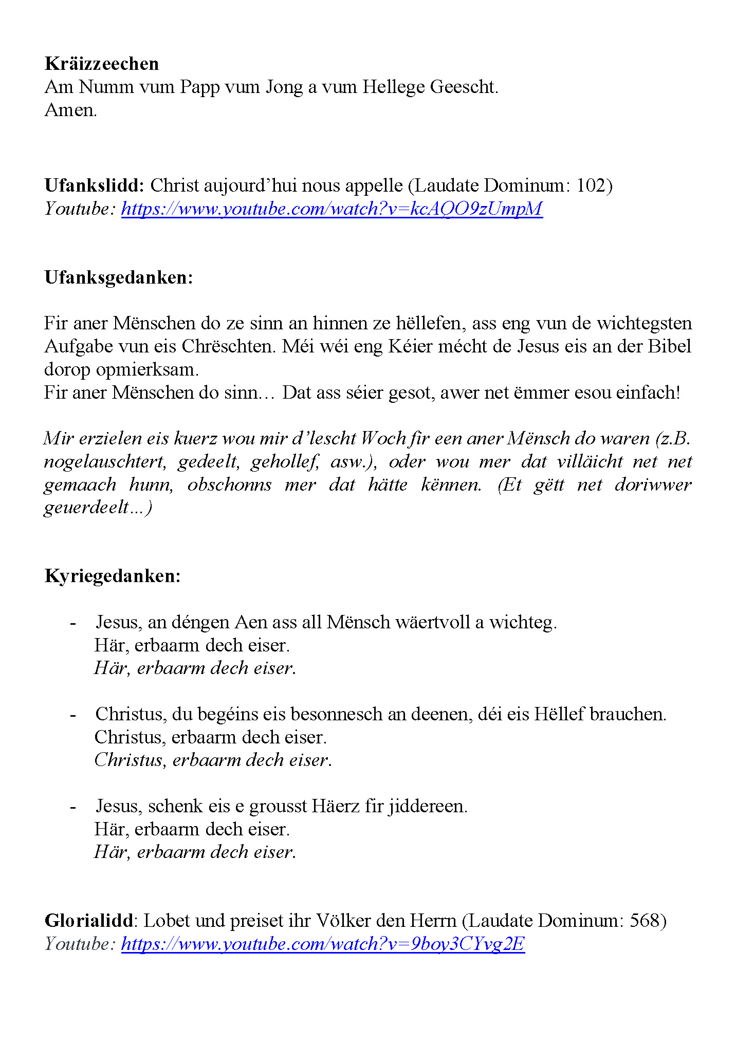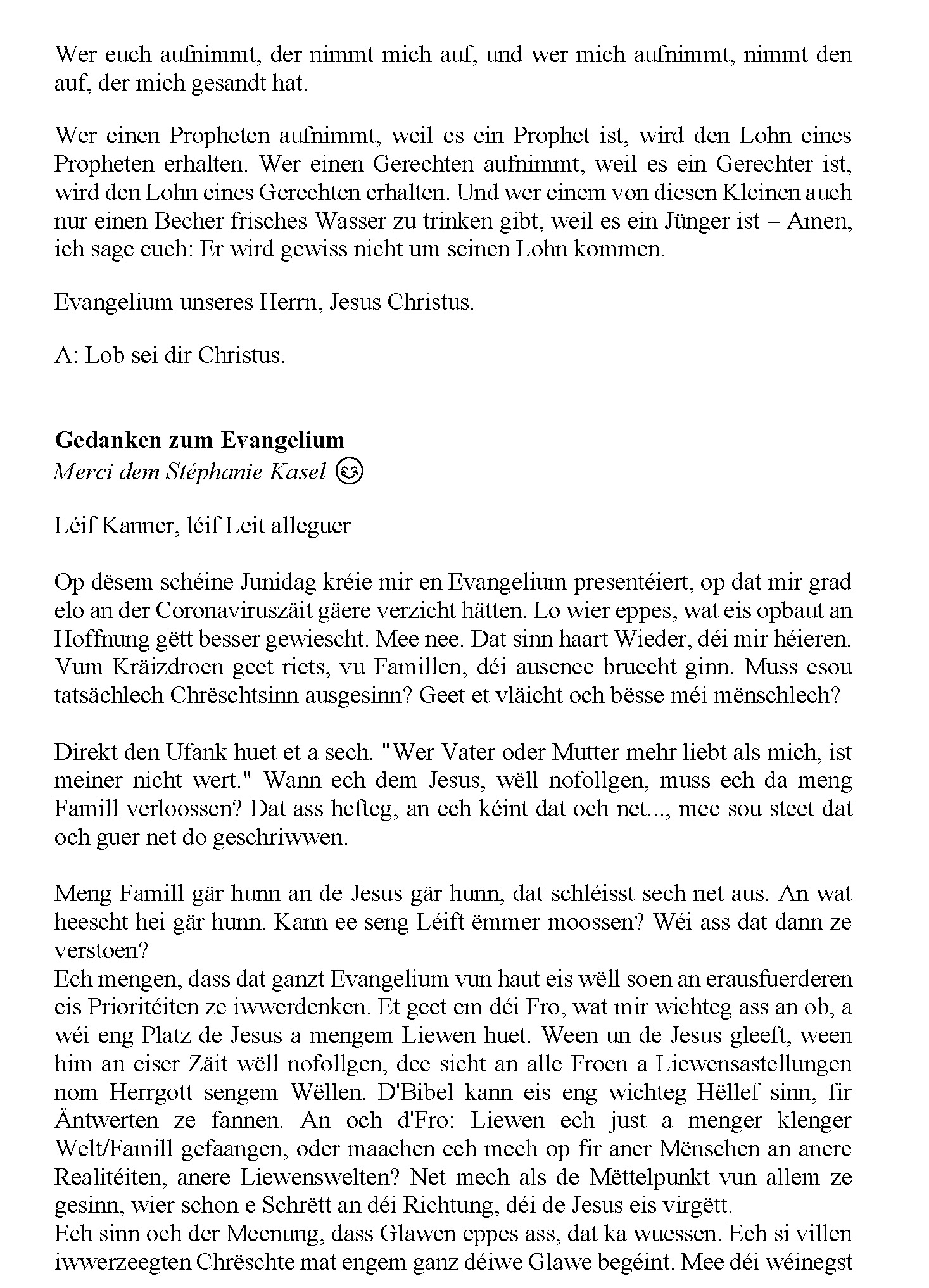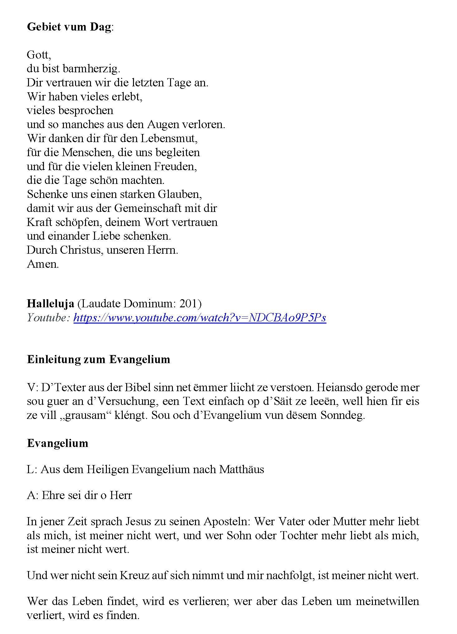 27.06.2020 - Gottesdéngscht Doheem - 13. Sonndeg am Joreskrees A