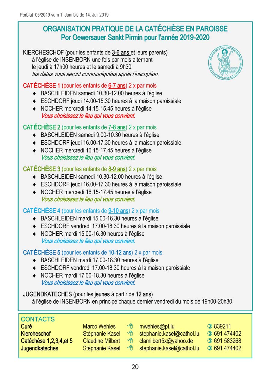 Organisation catéchèse 2019-2020