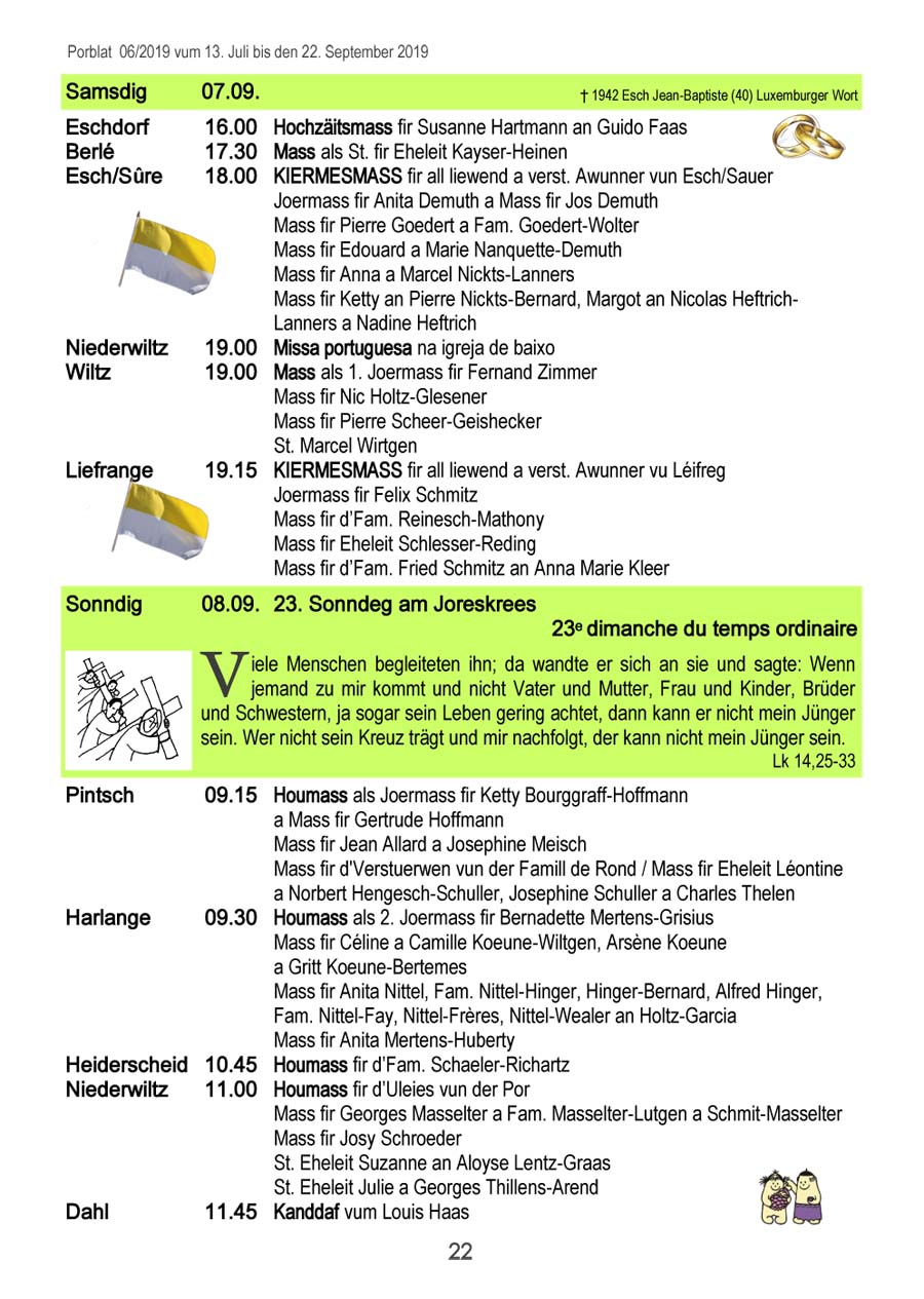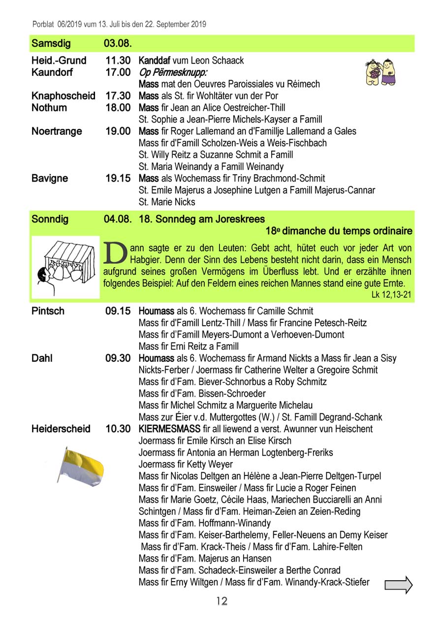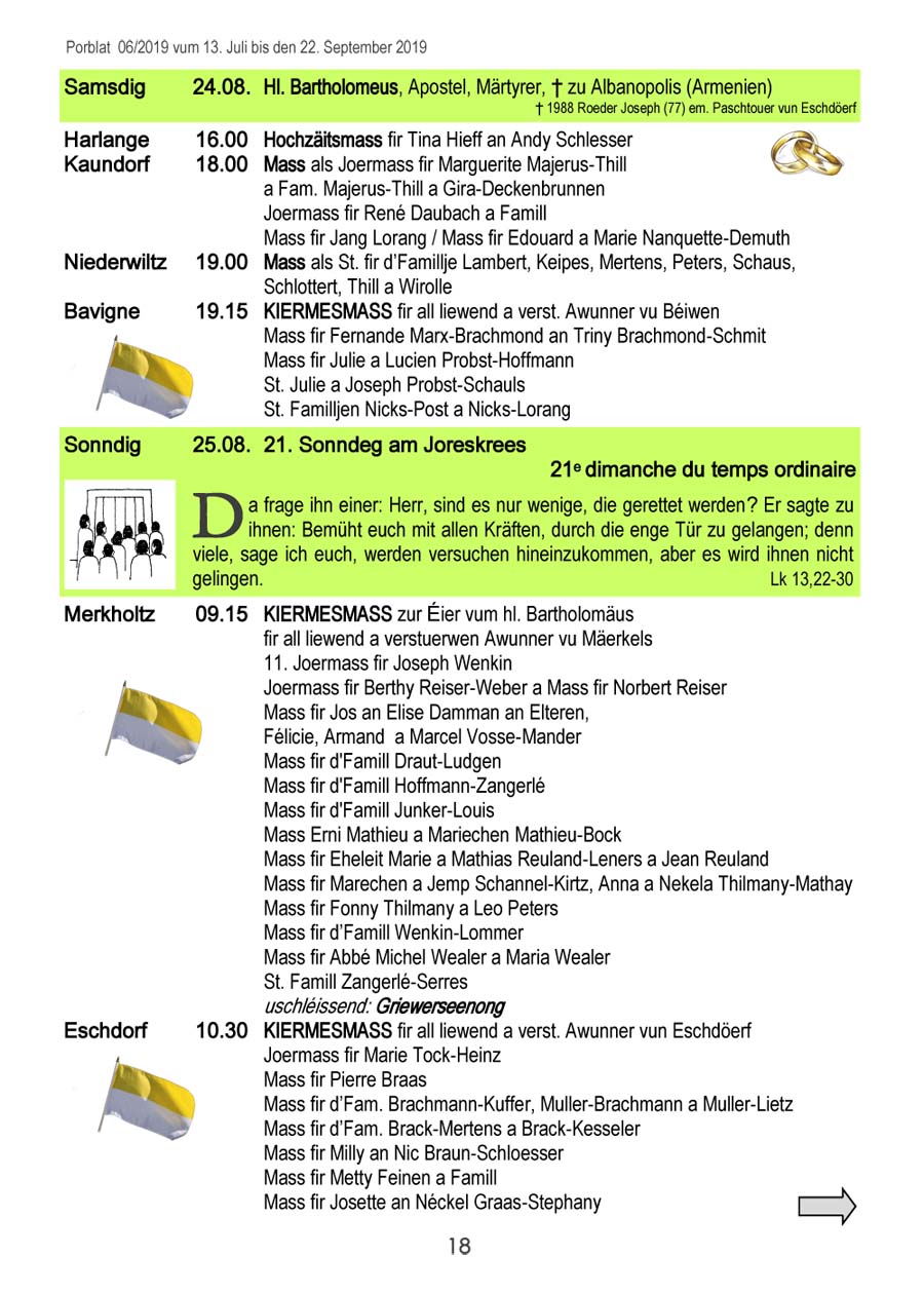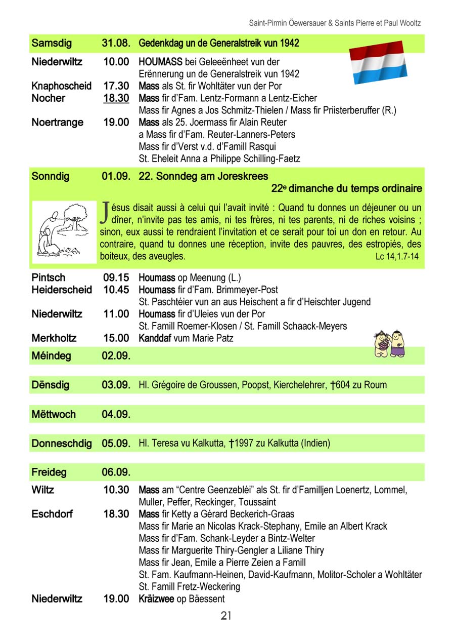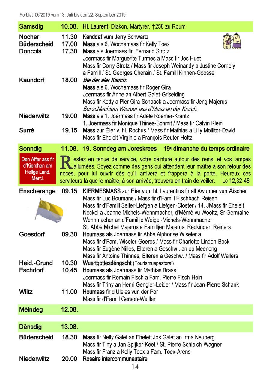 Horraire vun den Massen an Events