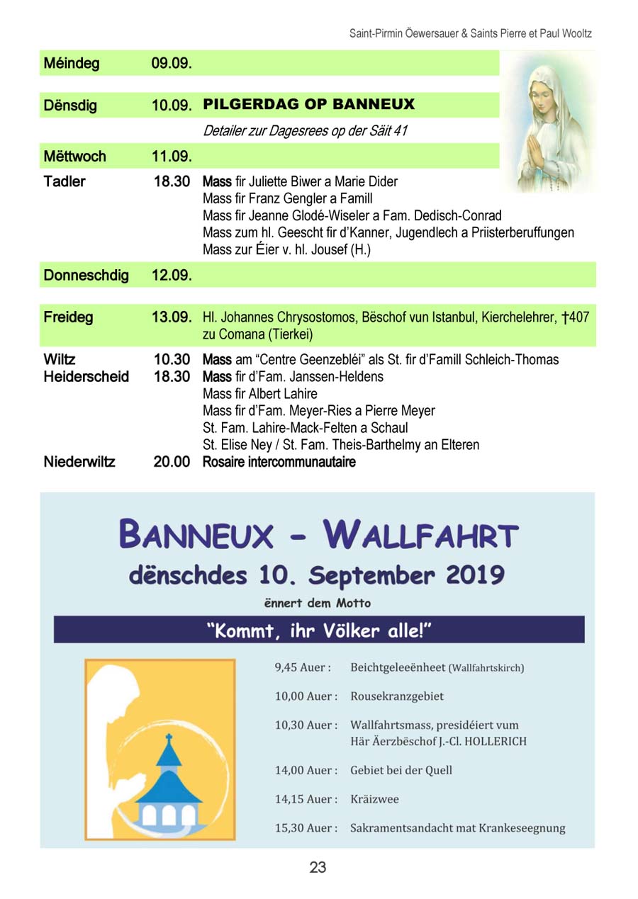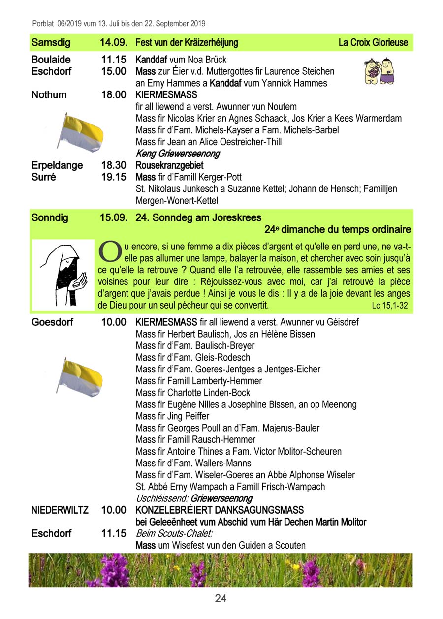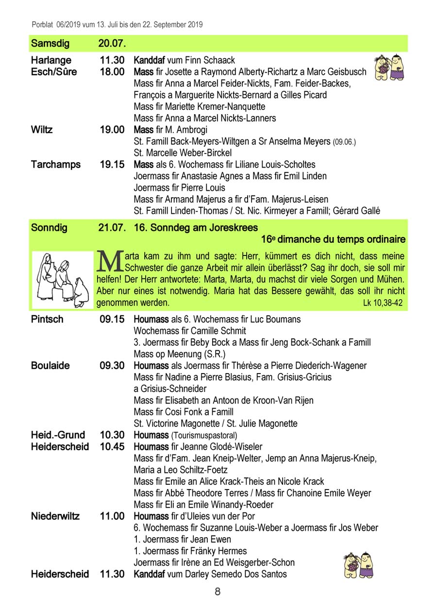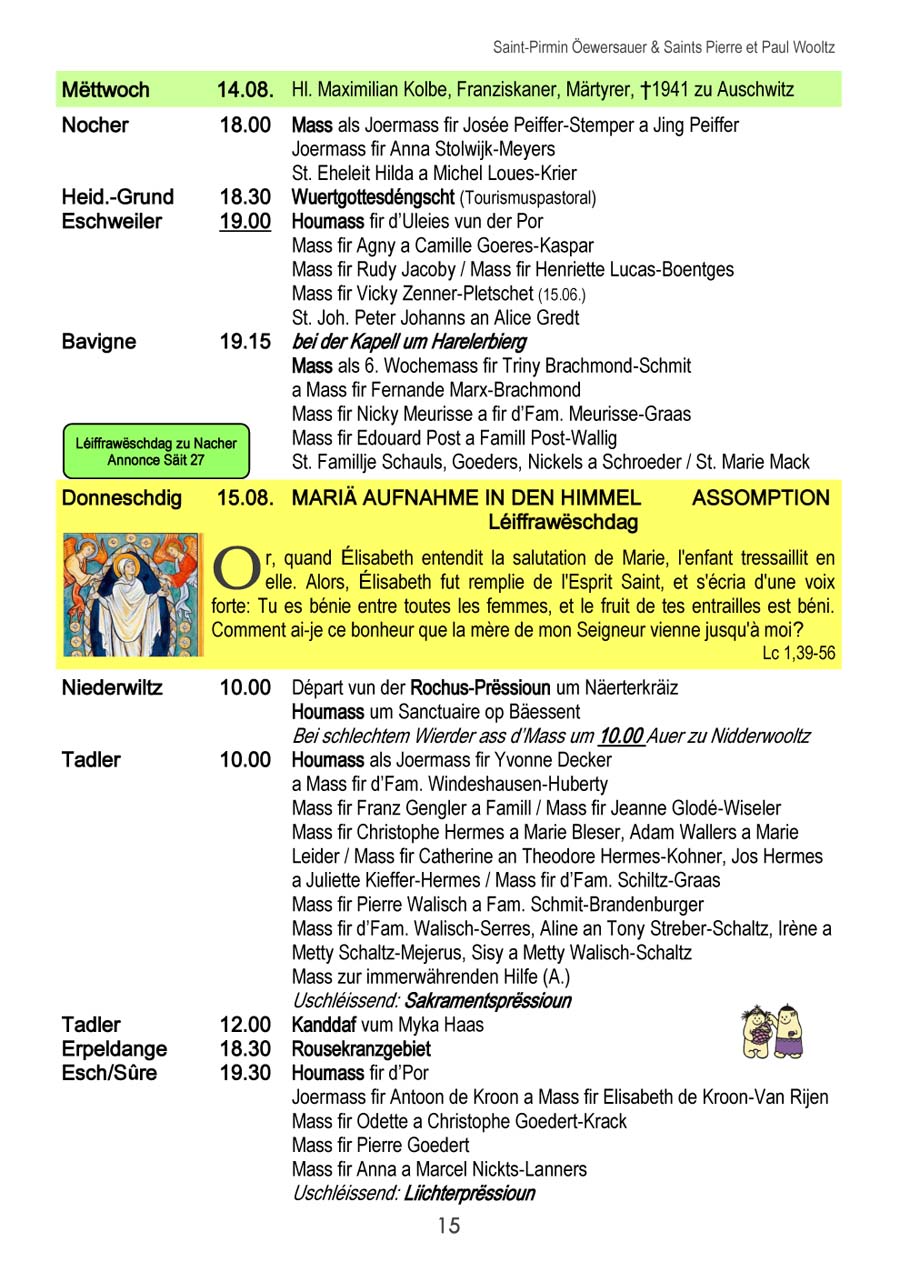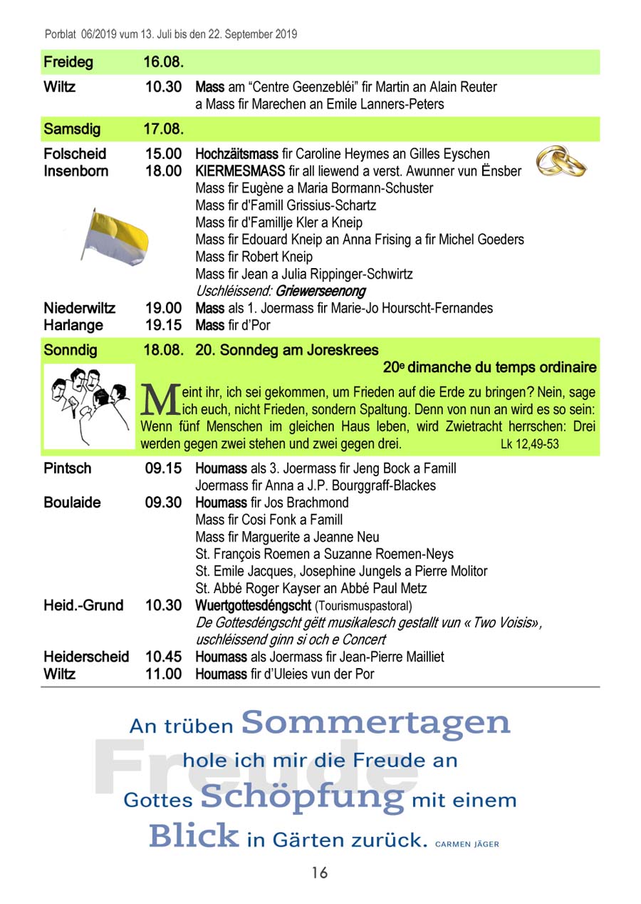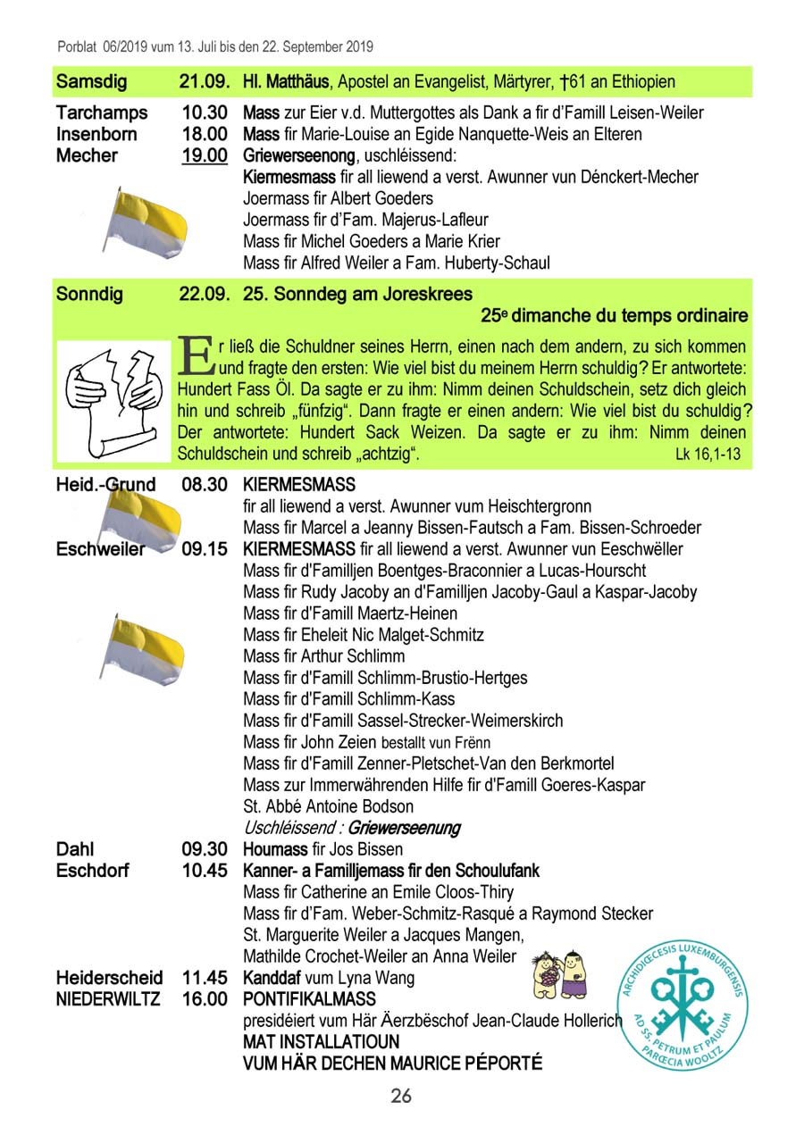Horraire vun den Massen an Events
