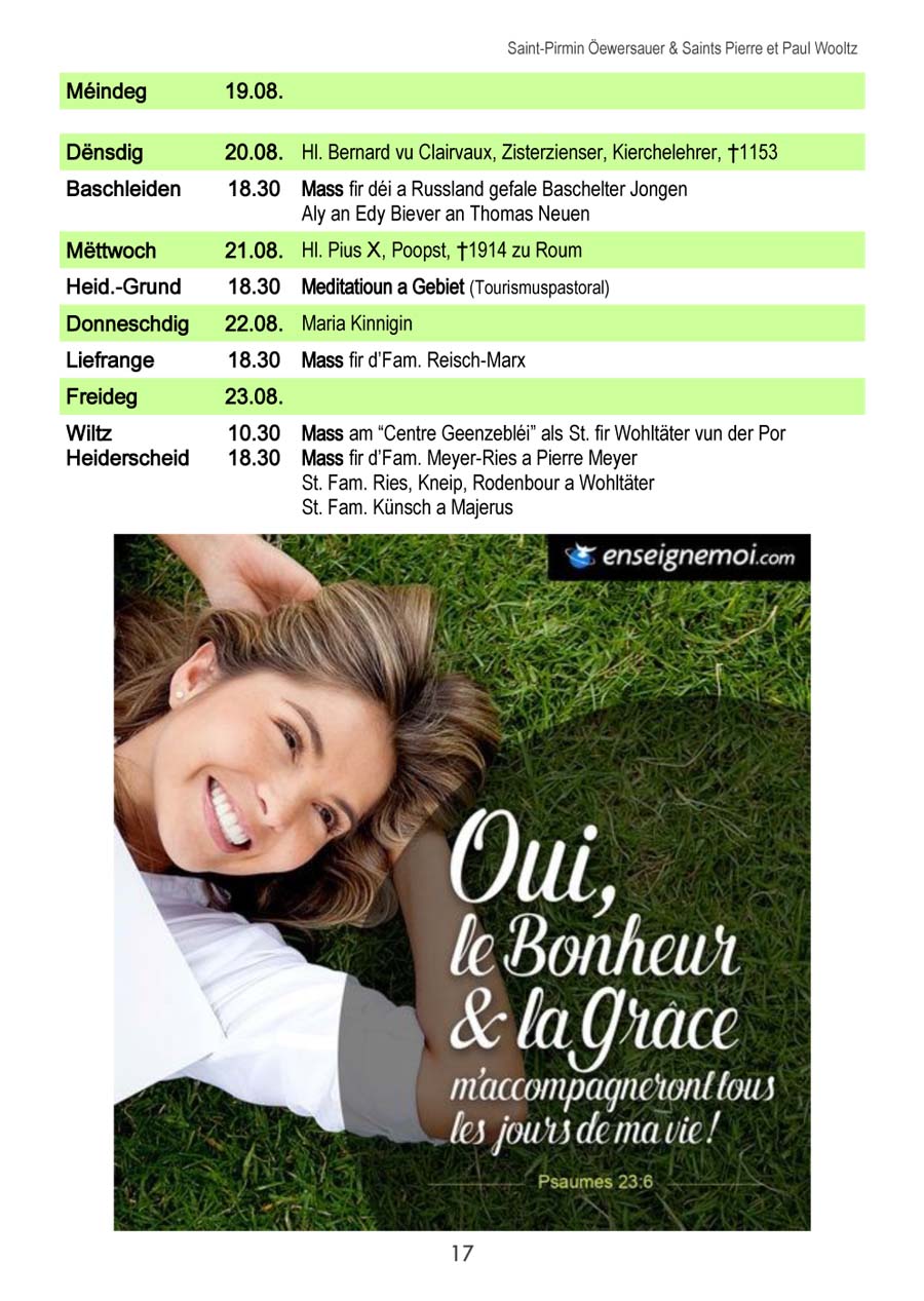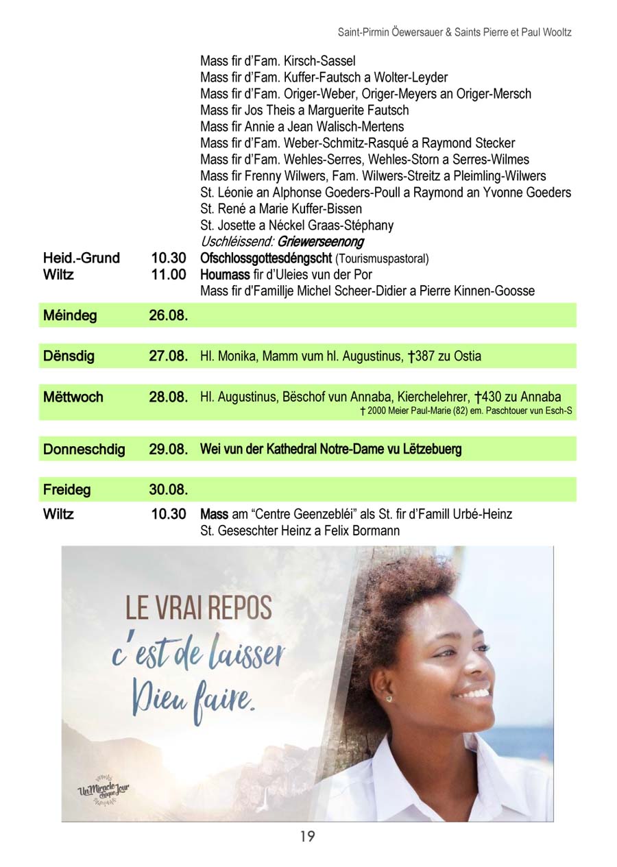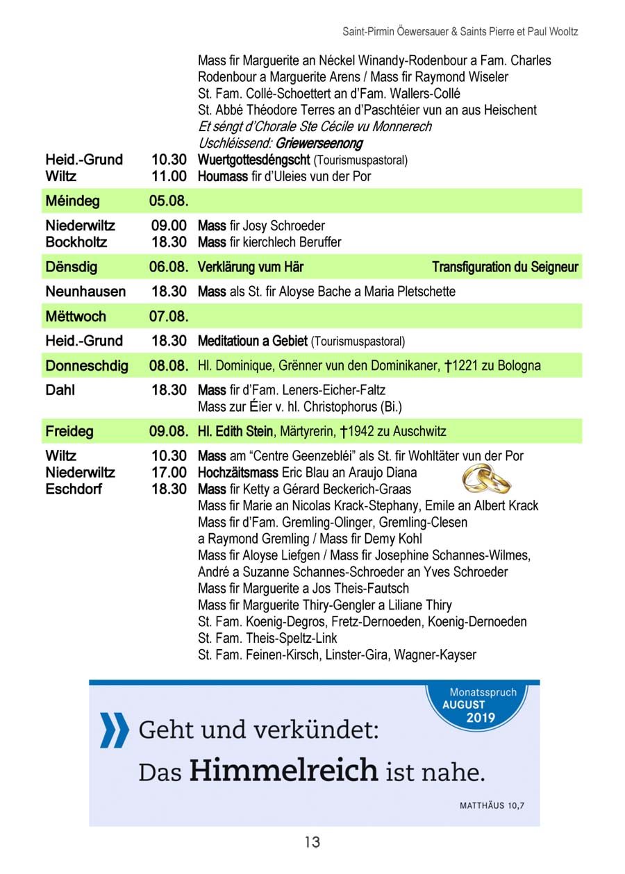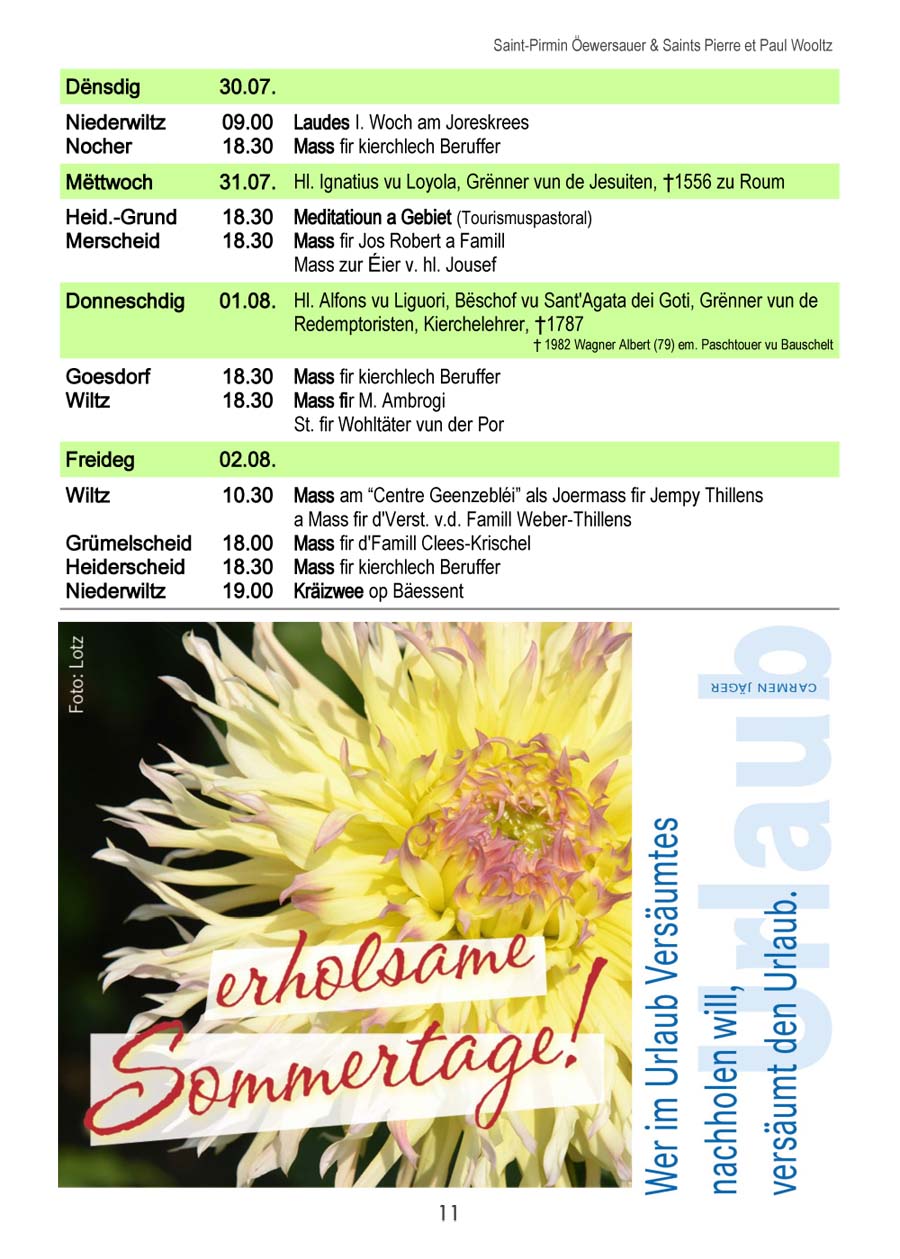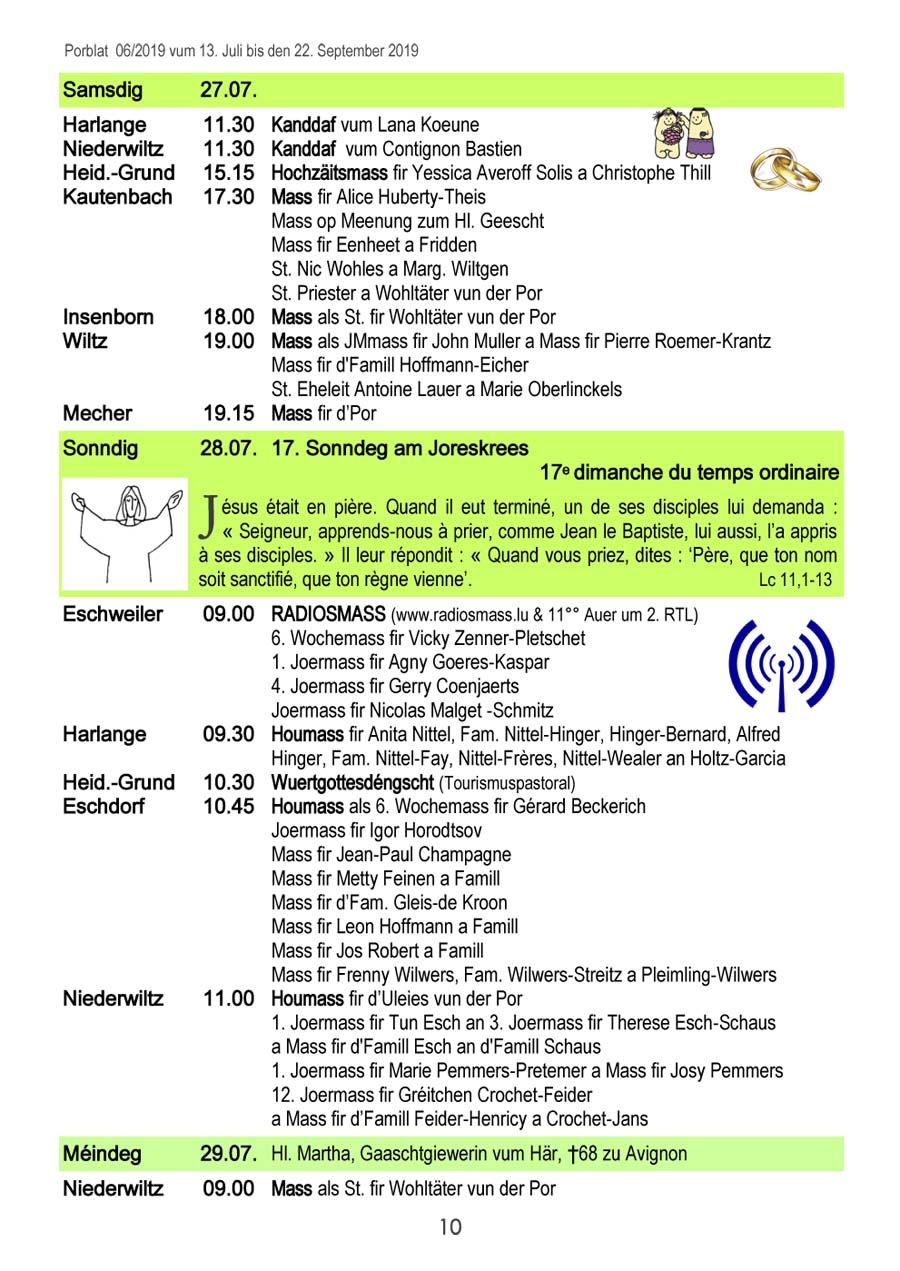 Horraire vun den Massen an Events