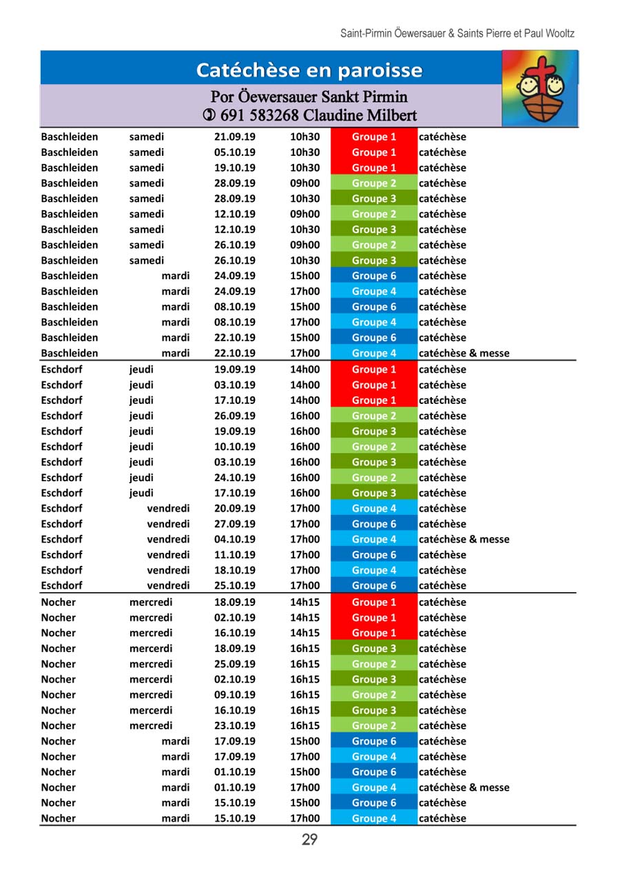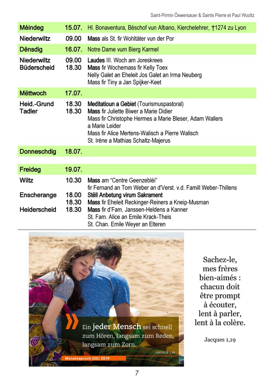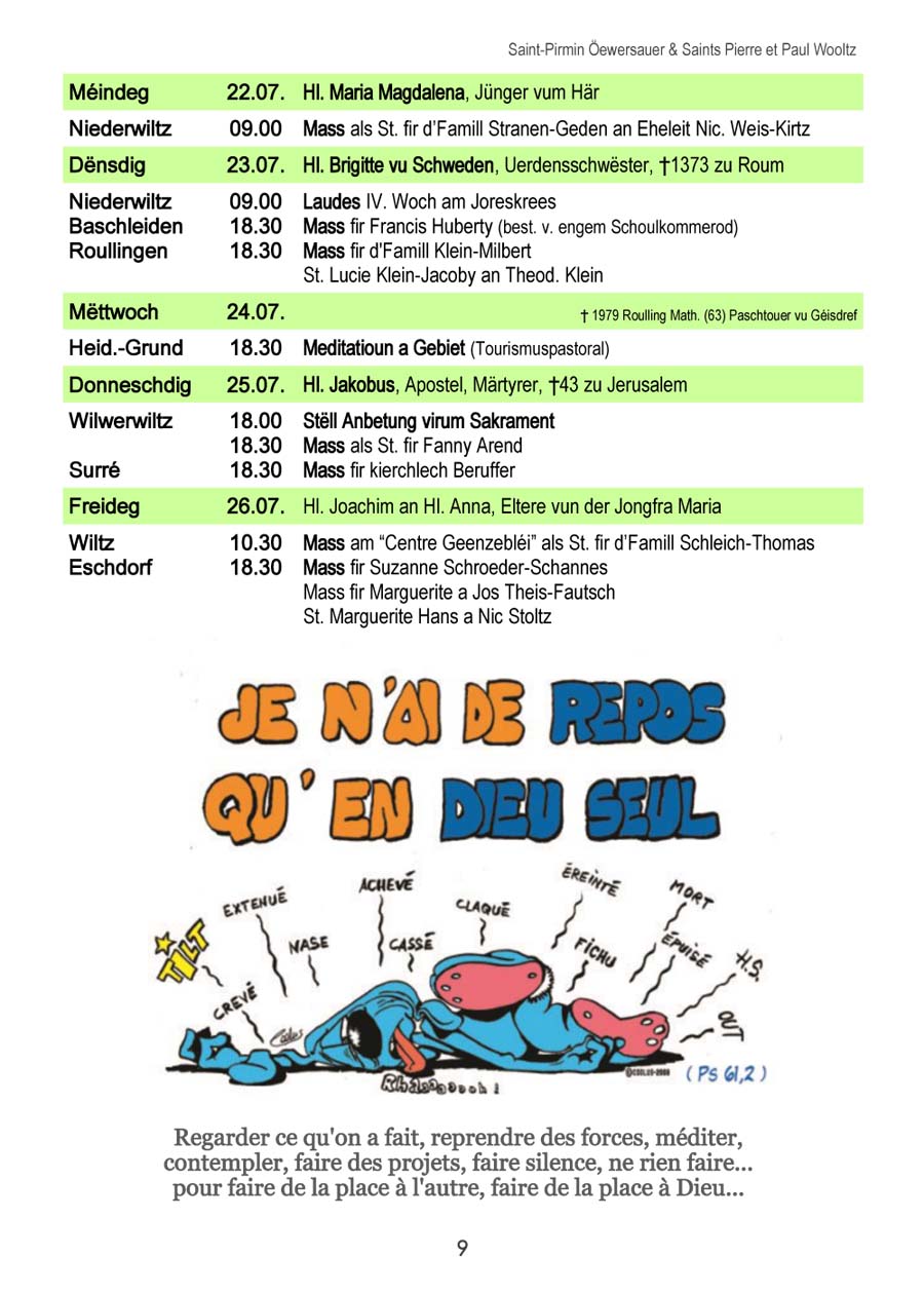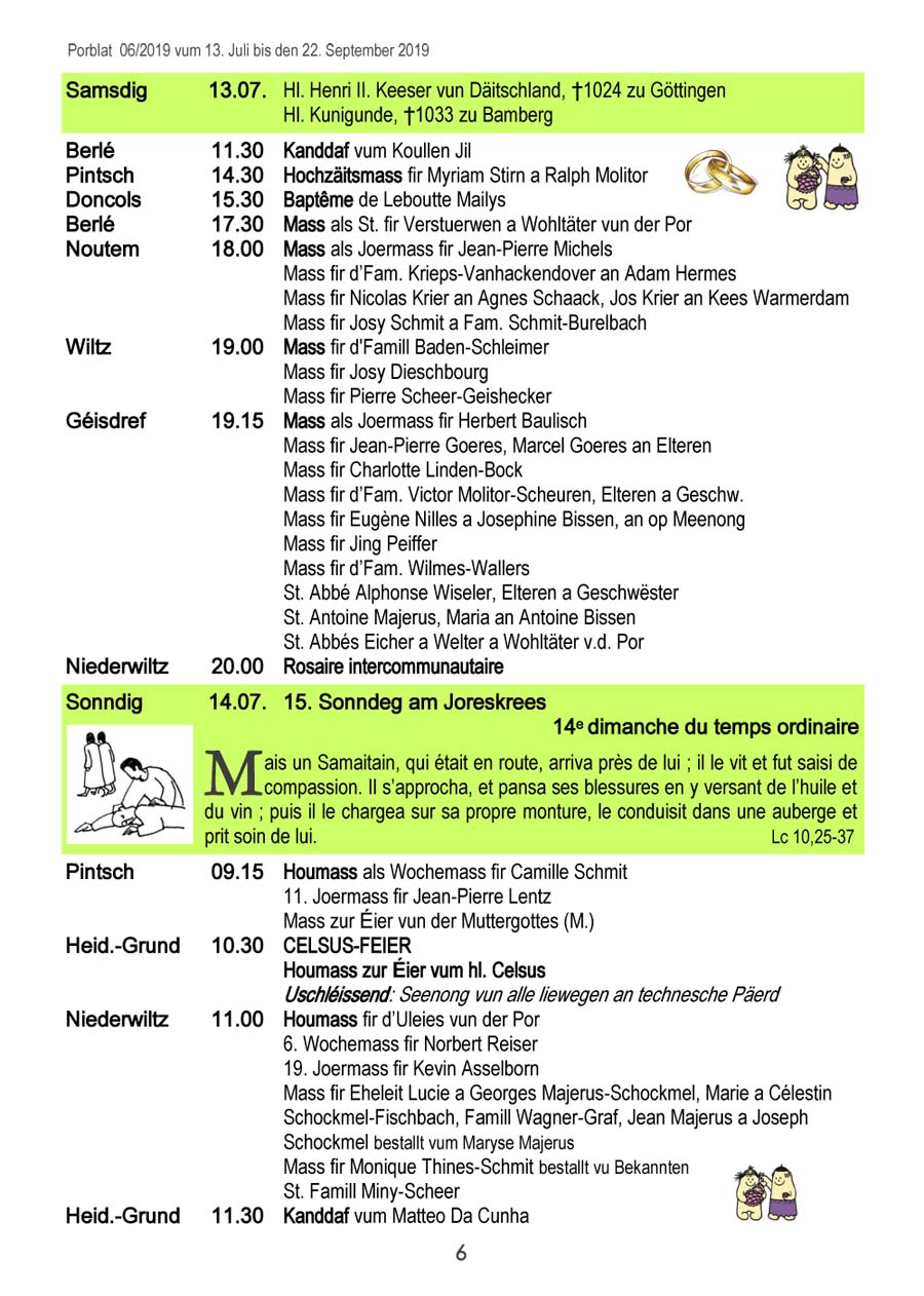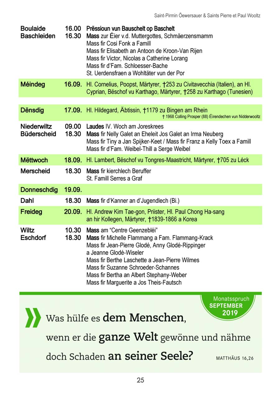 Horraire vun den Massen an Events
