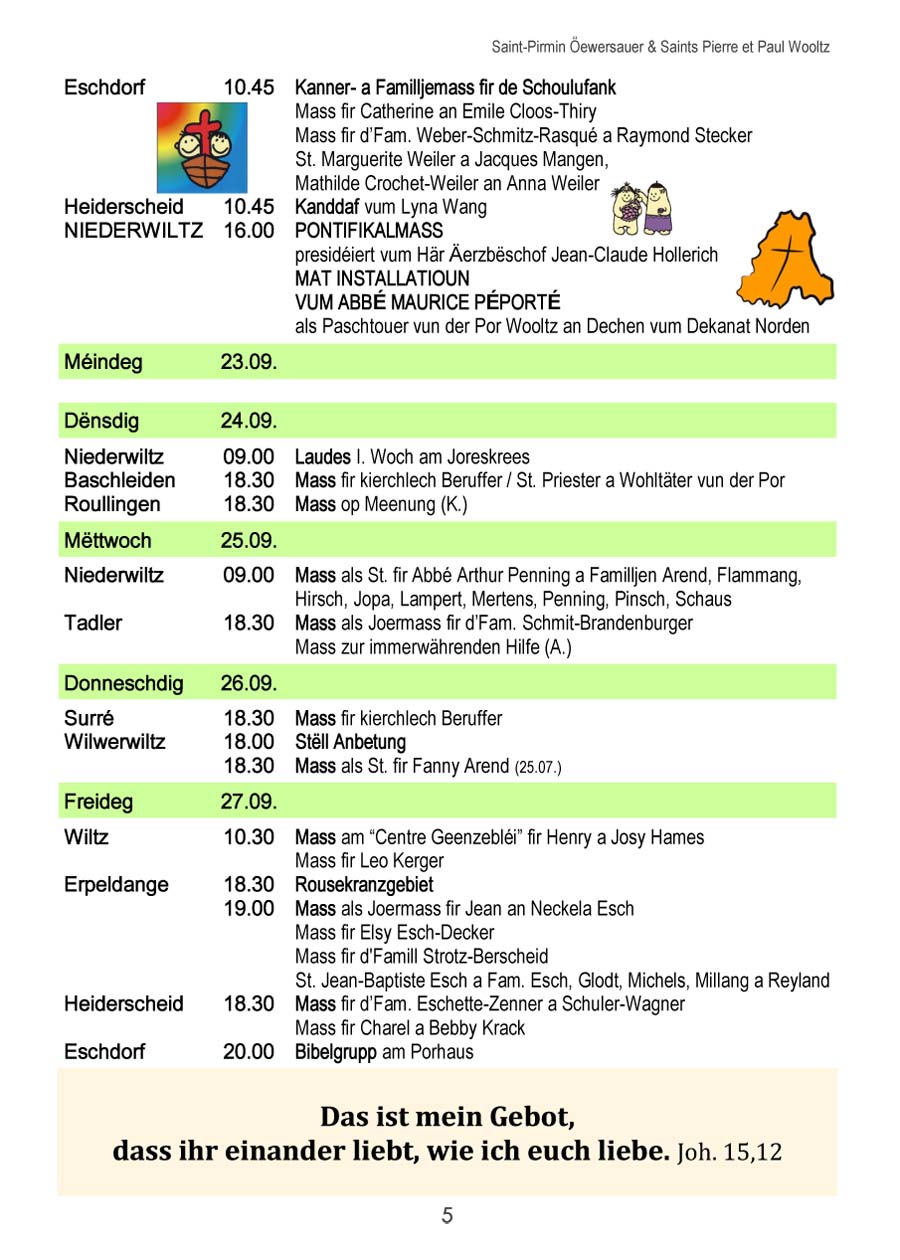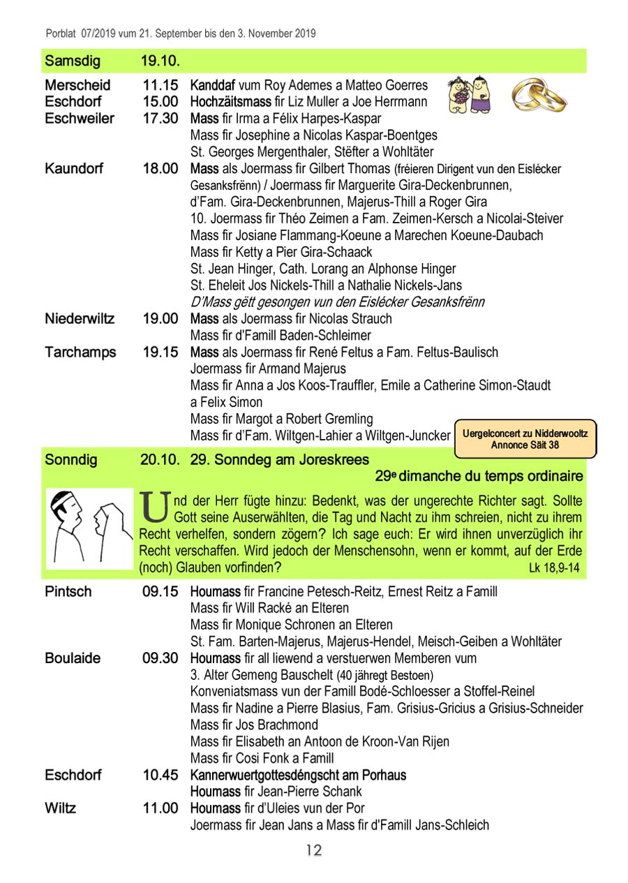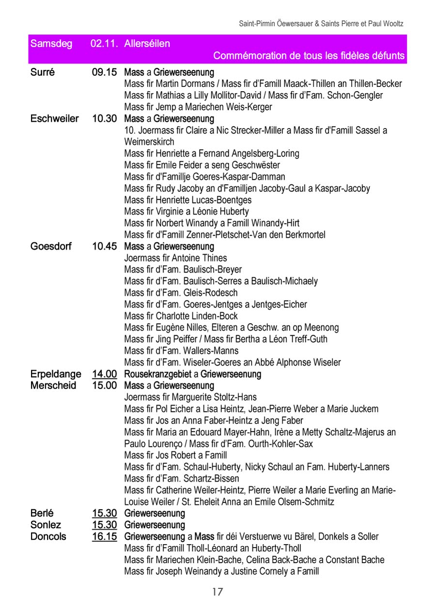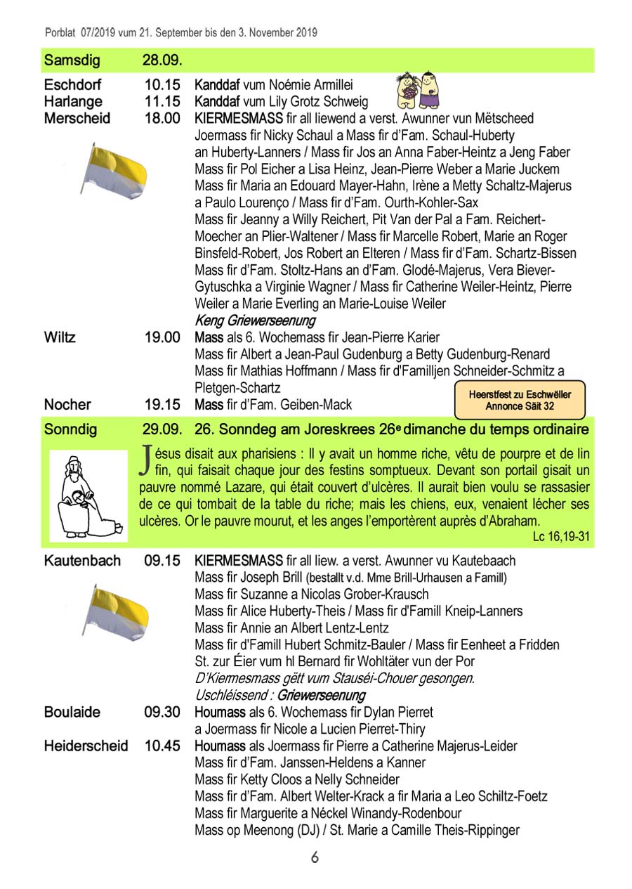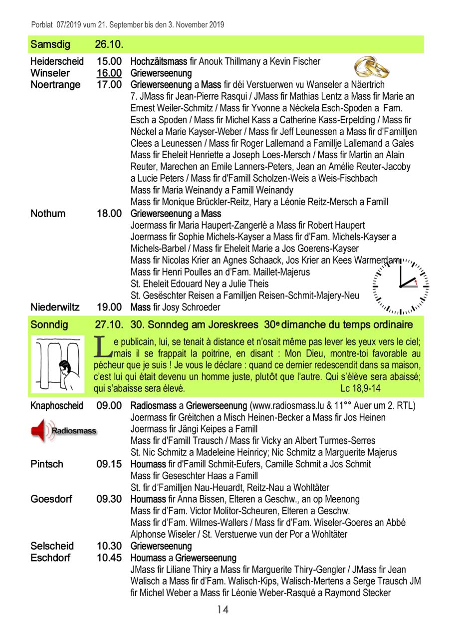 Horraire vun den Massen an Events
