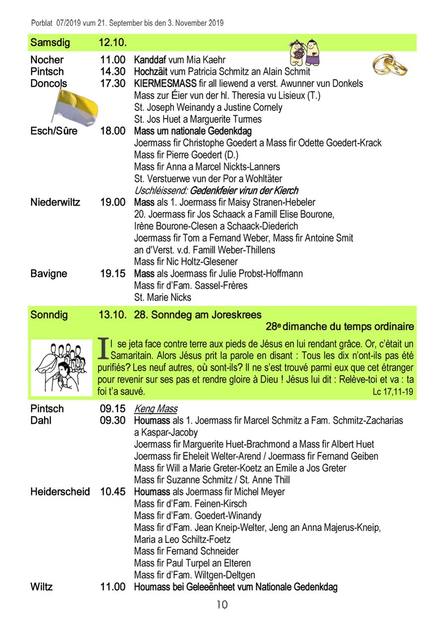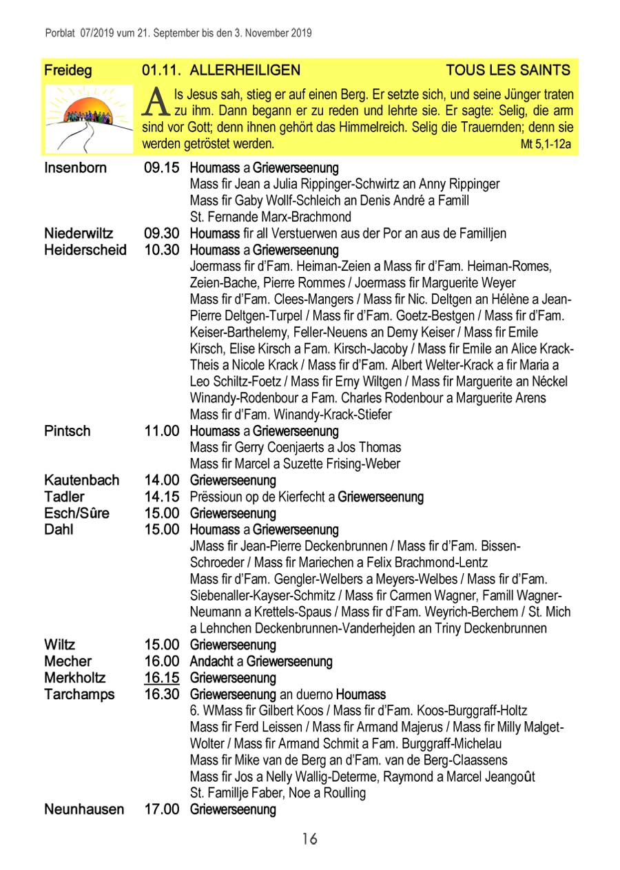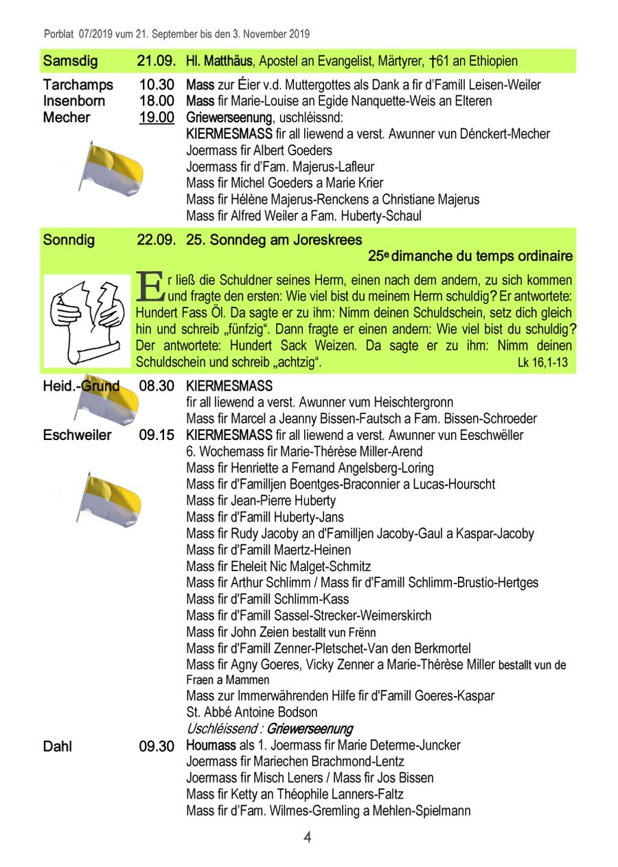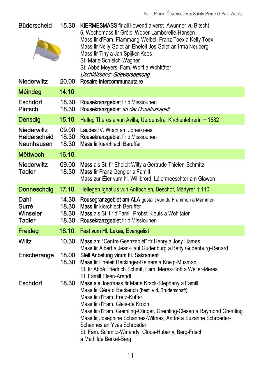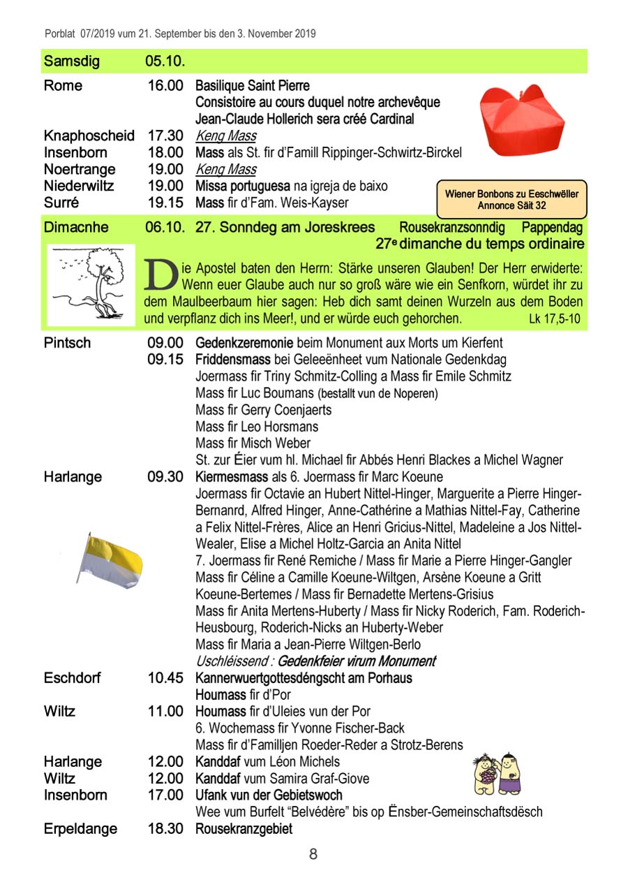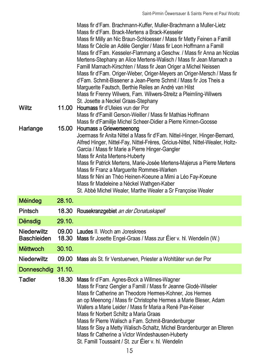 Horraire vun den Massen an Events