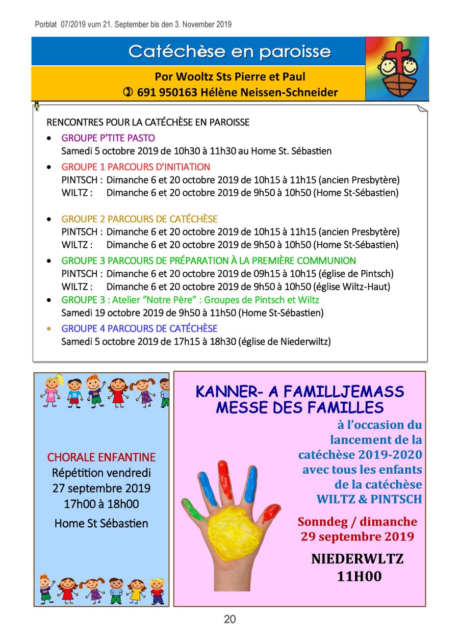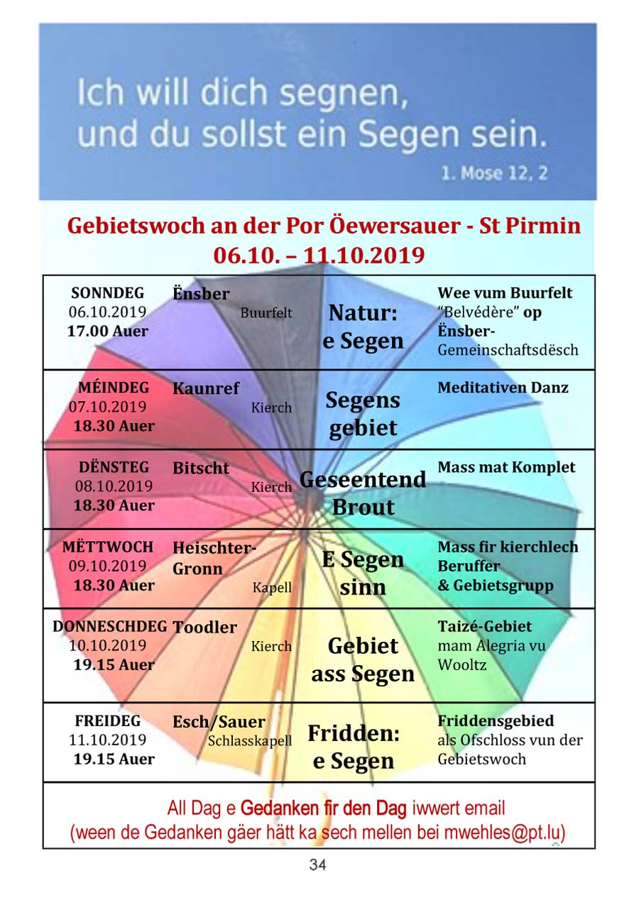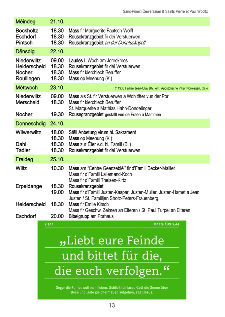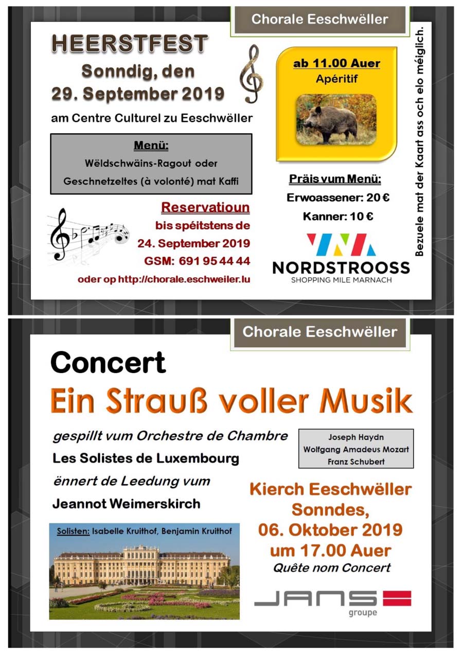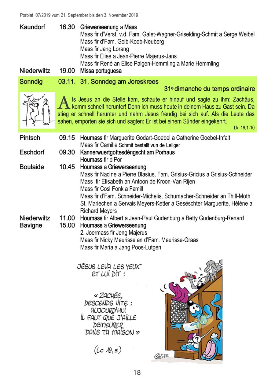 Horraire vun den Massen an Events
