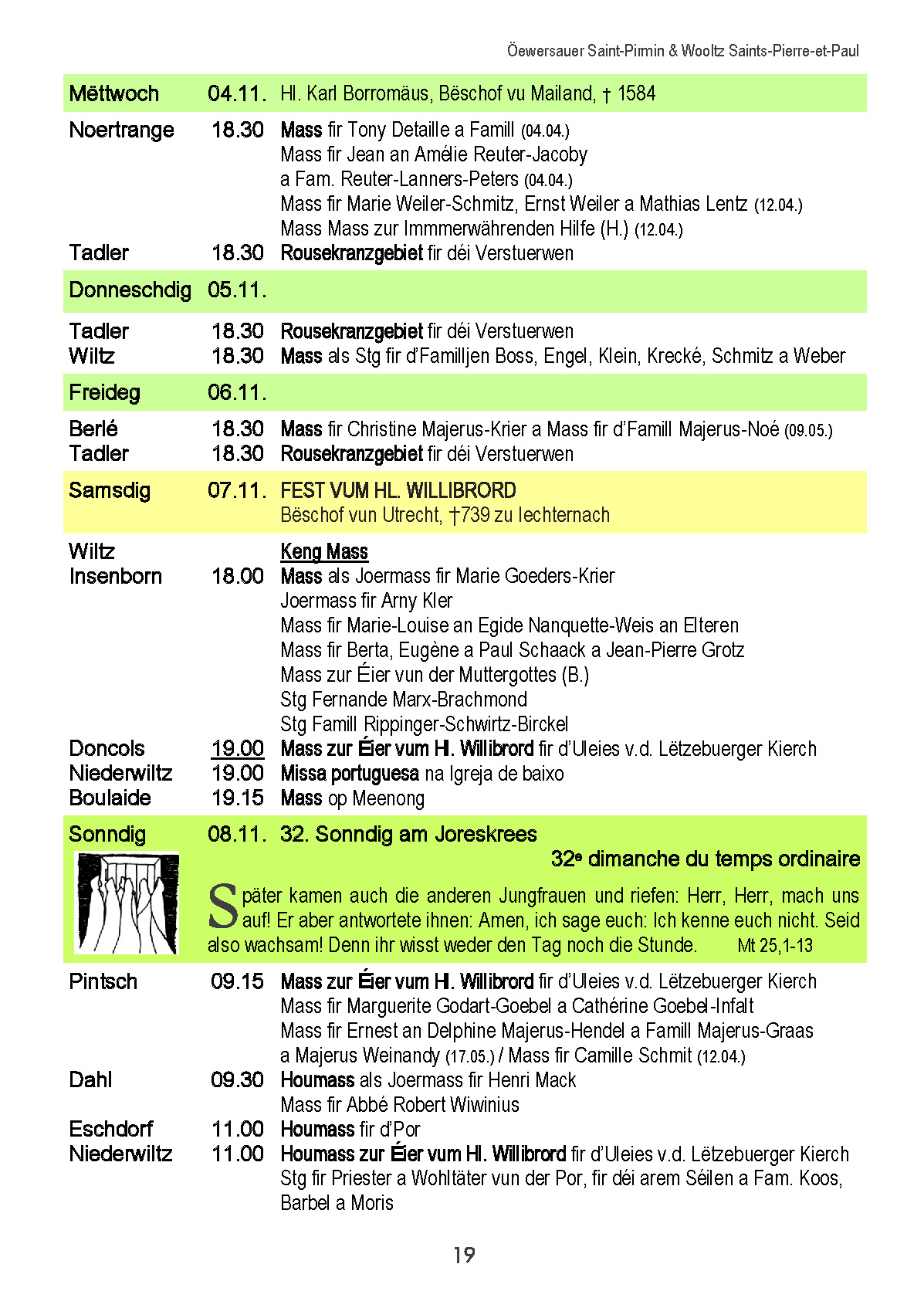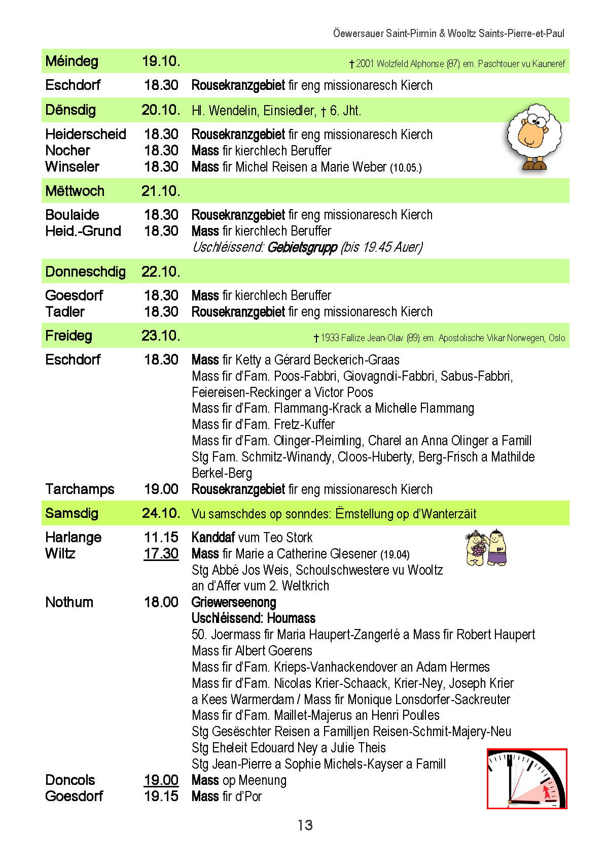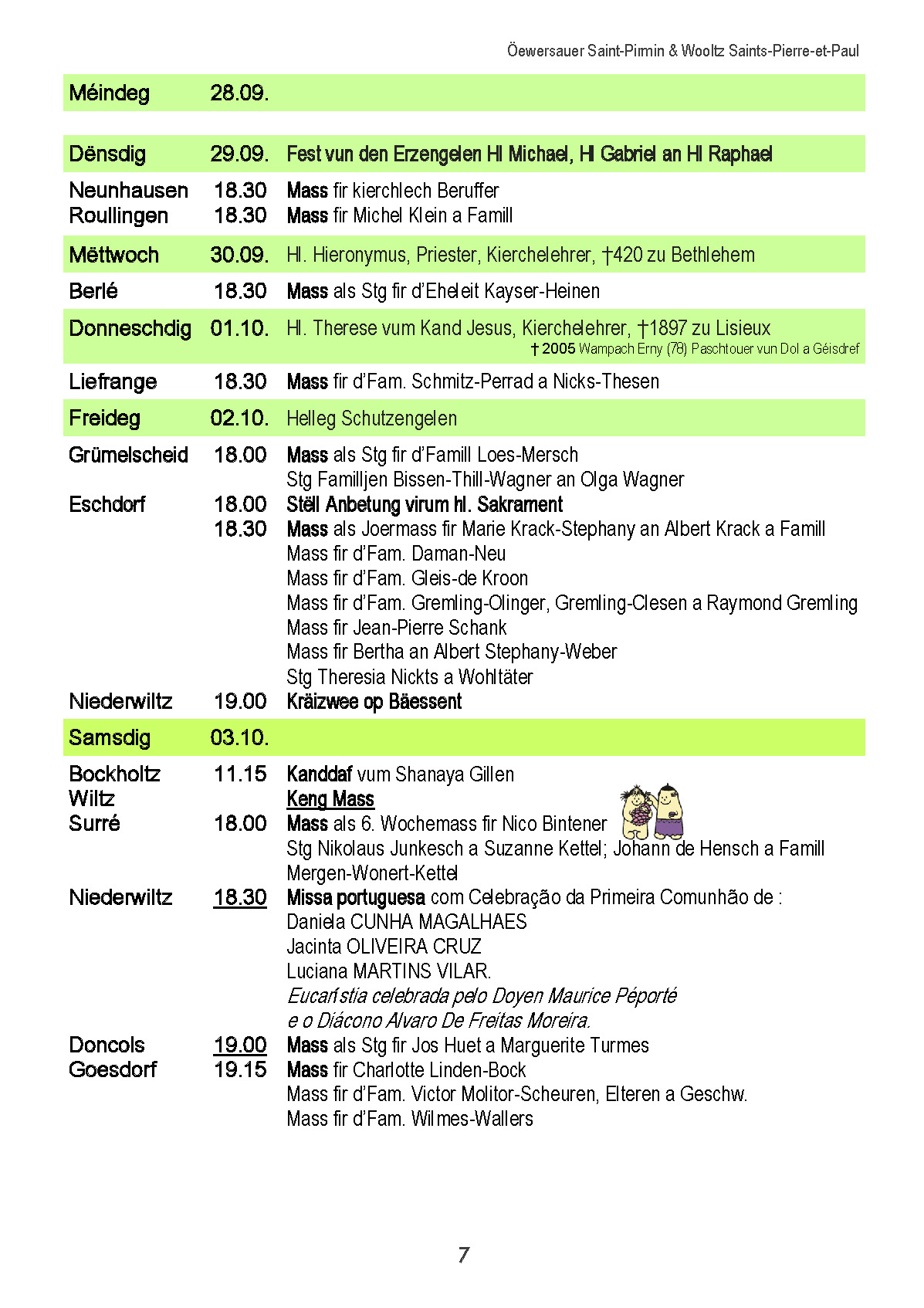 Horraire vun den Massen an Events