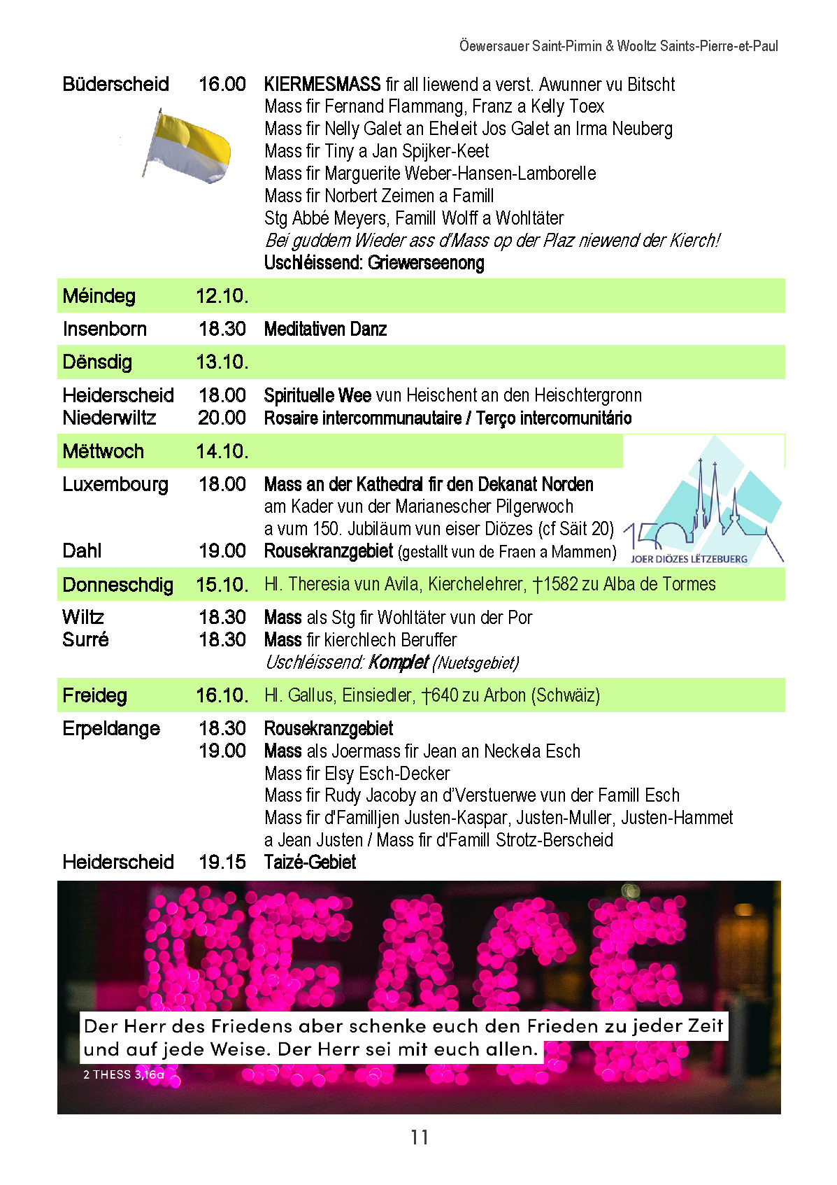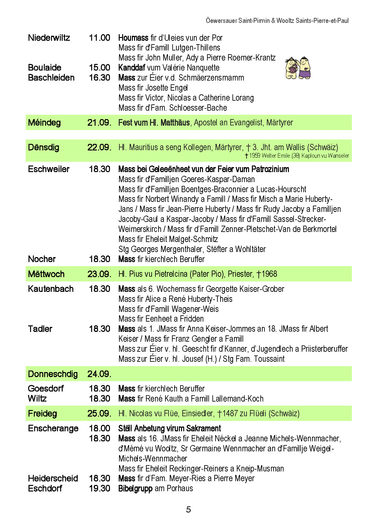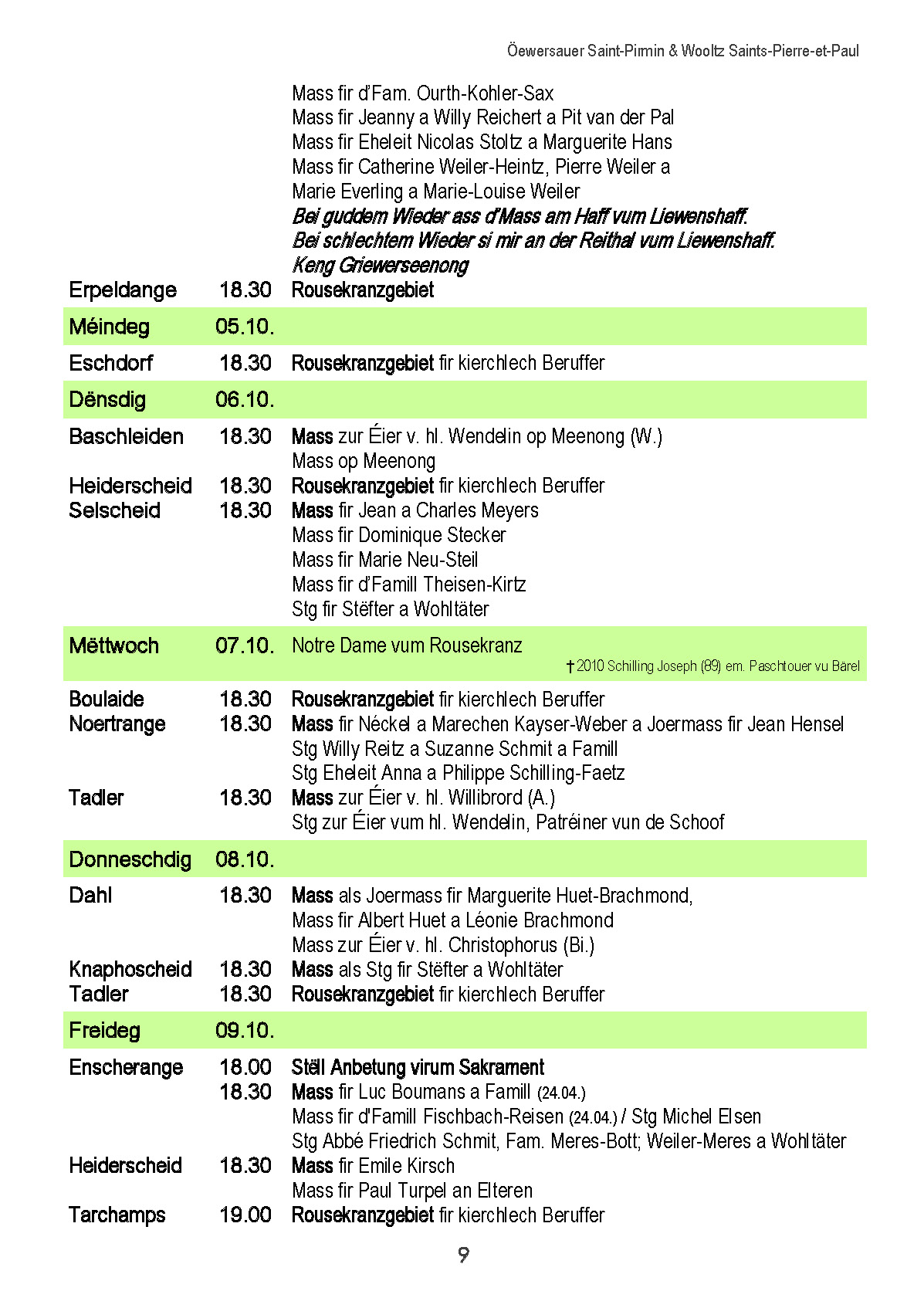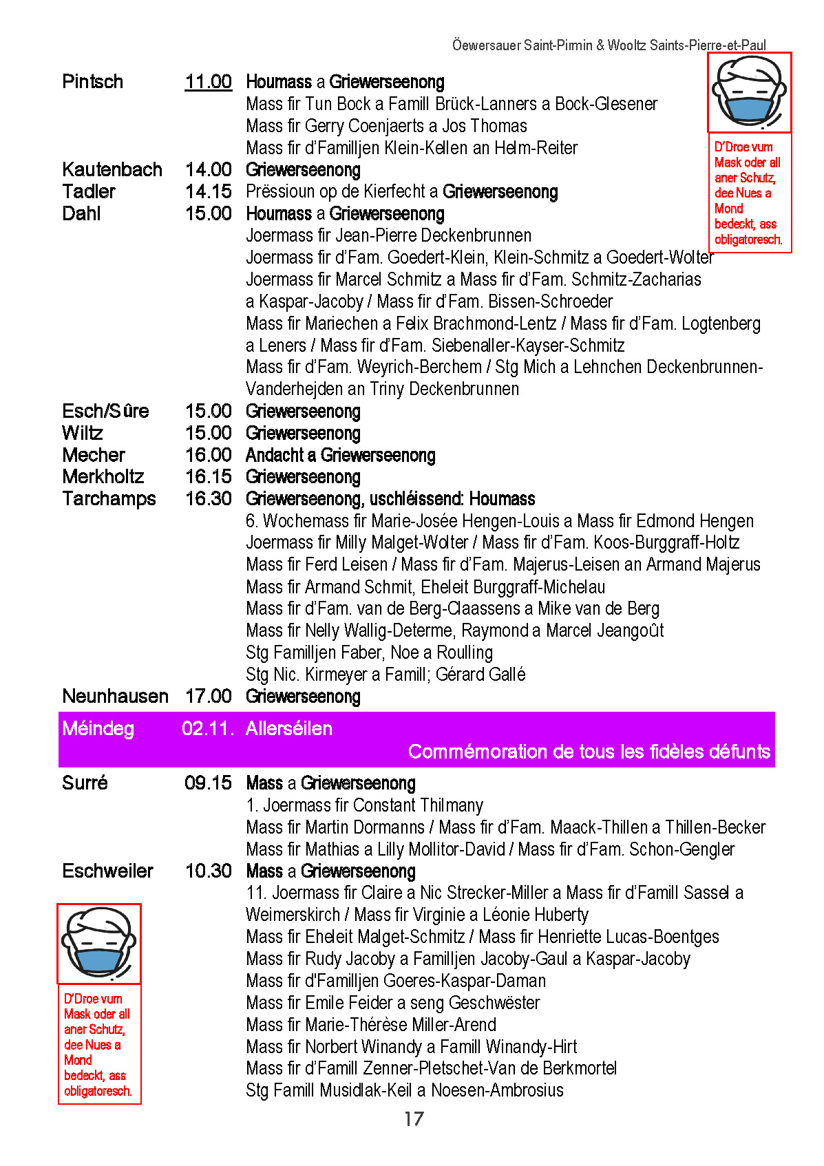 Horraire vun den Massen an Events
