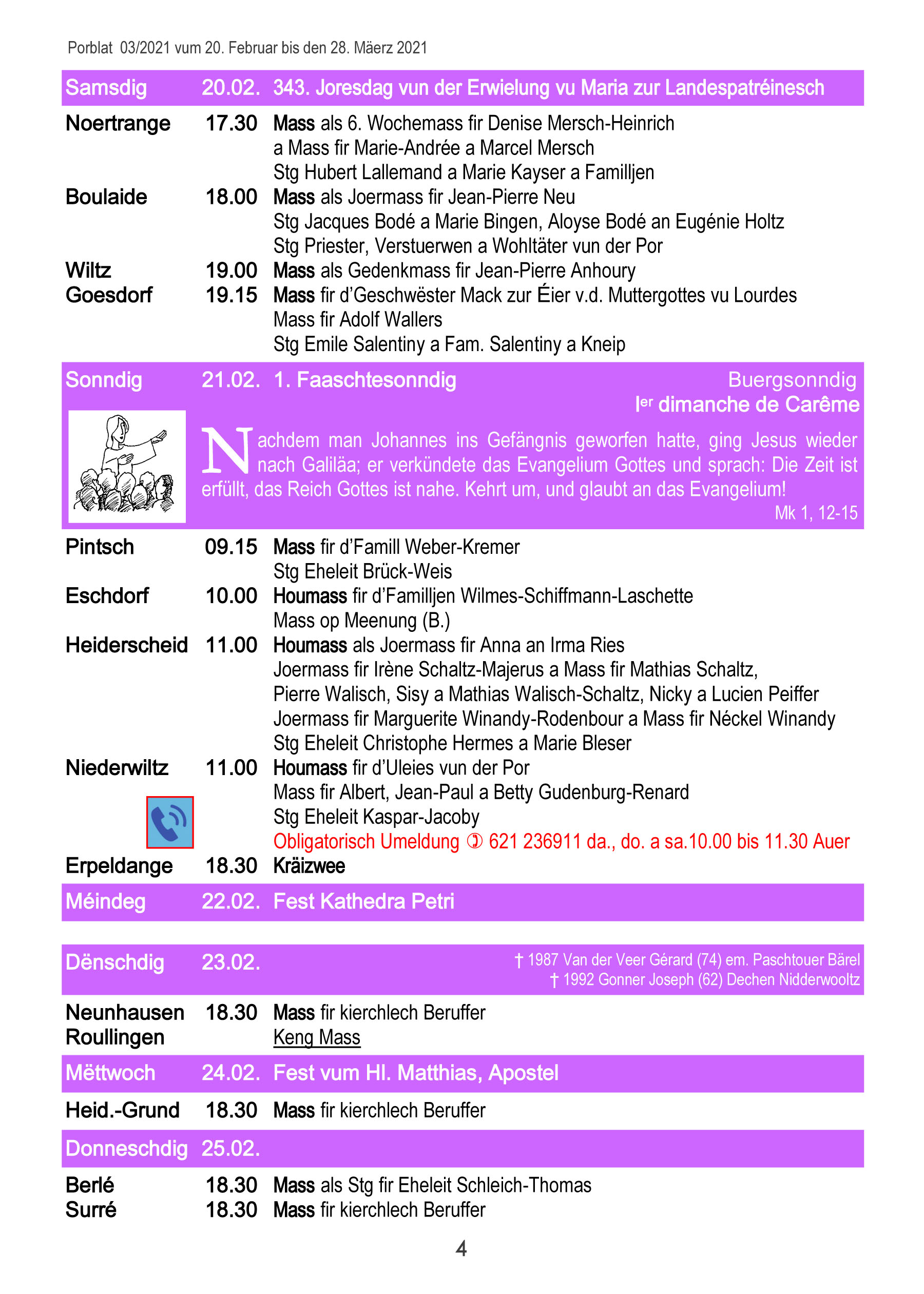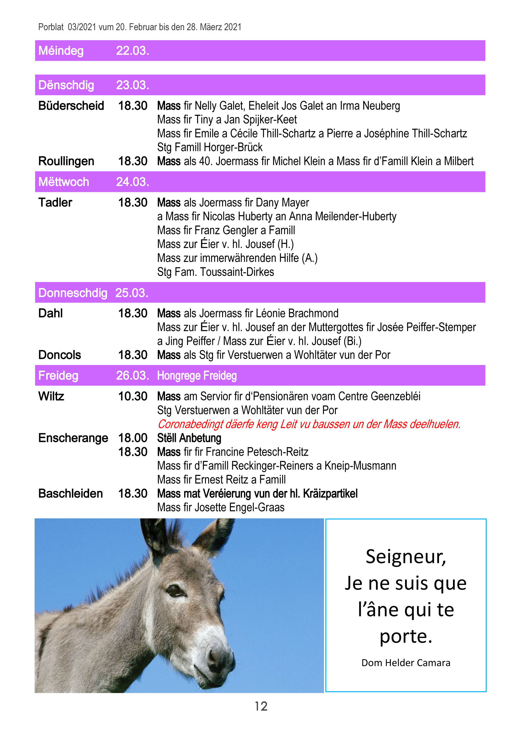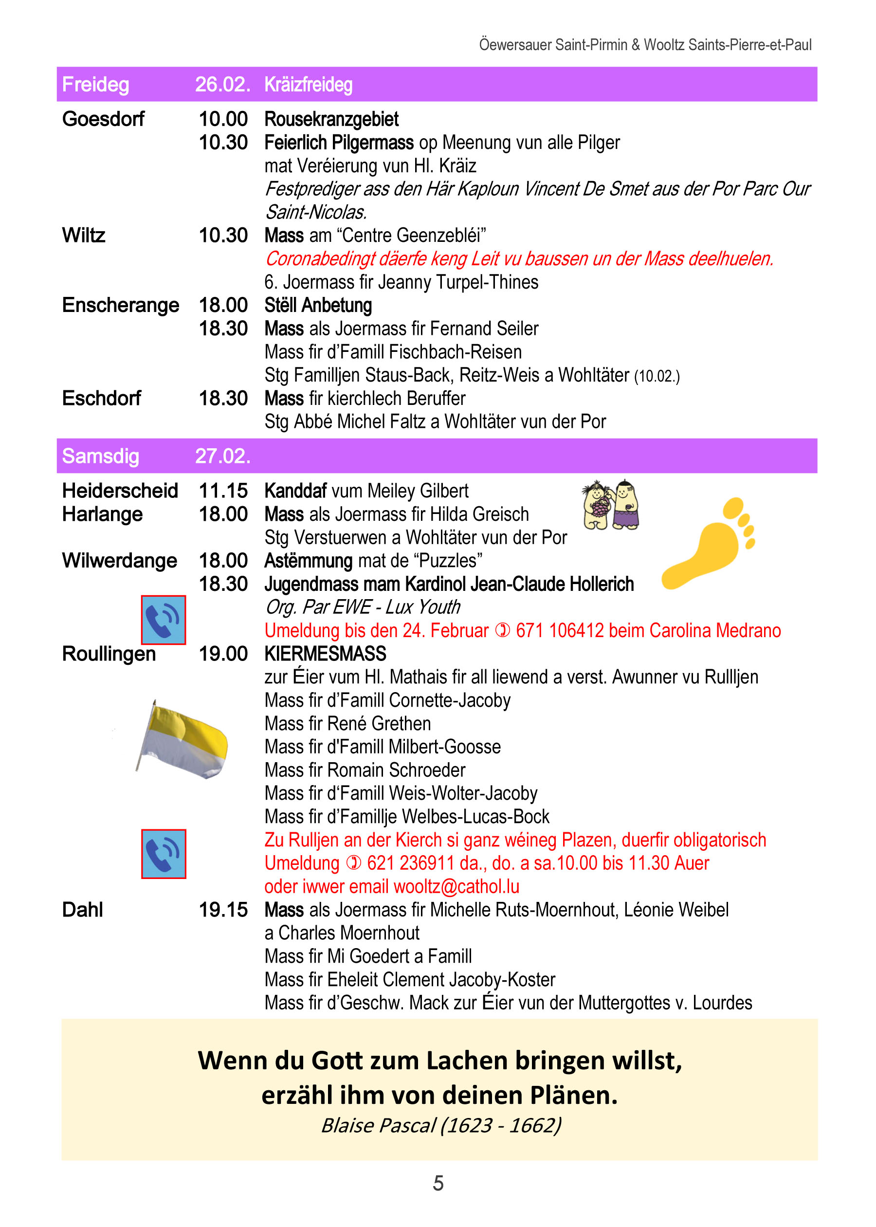 Horraire vun den Massen an Events