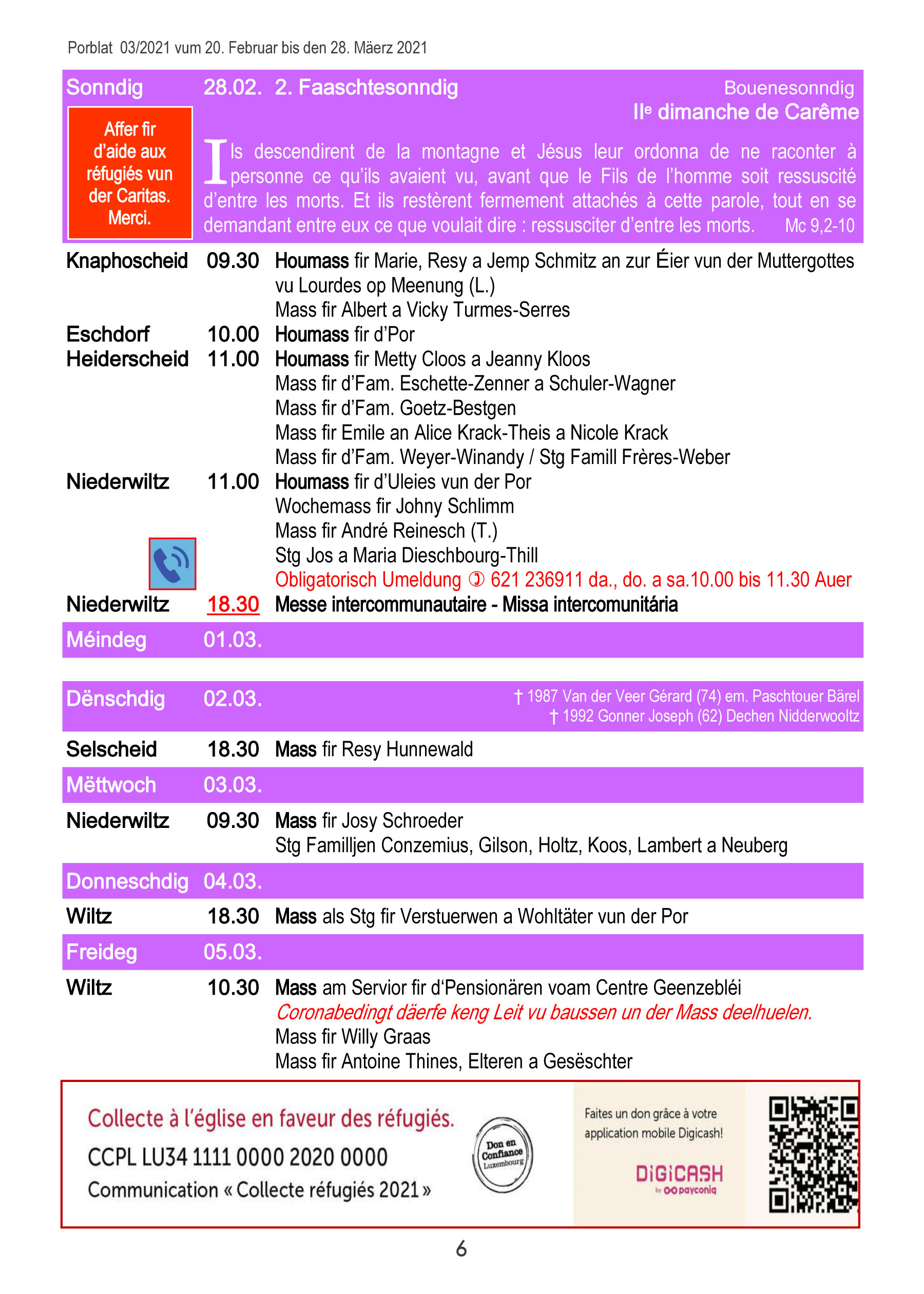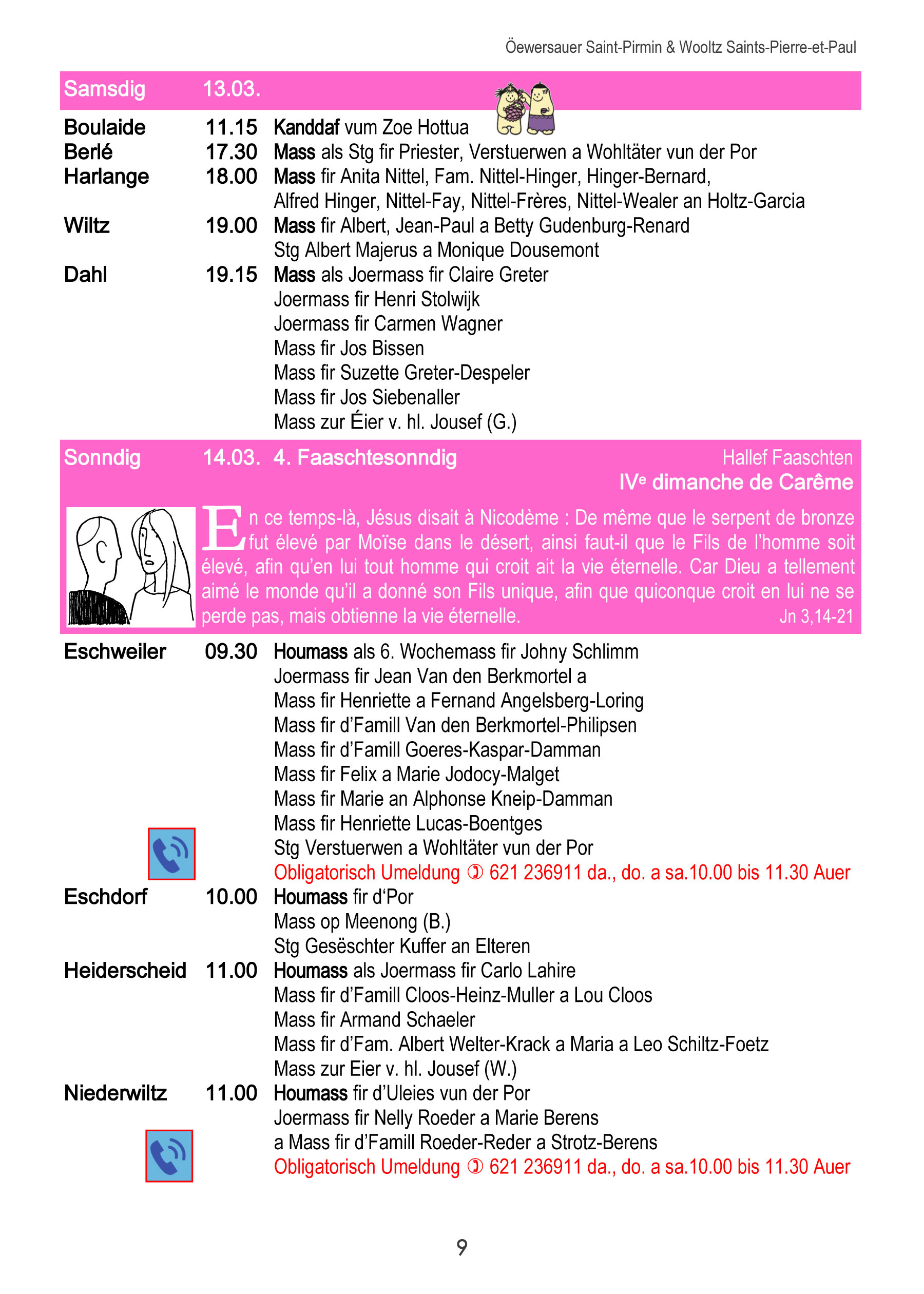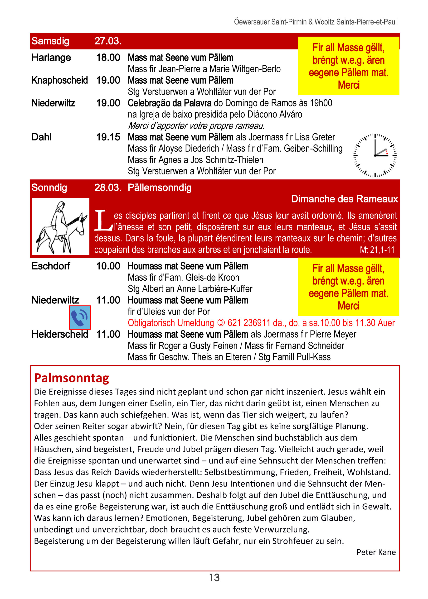 Horraire vun den Massen an Events
