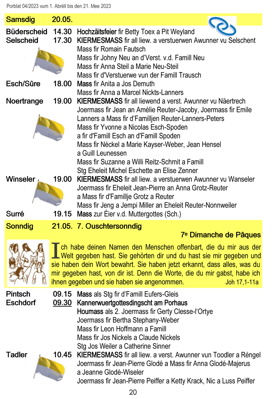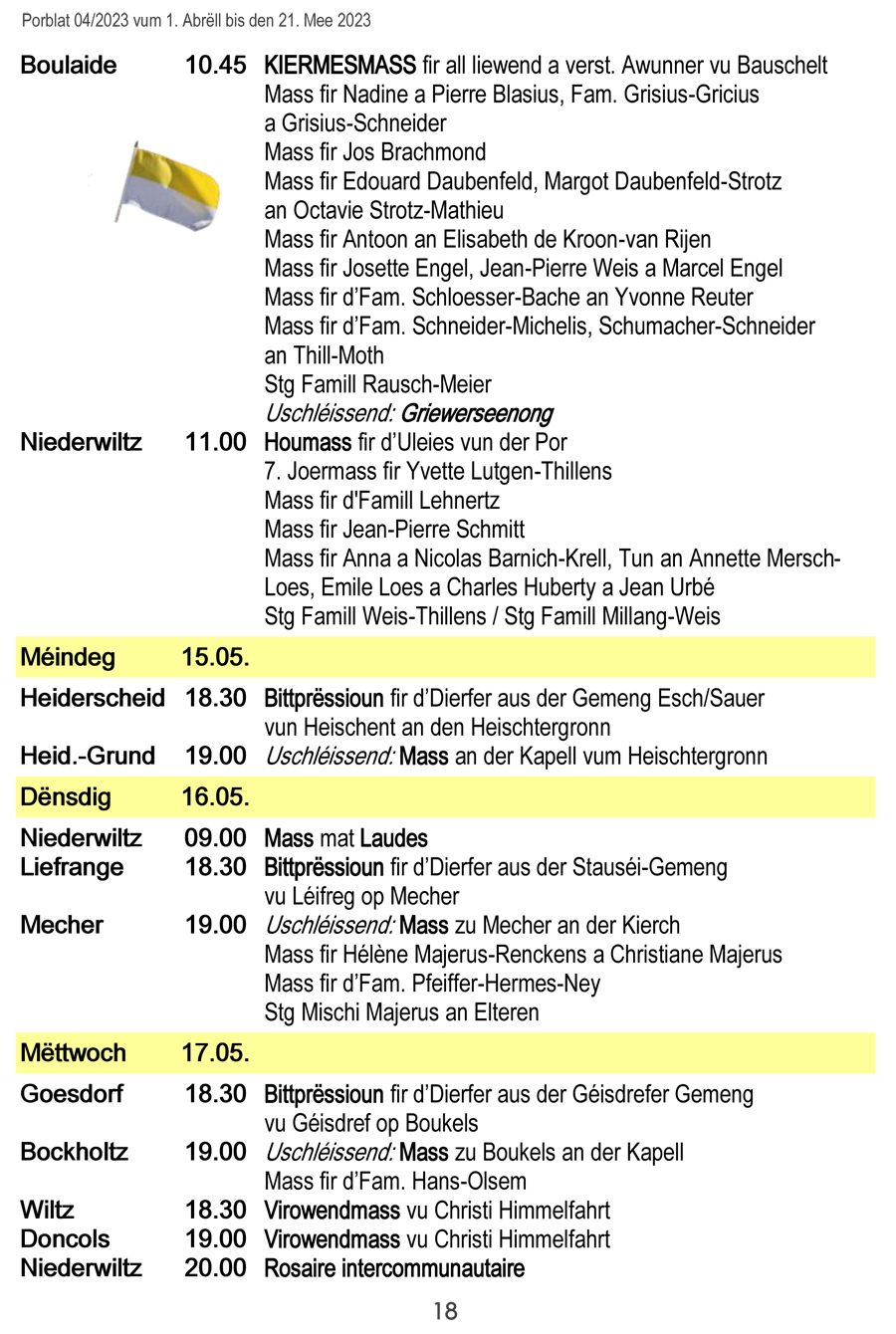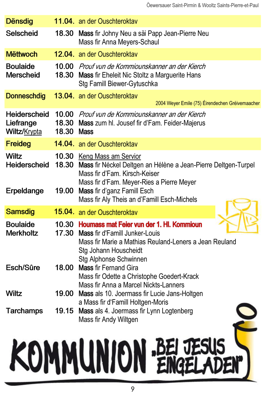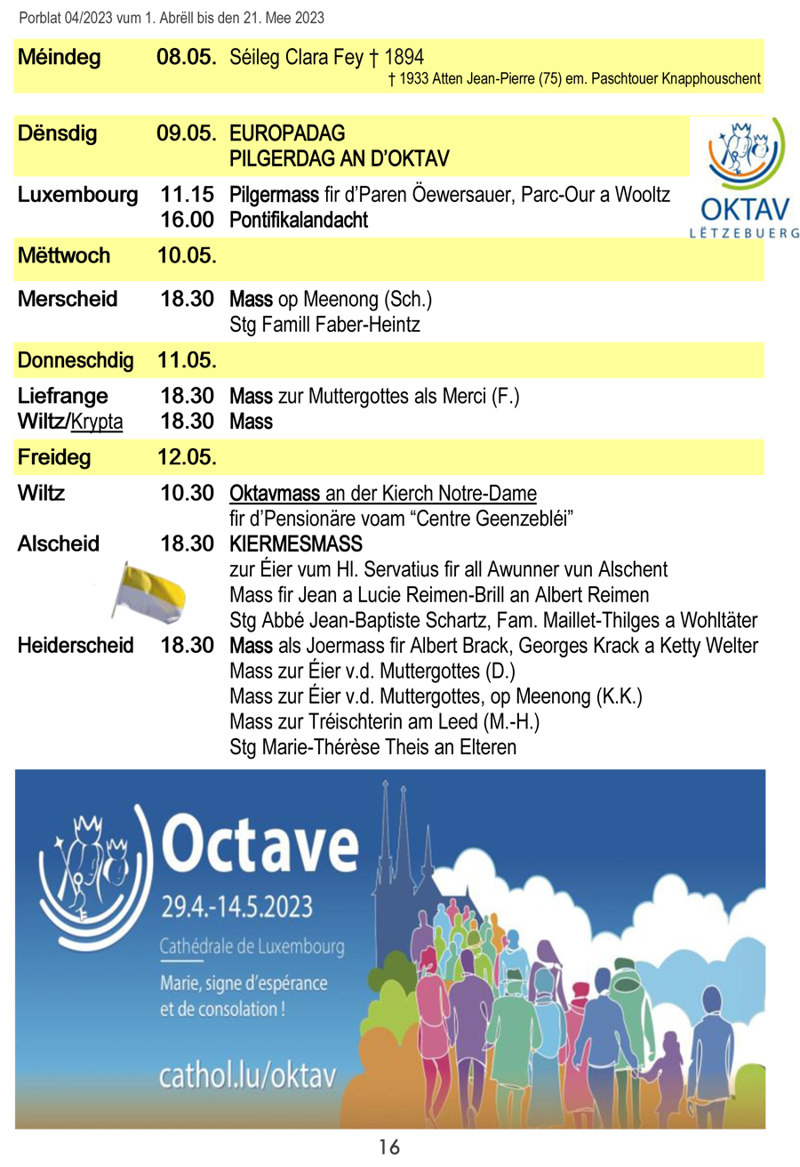 Horraire vun den Massen an Events