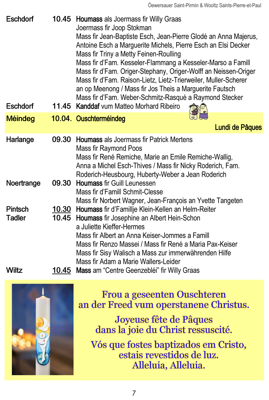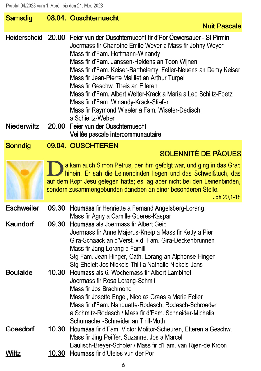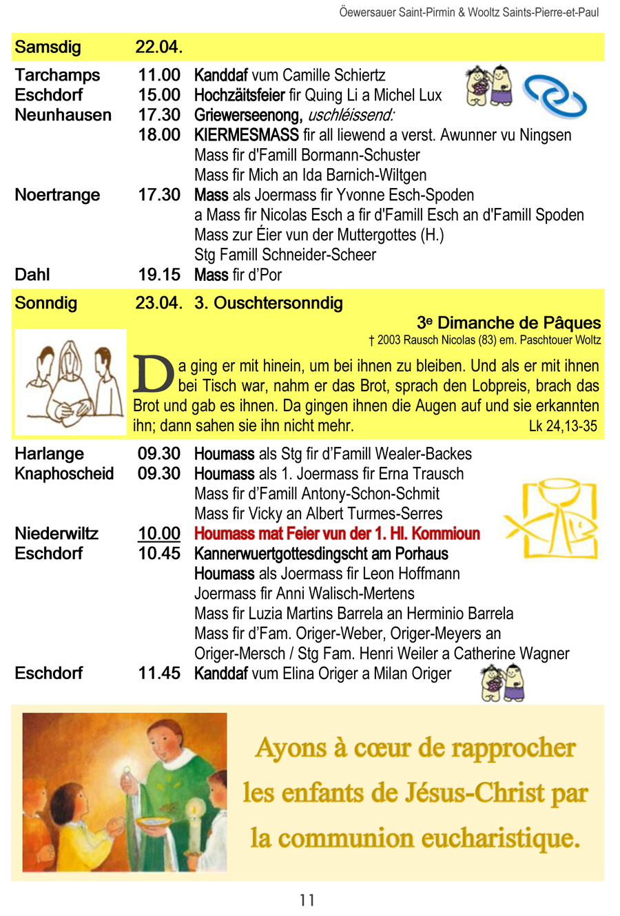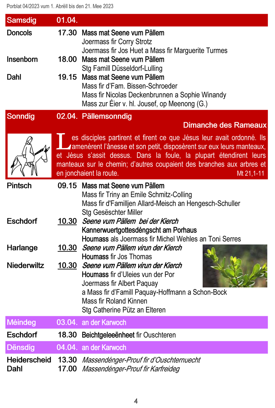 Horraire vun den Massen an Events