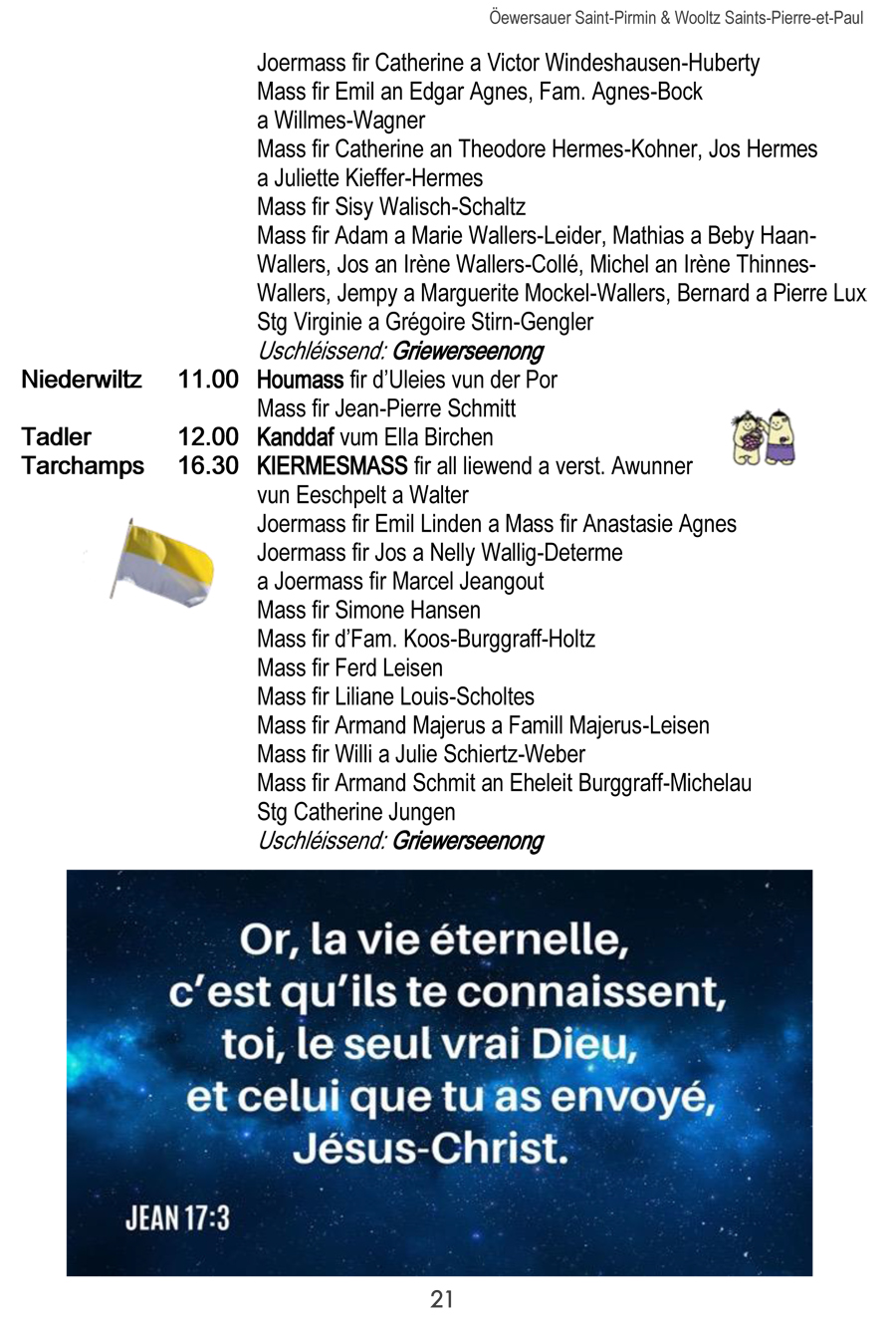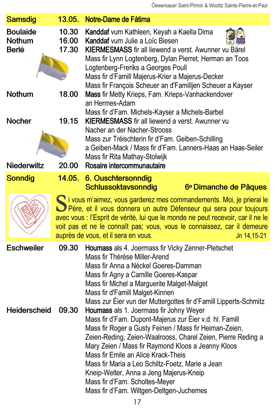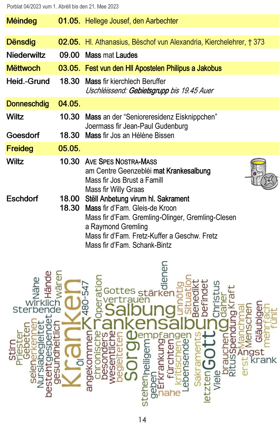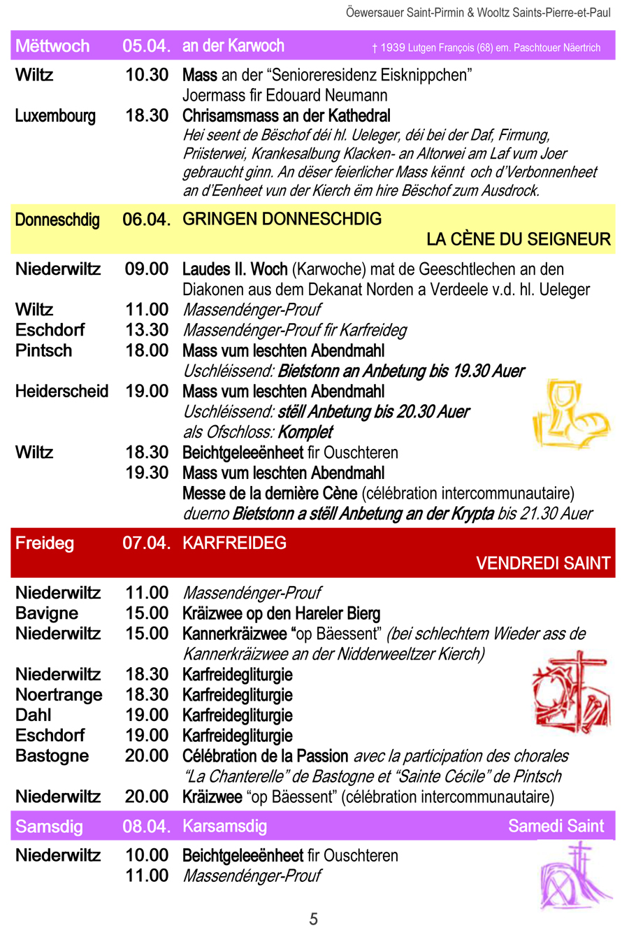 Horraire vun den Massen an Events