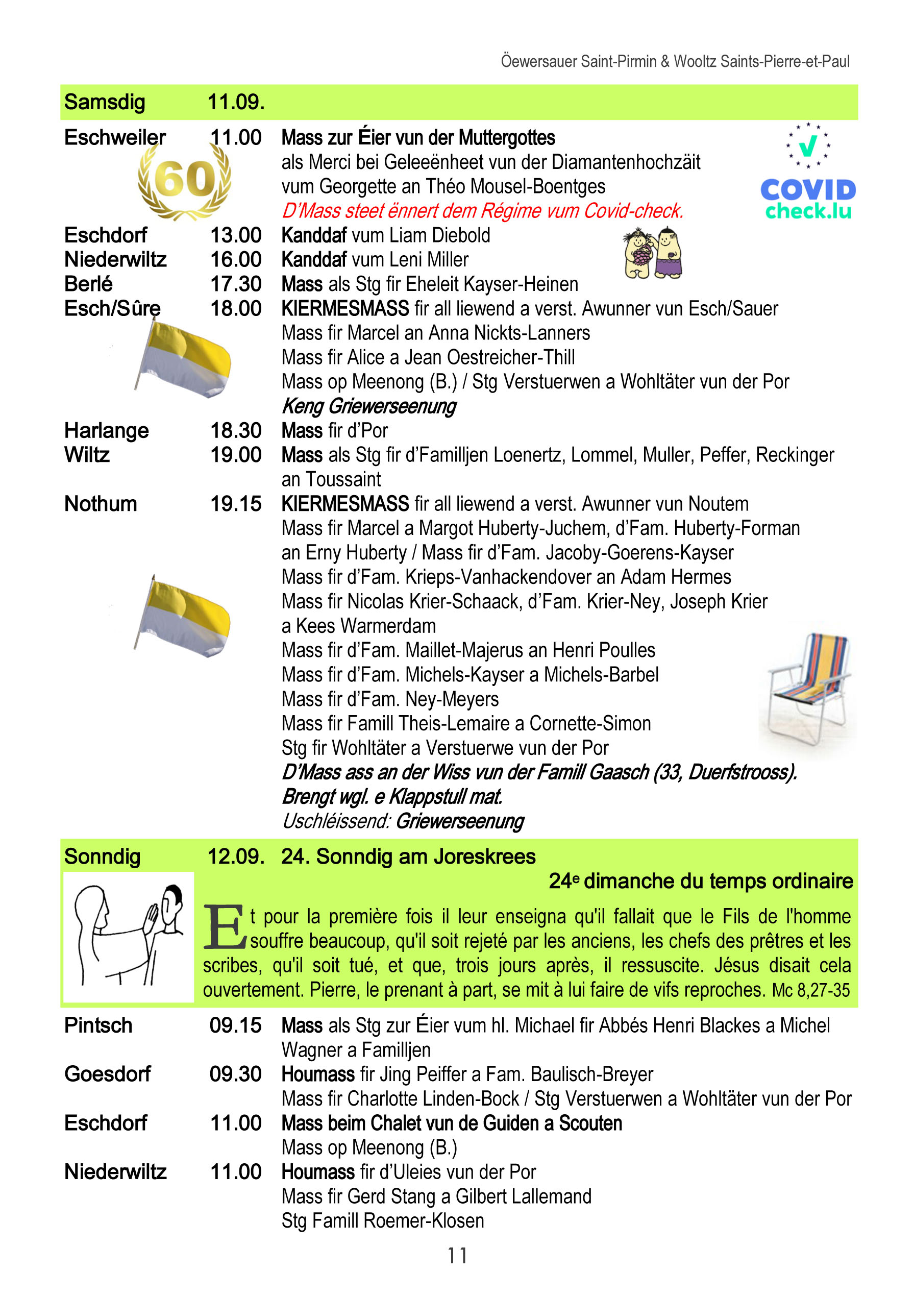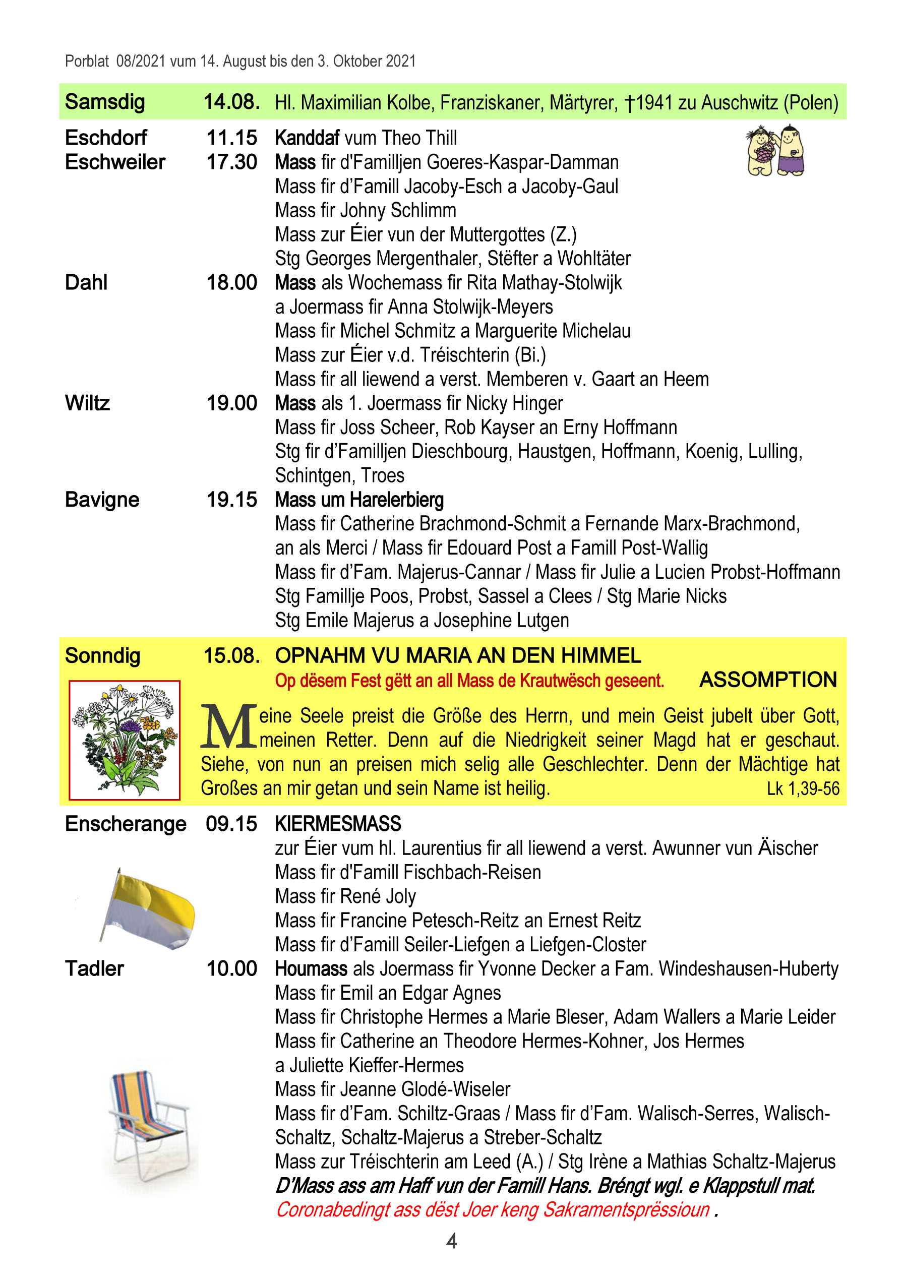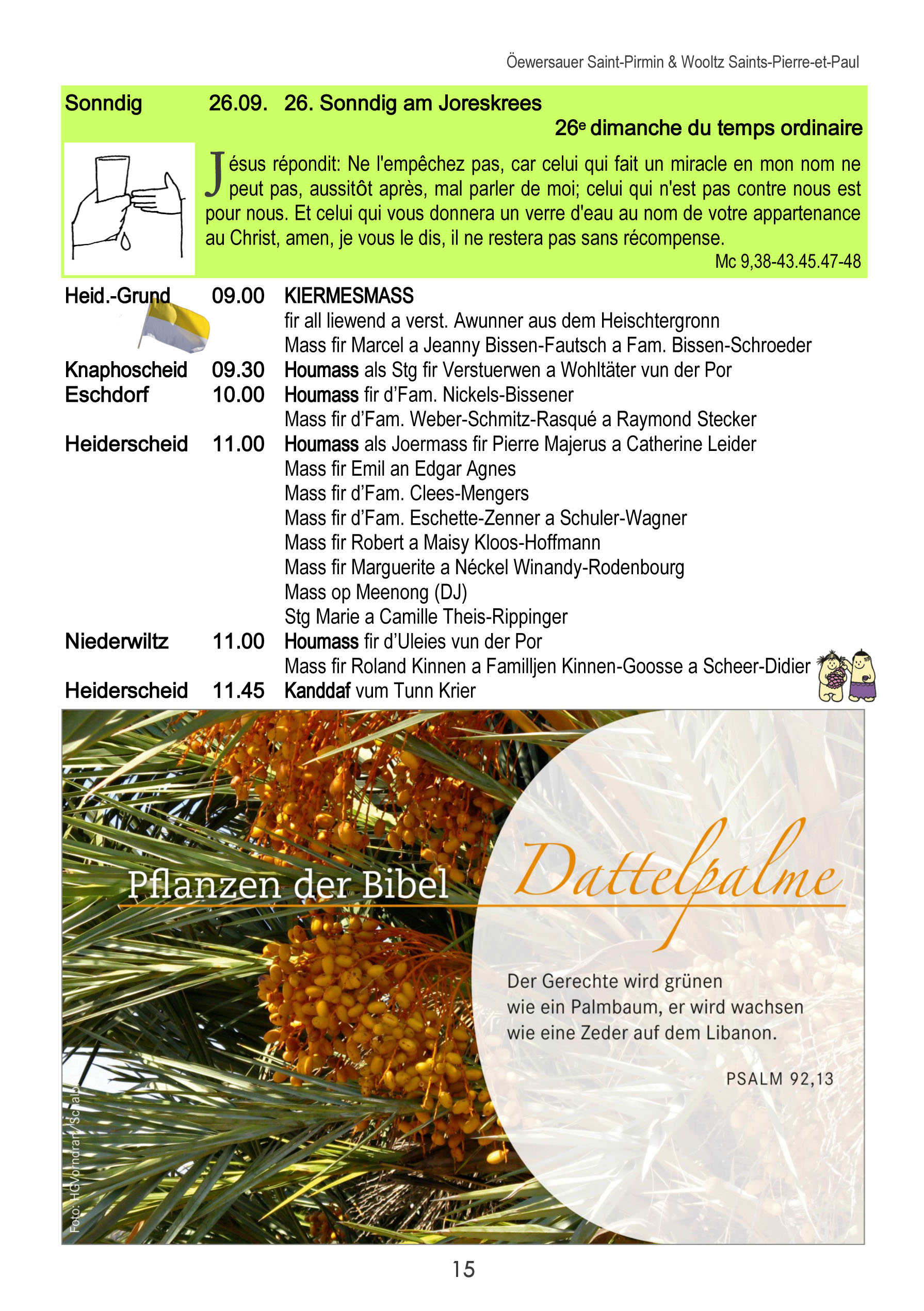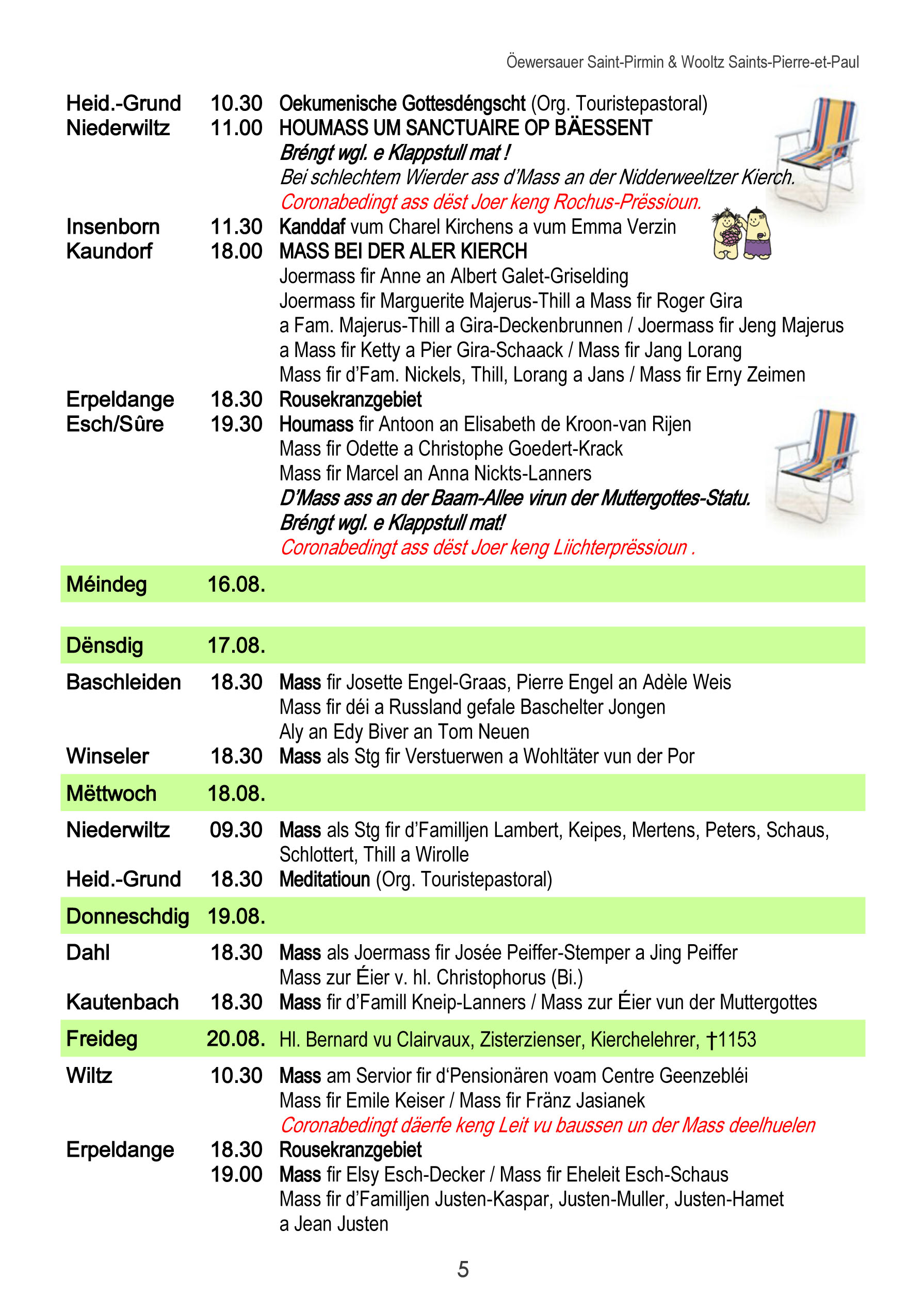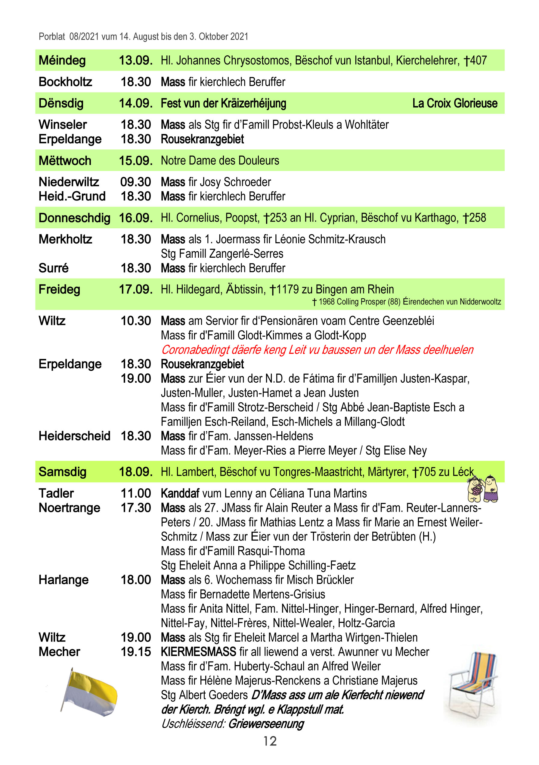 Horraire vun den Massen an Events
