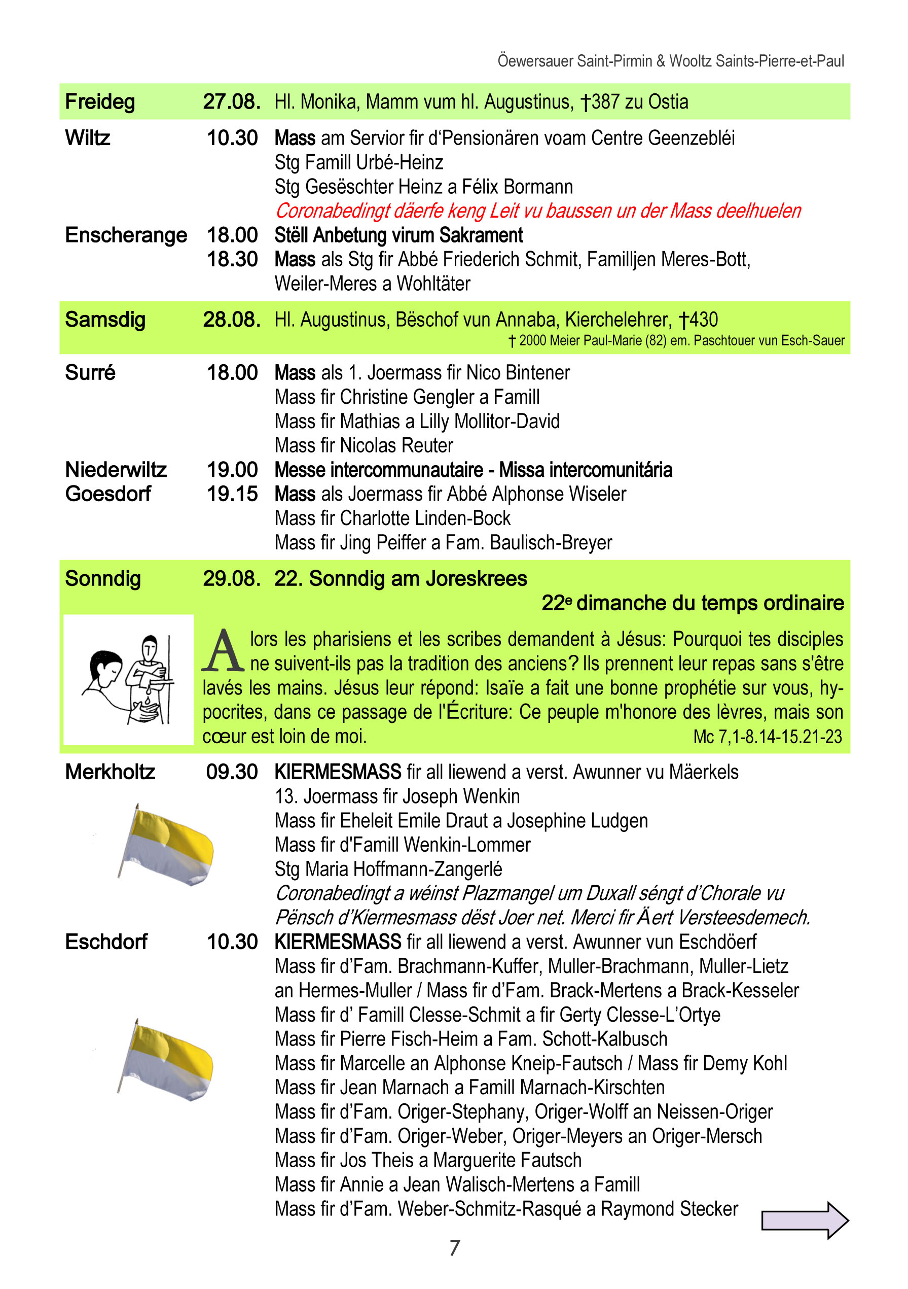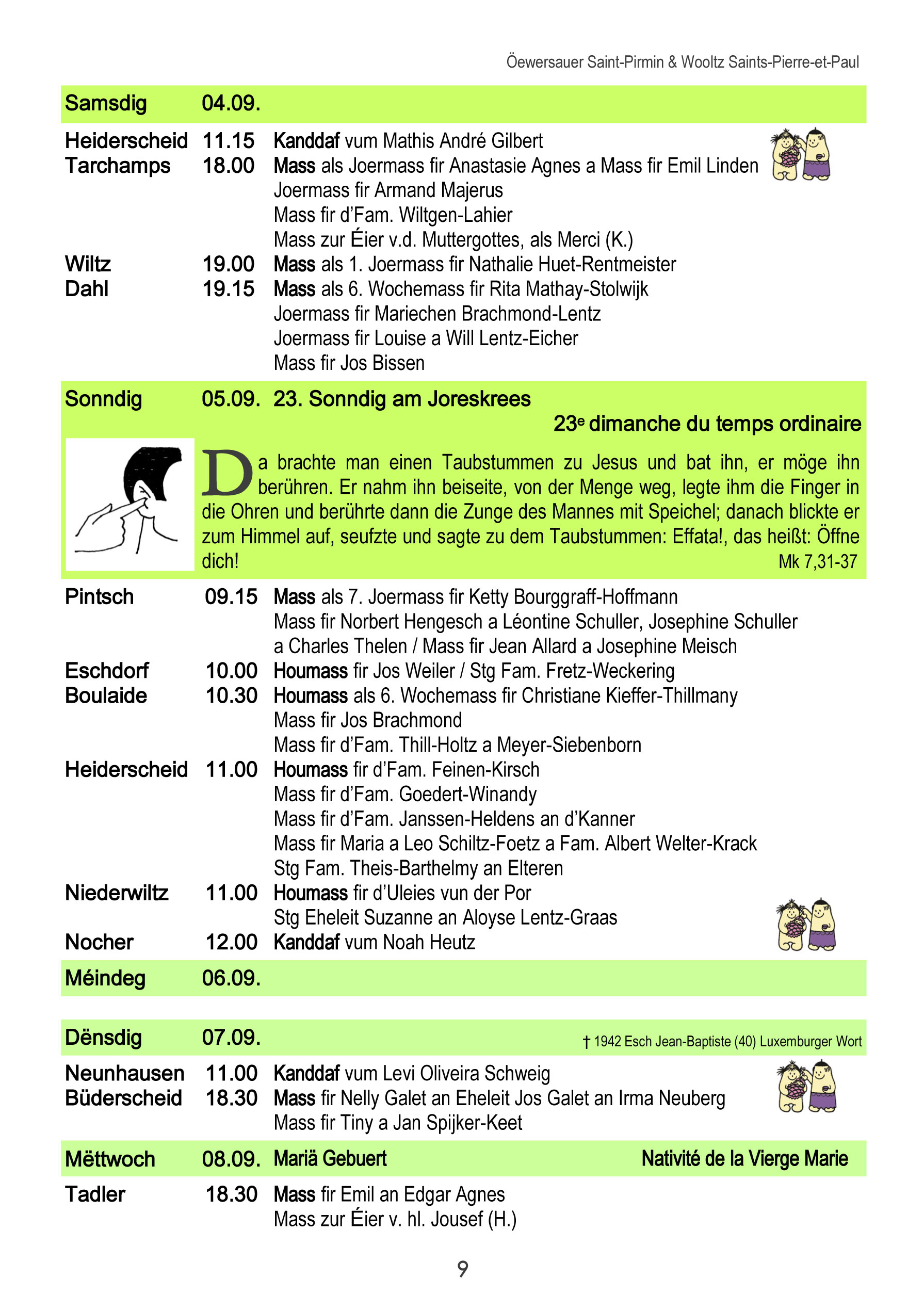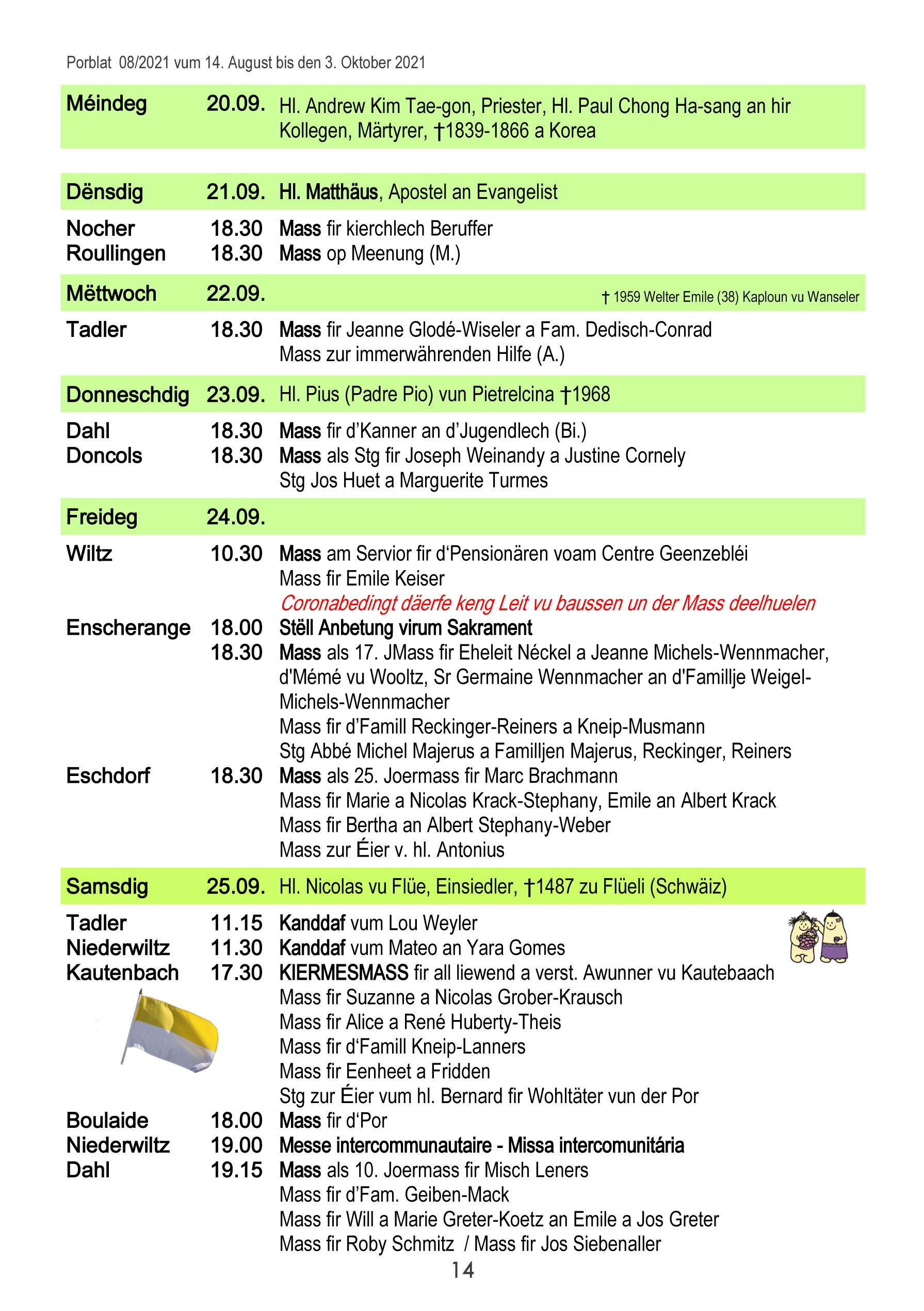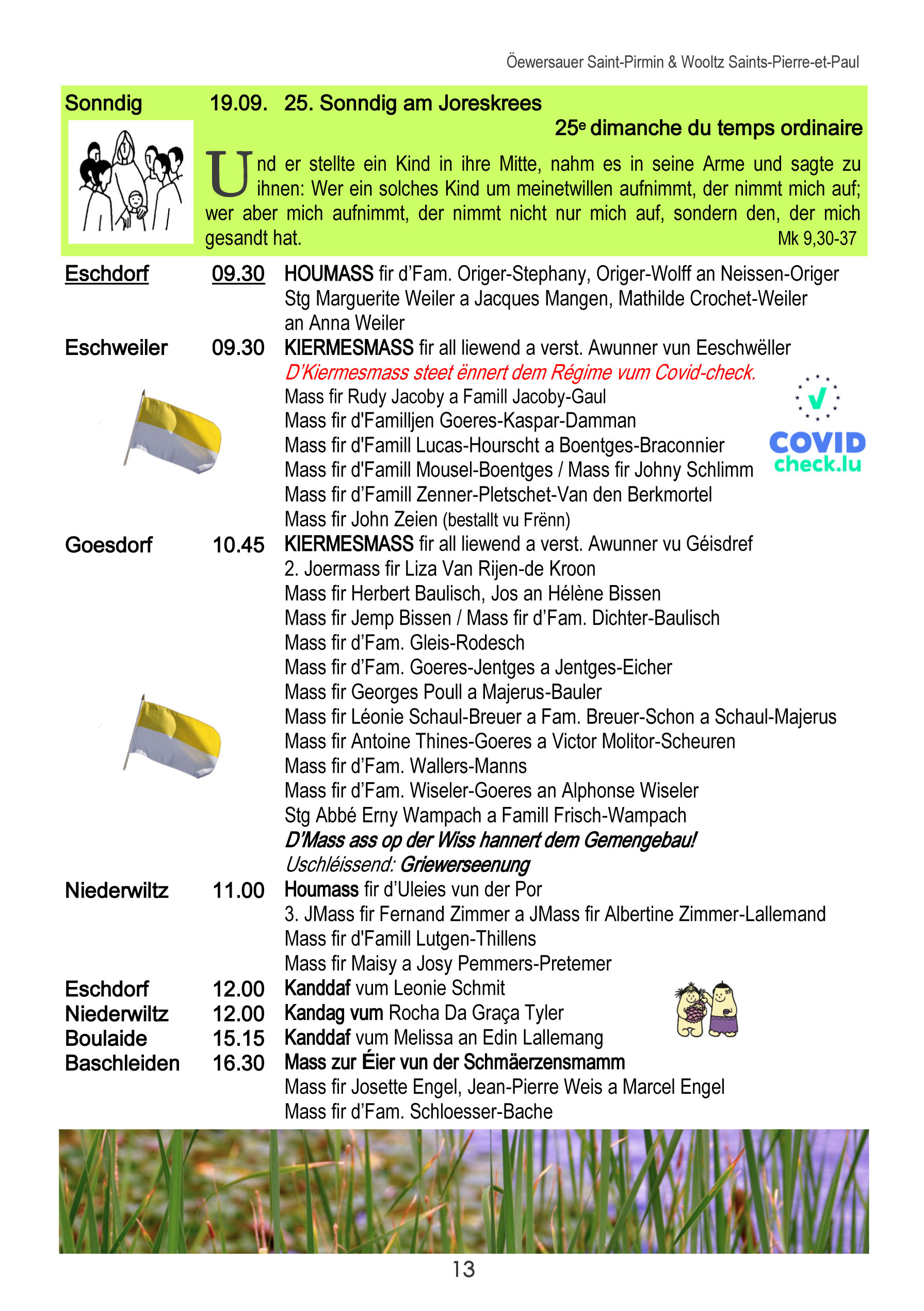 Horraire vun den Massen an Events