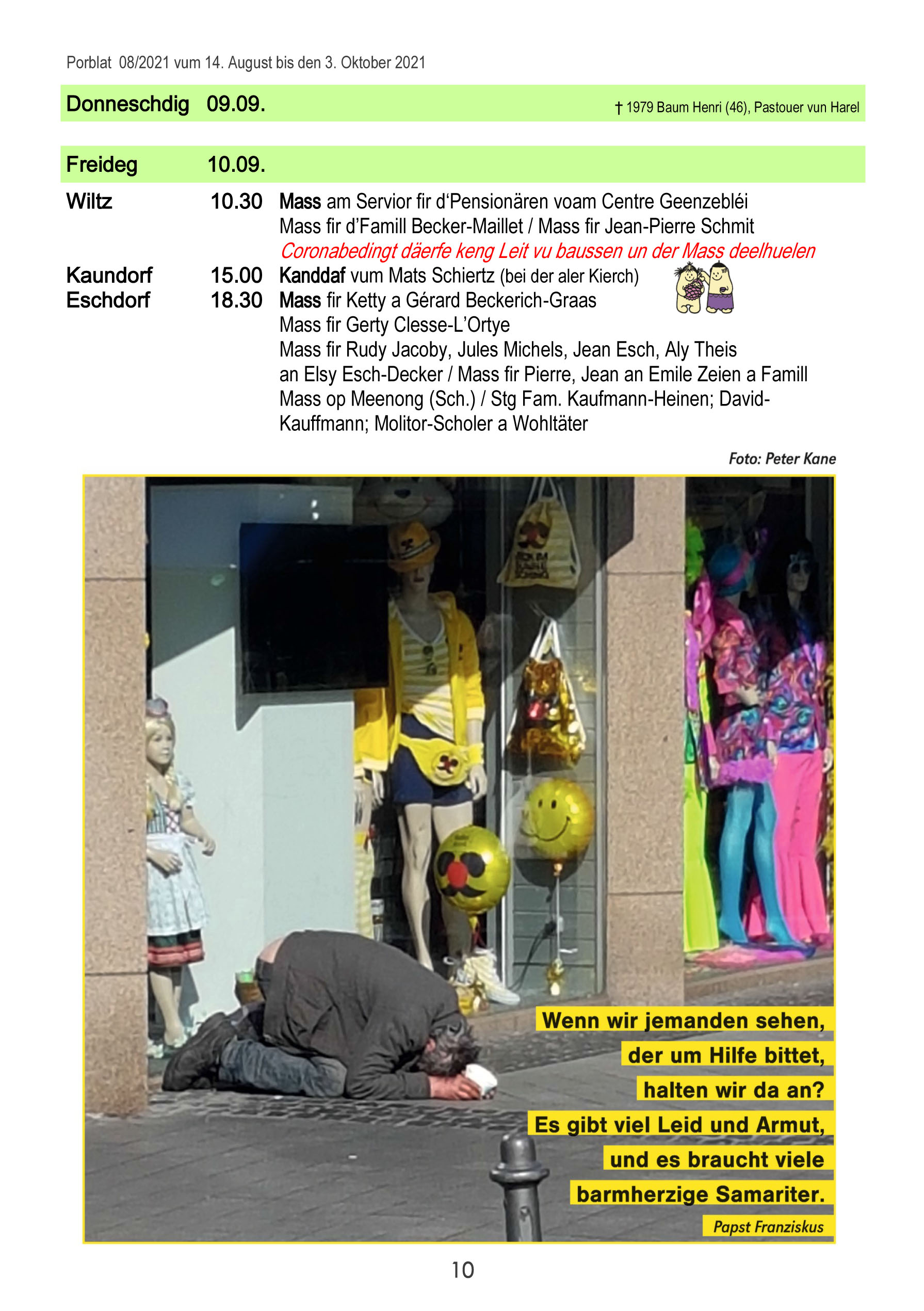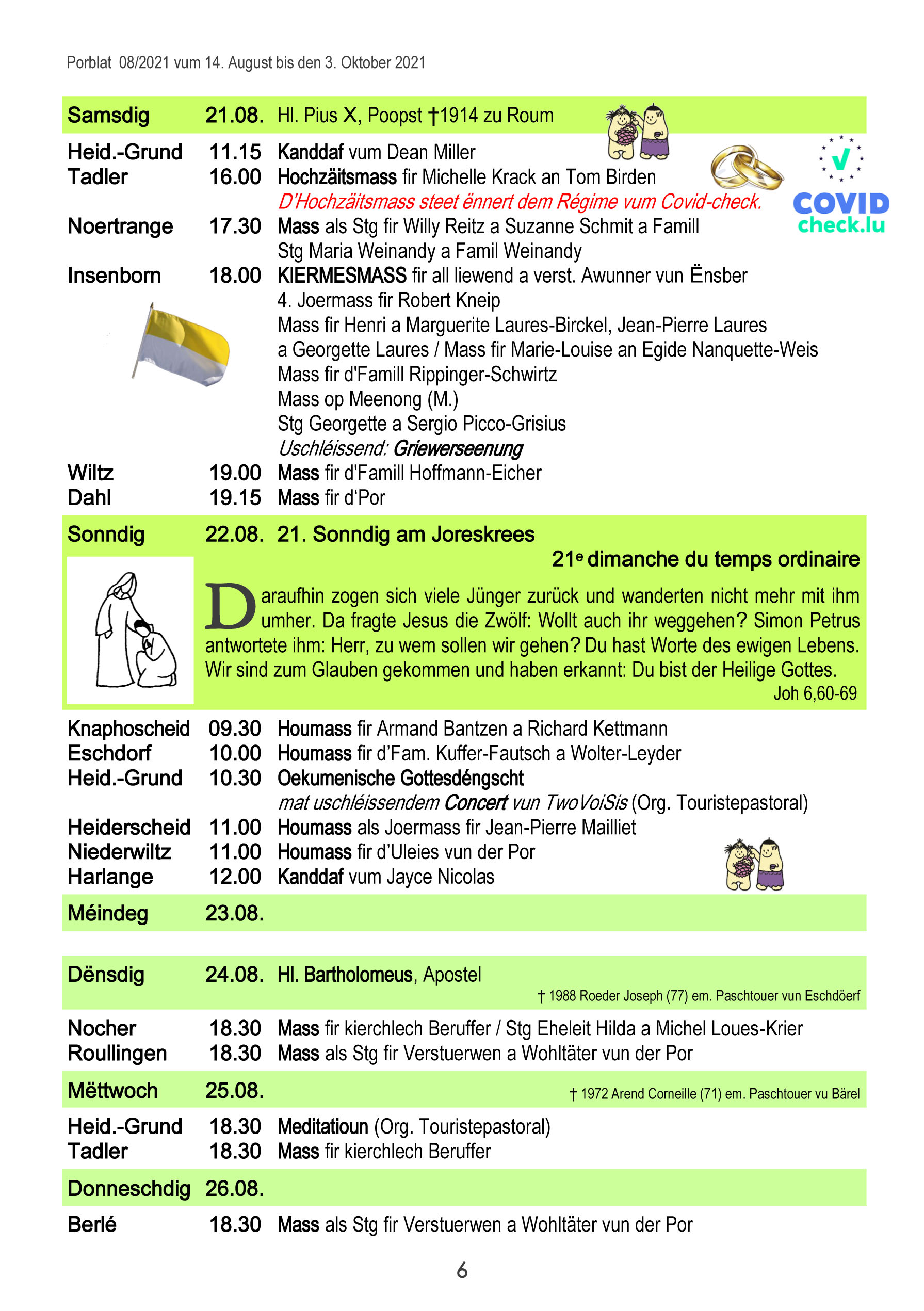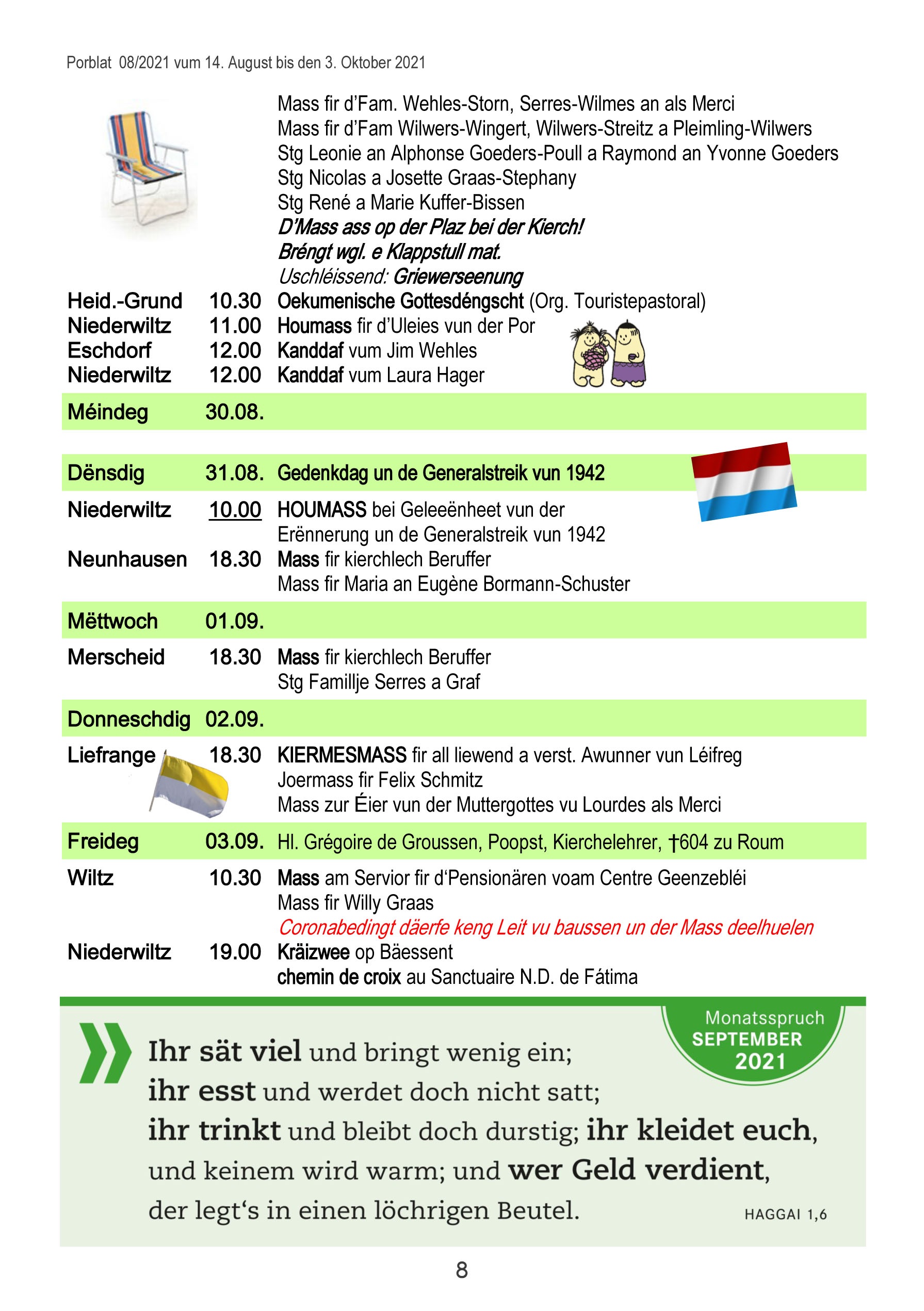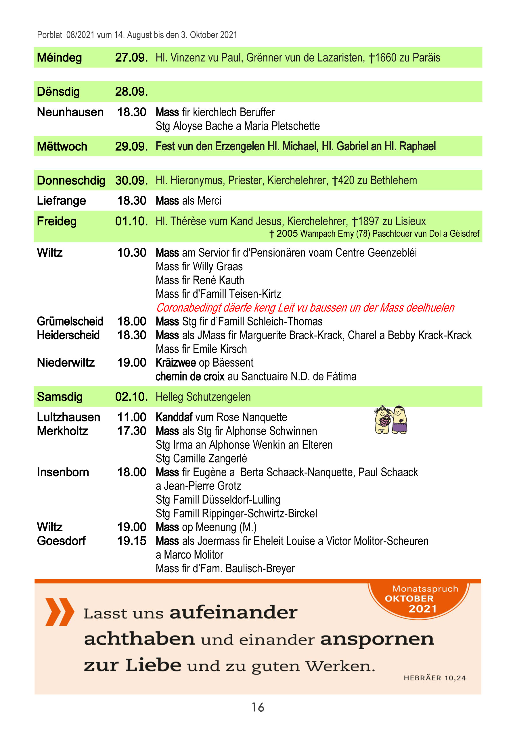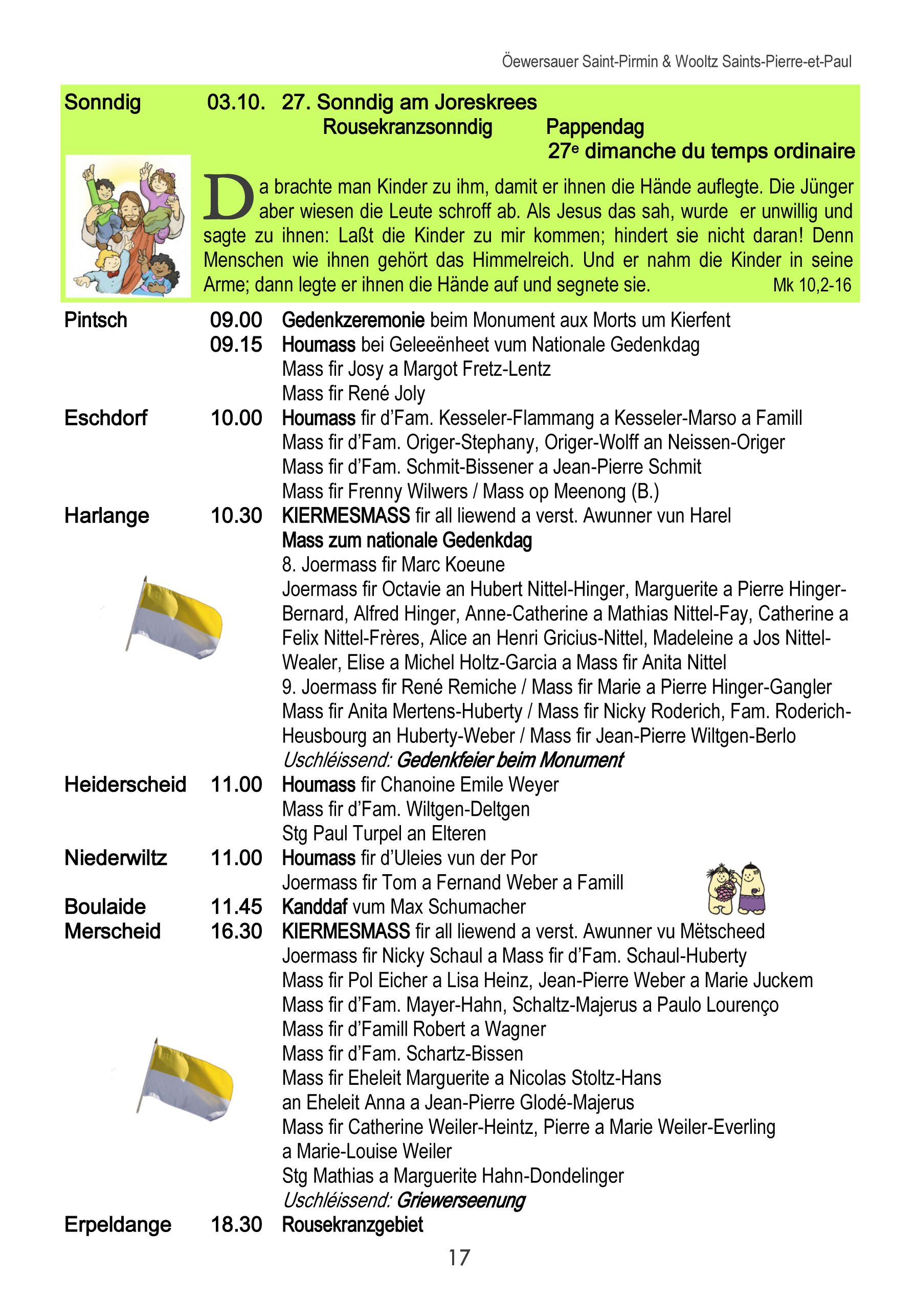 Horraire vun den Massen an Events