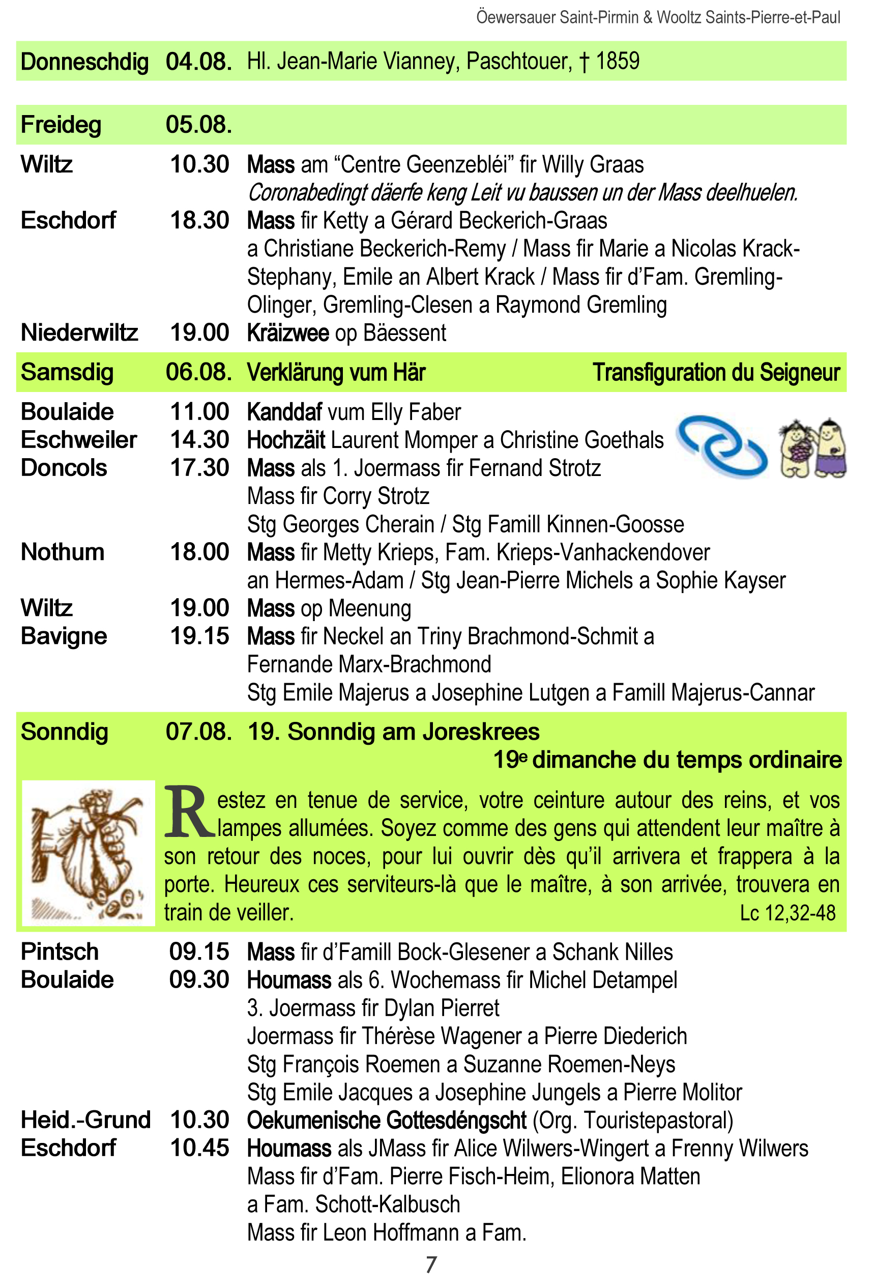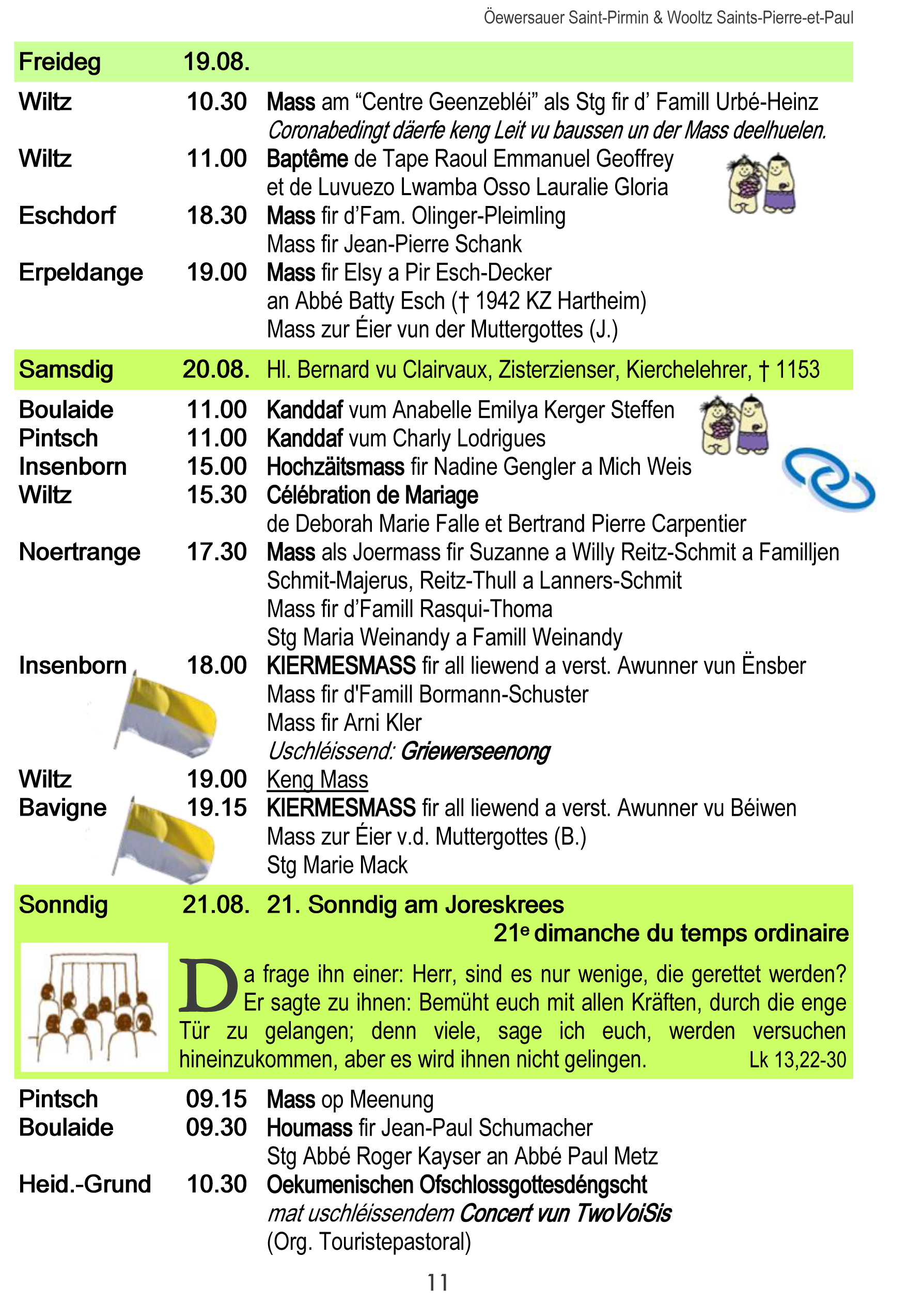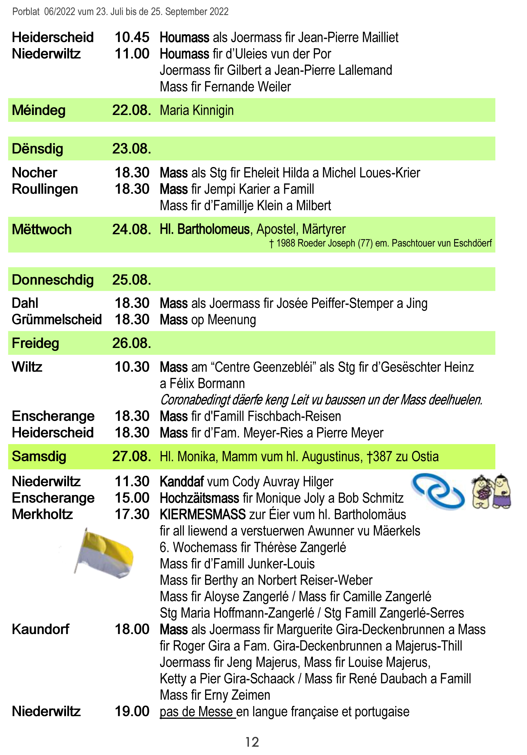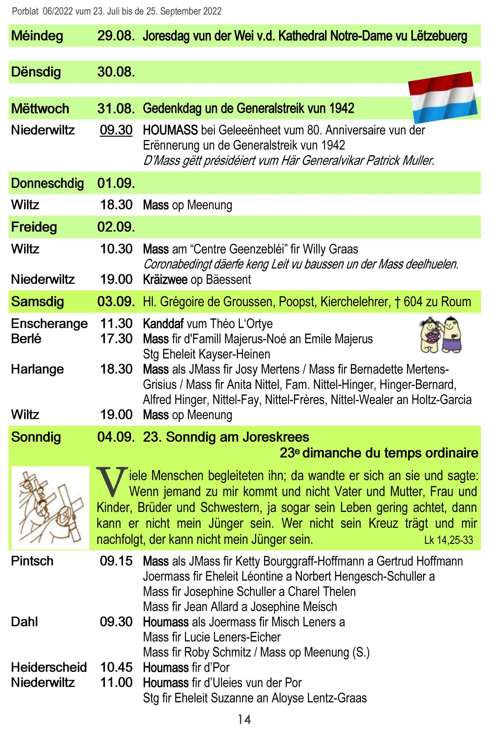 Horraire vun den Massen an Events