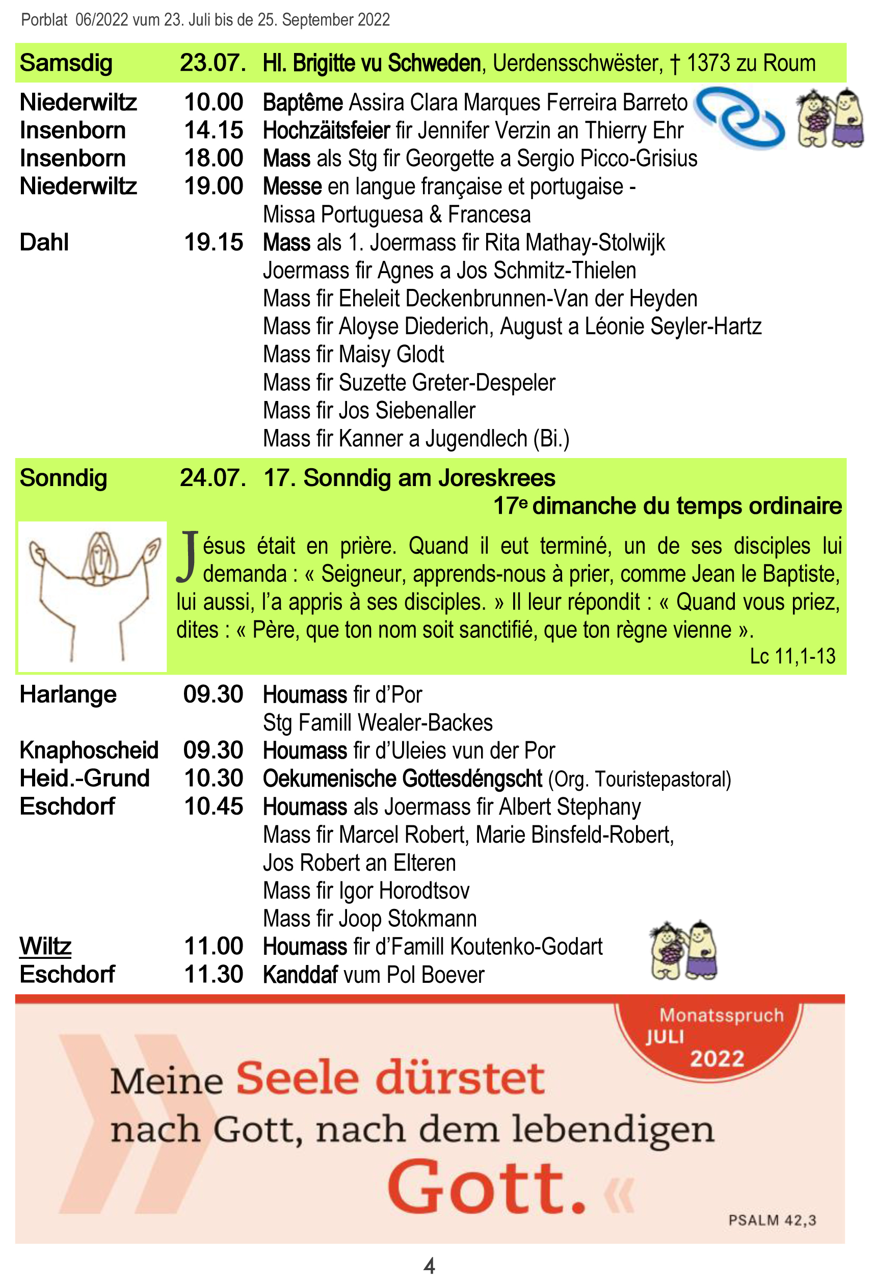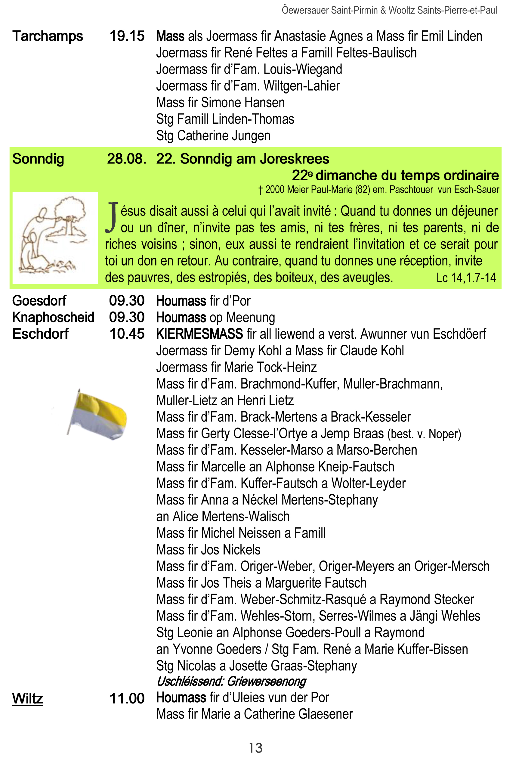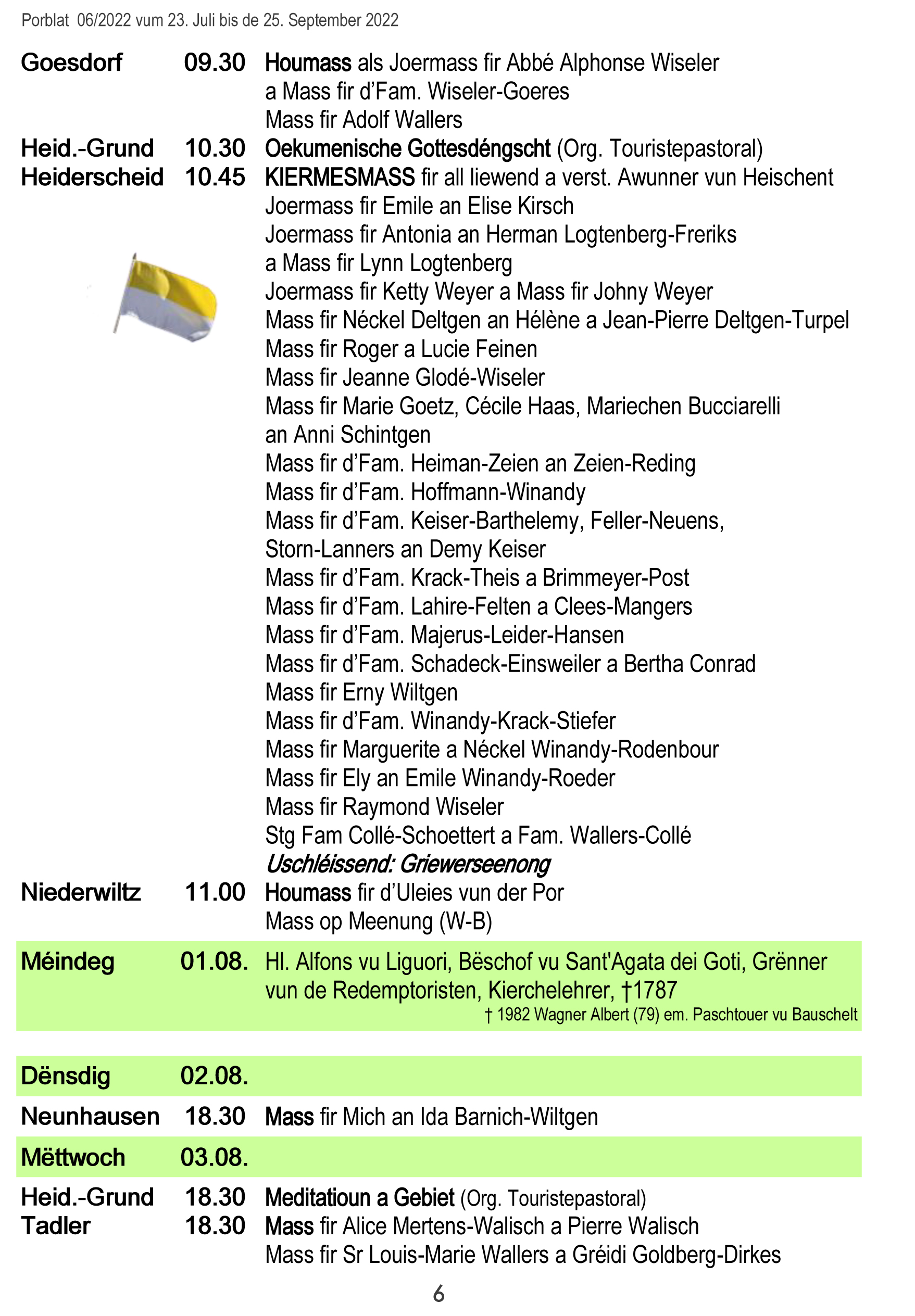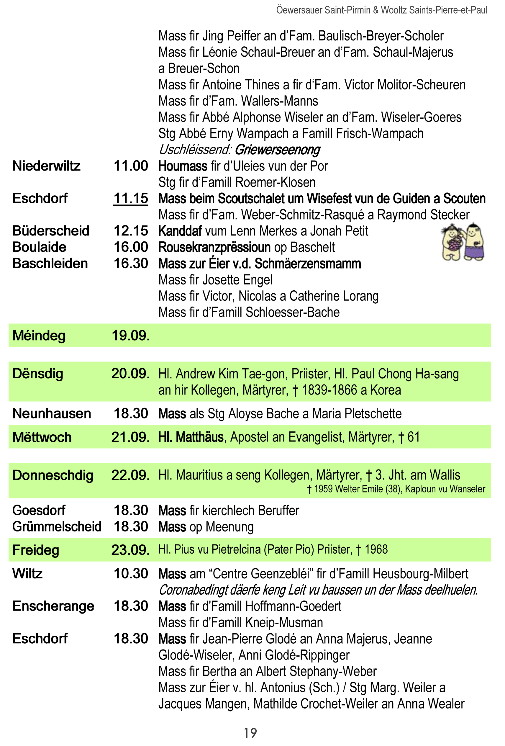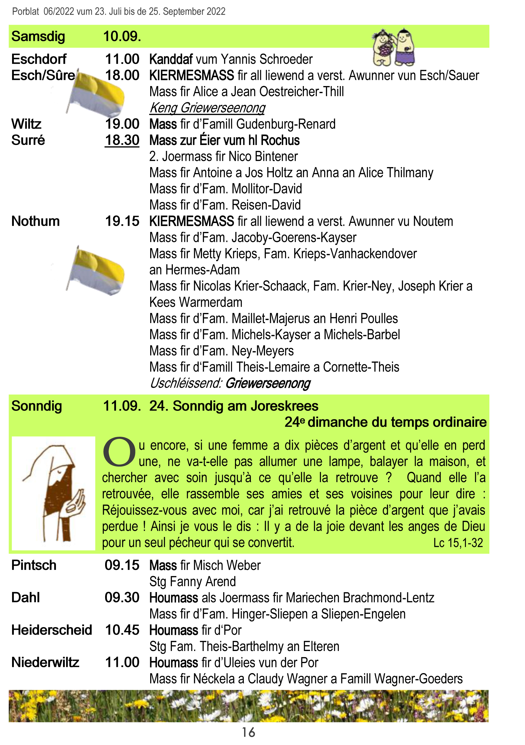 Horraire vun den Massen an Events