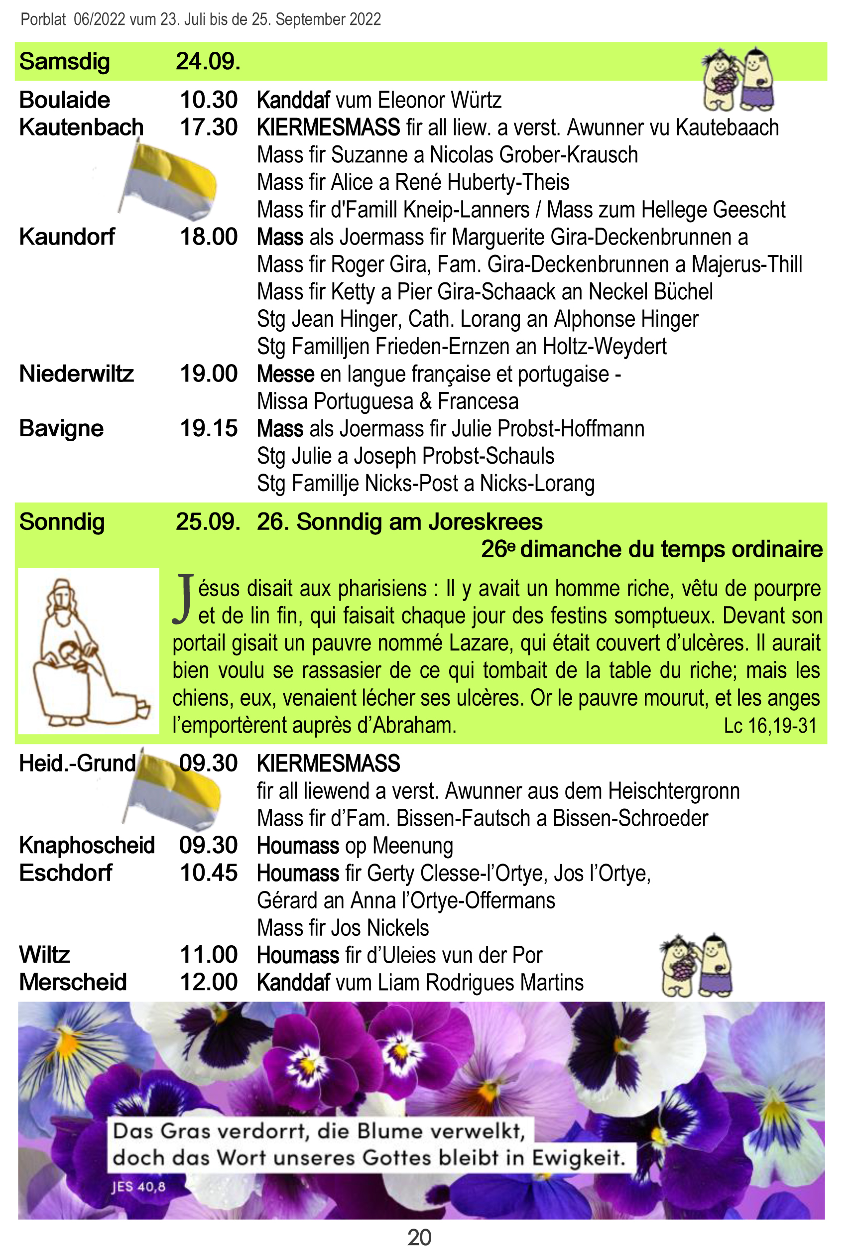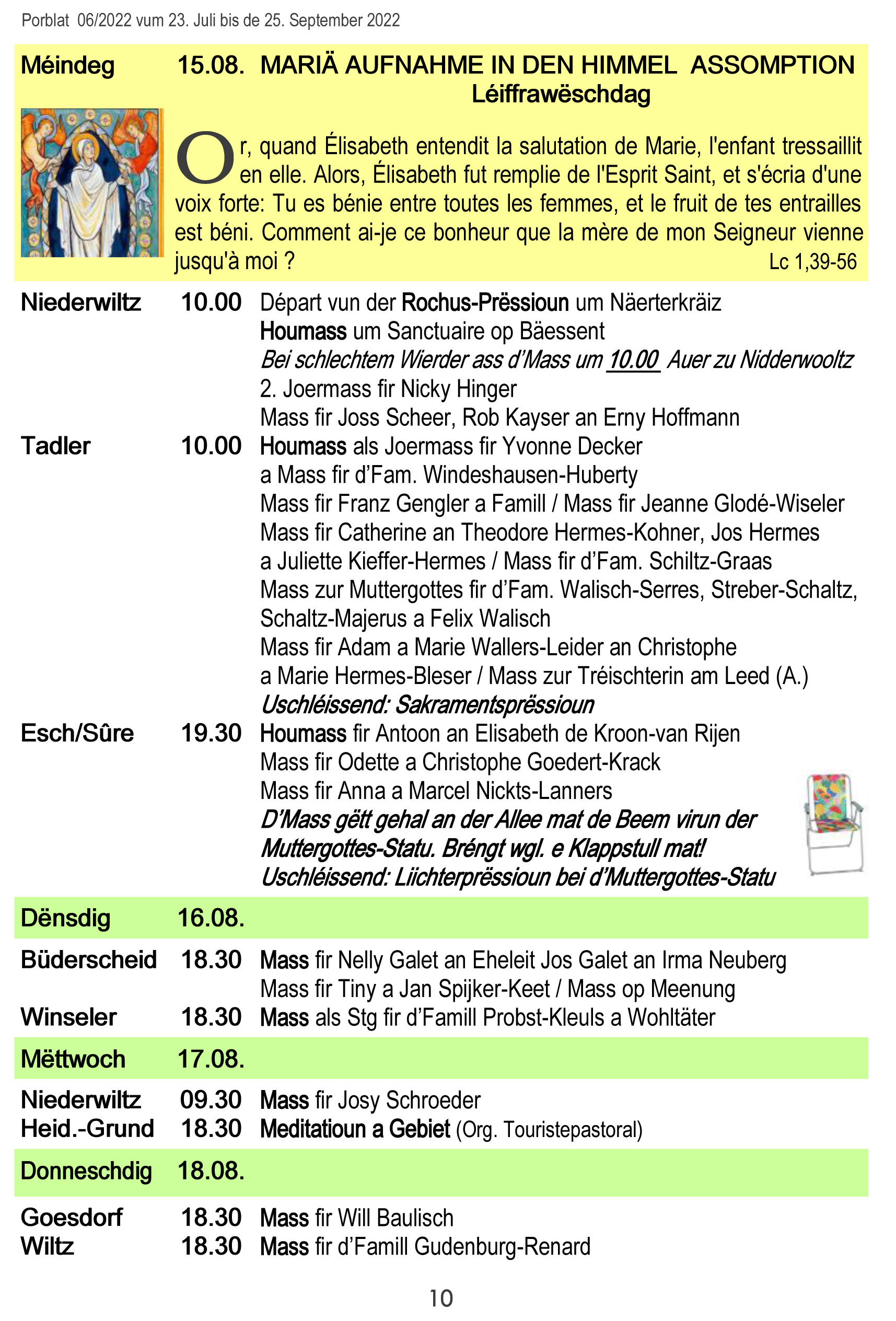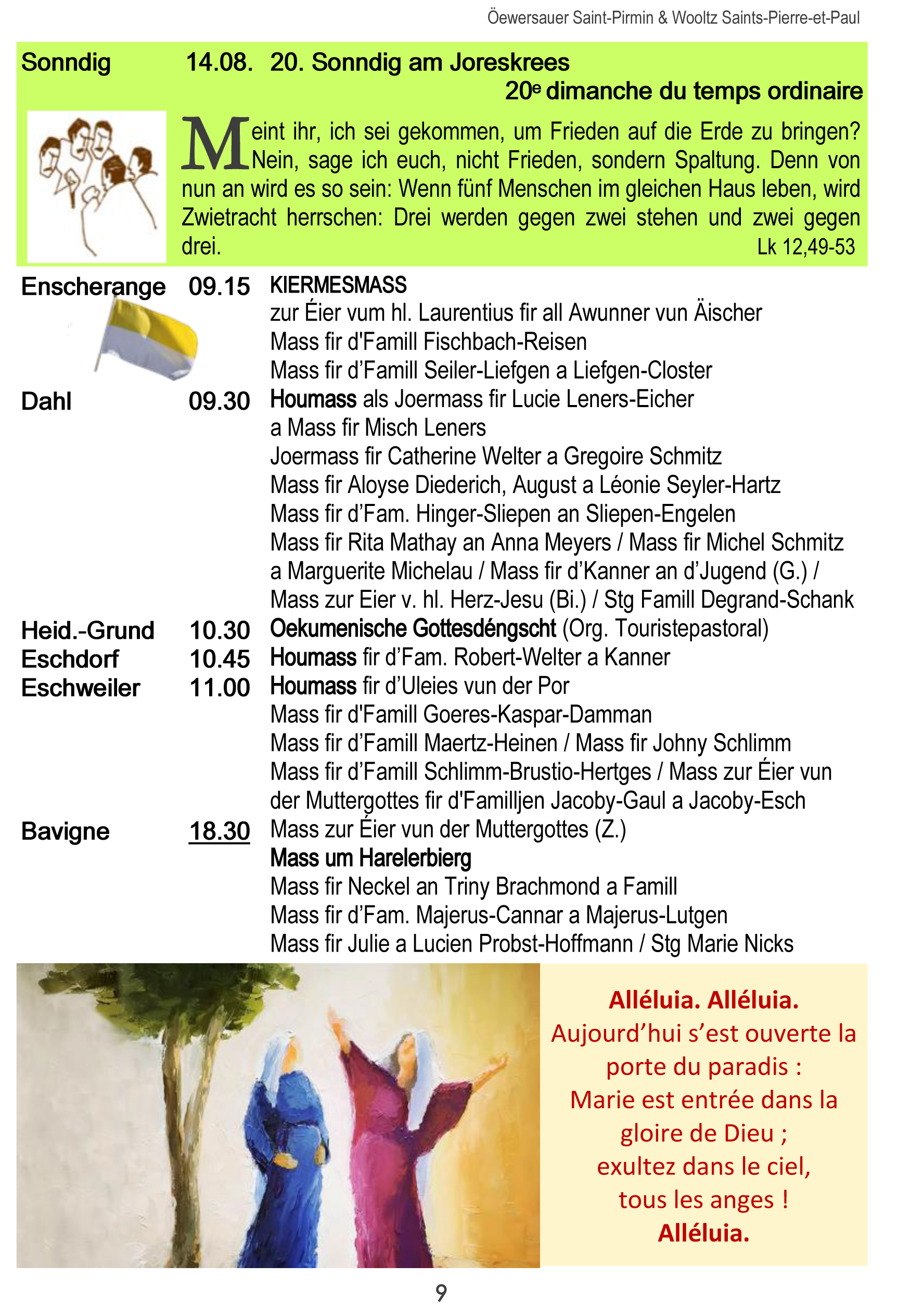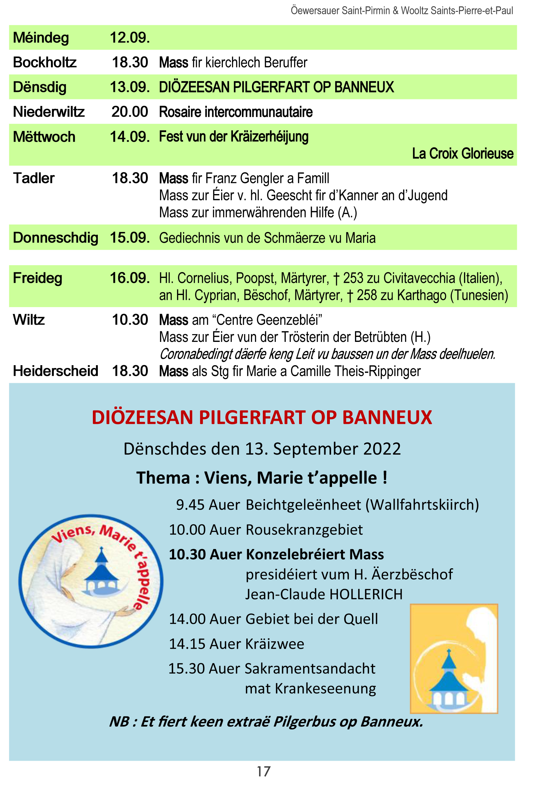 Horraire vun den Massen an Events