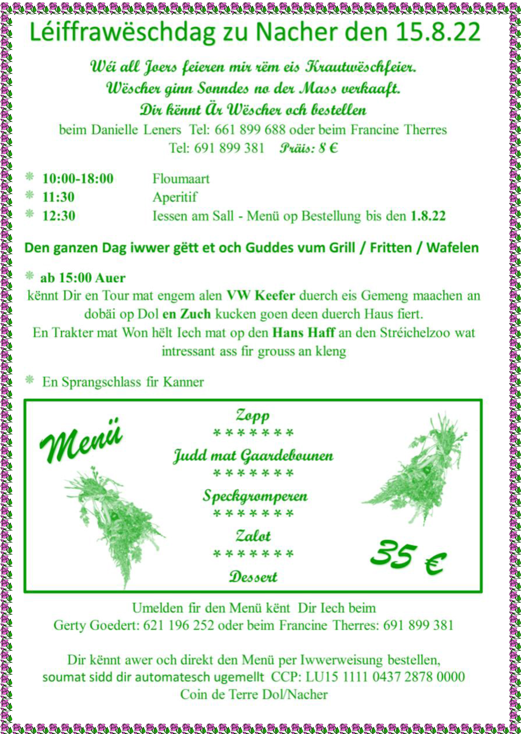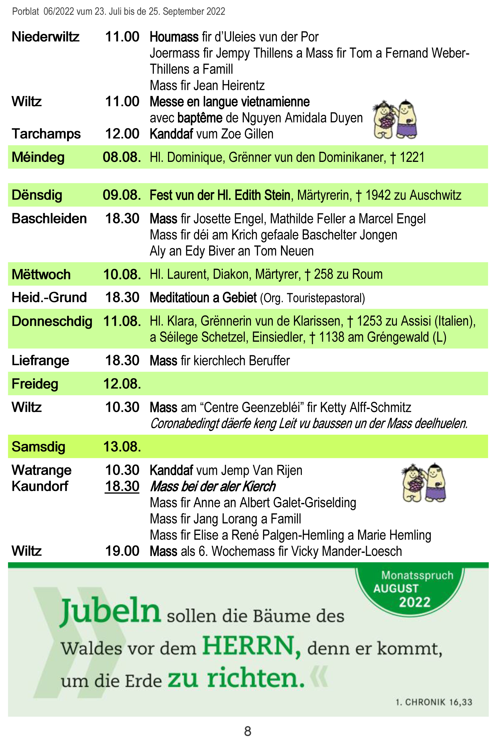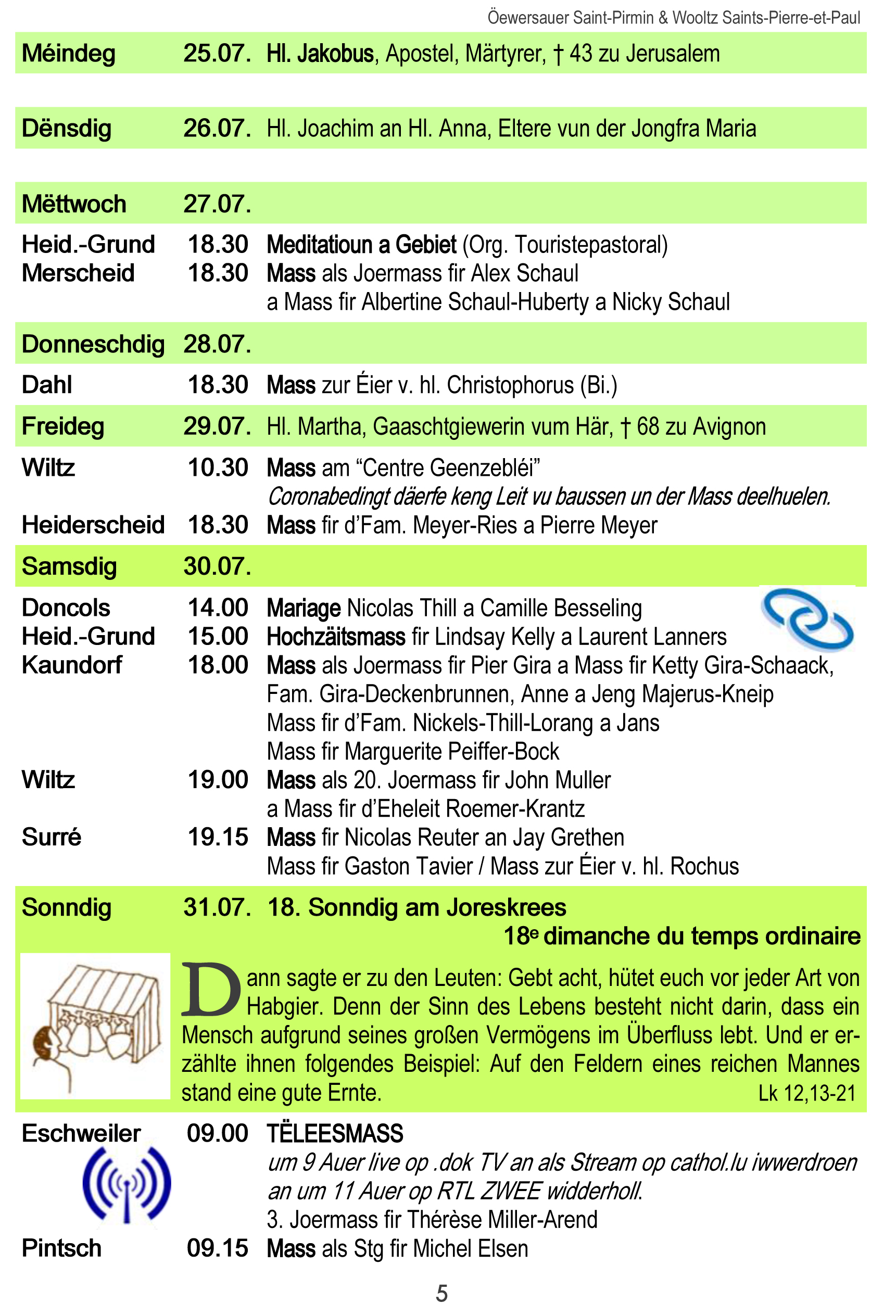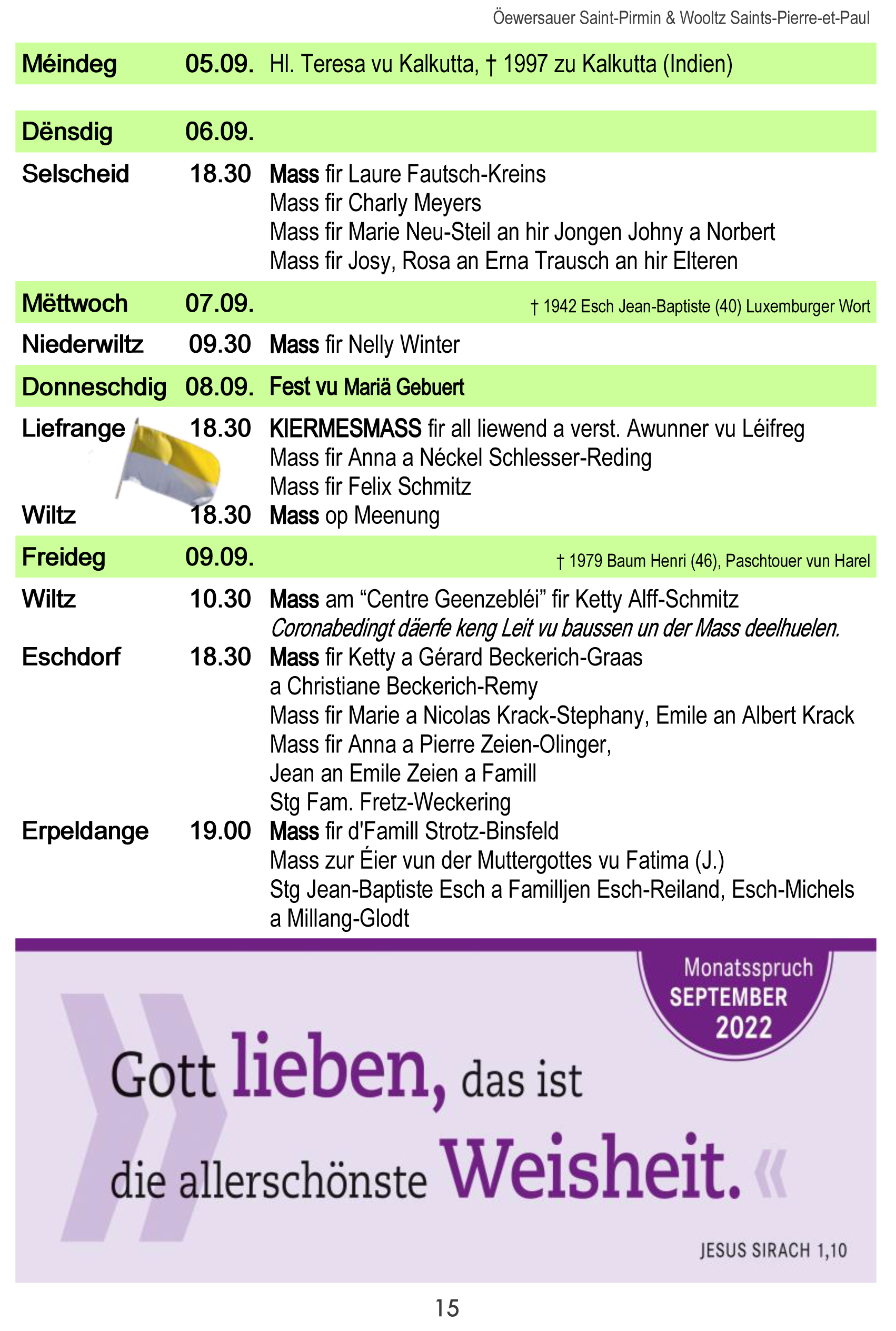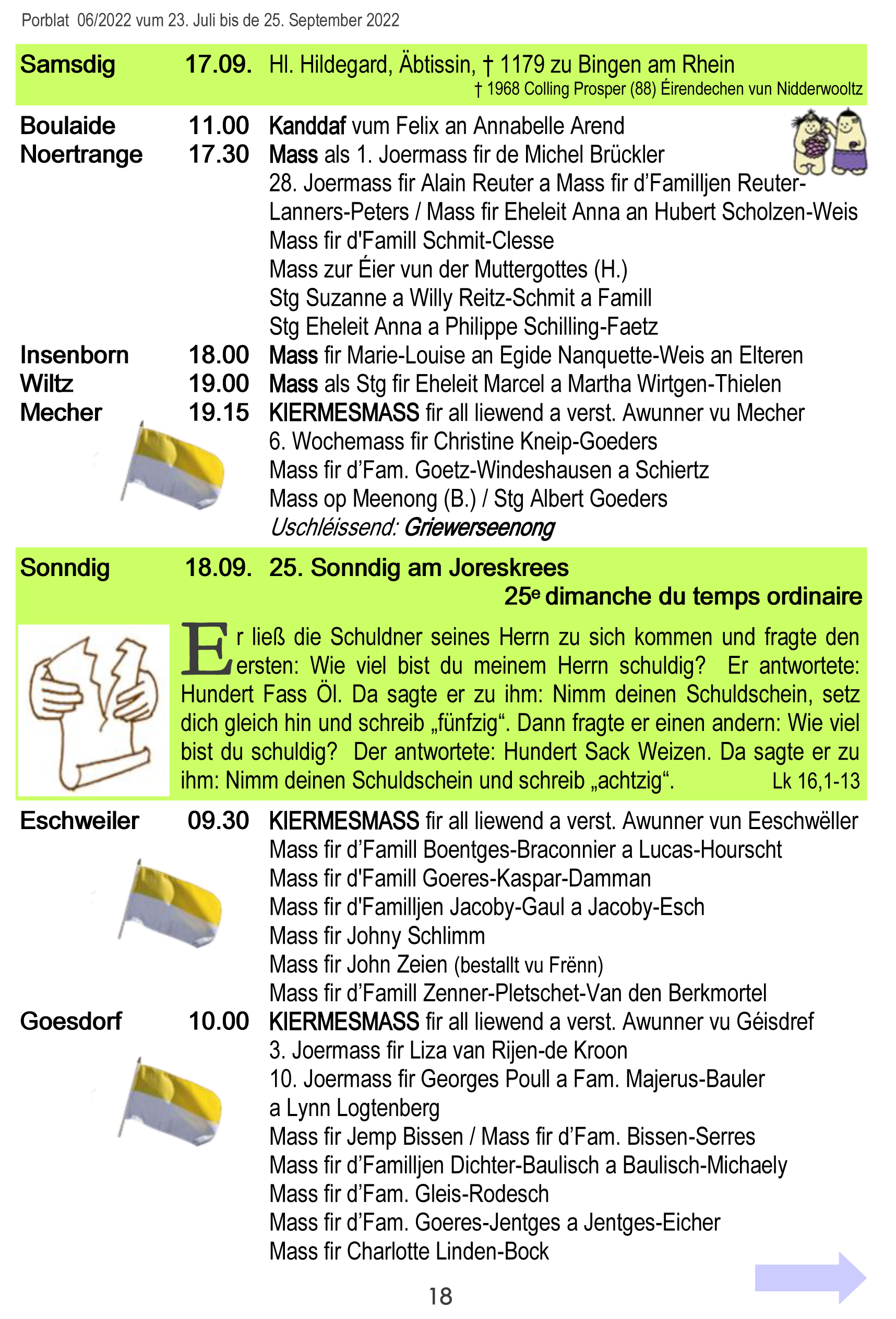 Horraire vun den Massen an Events